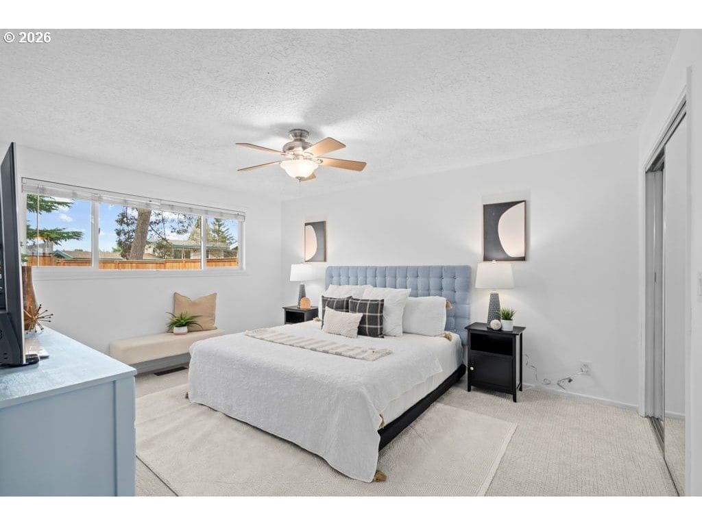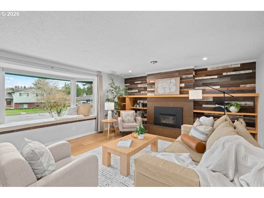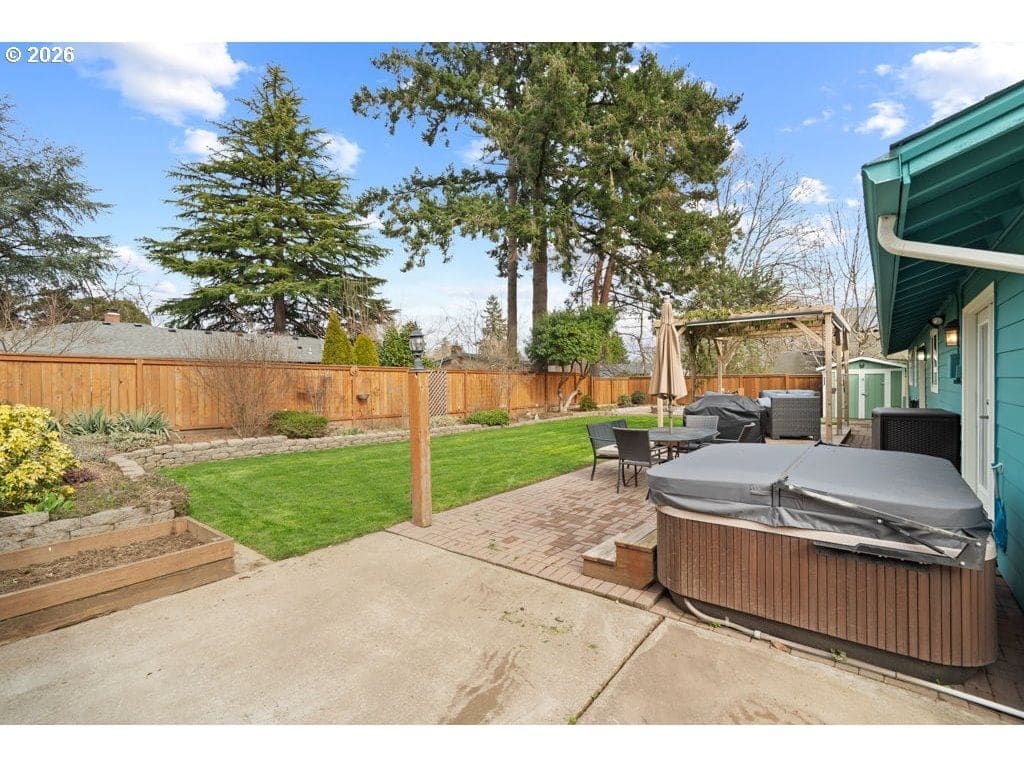 Well cared for, single-level 3 bedroom, 2 full bath home with thoughtful updates throughout. The open kitchen features wood cabinetry, solid granite countertops, an island, and stainless steel appliances, and flows directly into the dining room, which includes French doors opening to the backyard. The primary suite was recently painted, and both bathrooms were fully remodeled in 2023 with updated tile work, vanities, fixtures, and plumbing. Light-toned engineered hardwood flooring was installed in 2023 throughout the main living areas, while all three bedrooms feature brand new carpet. The spacious living room offers a gas fireplace with reclaimed wood surround and built-ins, and a separate family room includes a wood-burning fireplace and French doors to the backyard. The large, fully fenced backyard is well suited for entertaining and everyday use, with a newer fence, deck and pergola covered in clematis, hot tub patio, fire pit area, lawn, shed, and gated RV parking. Exterior was repainted in 2025, and the home includes fully paid-for solar panels for energy efficiency and long-term savings.