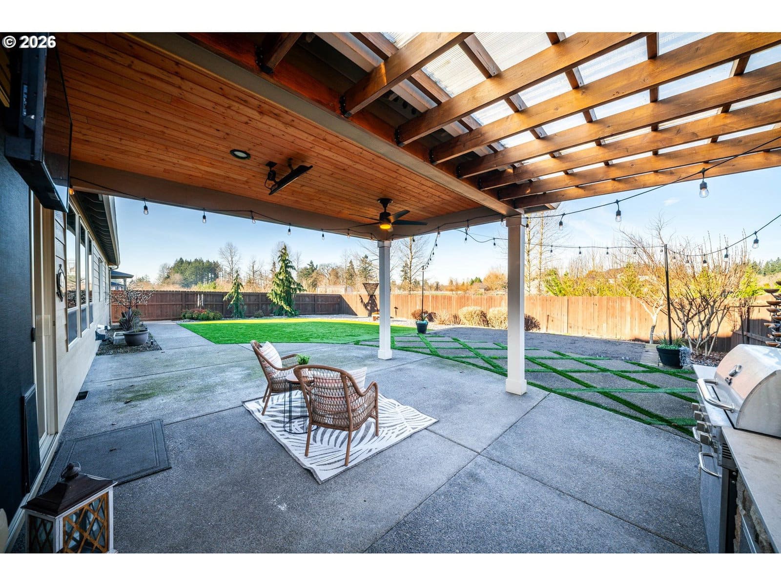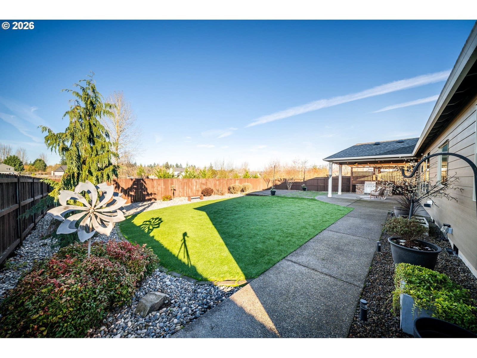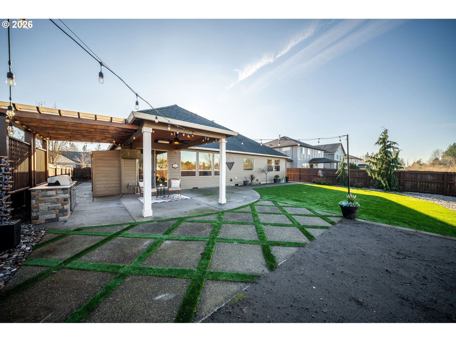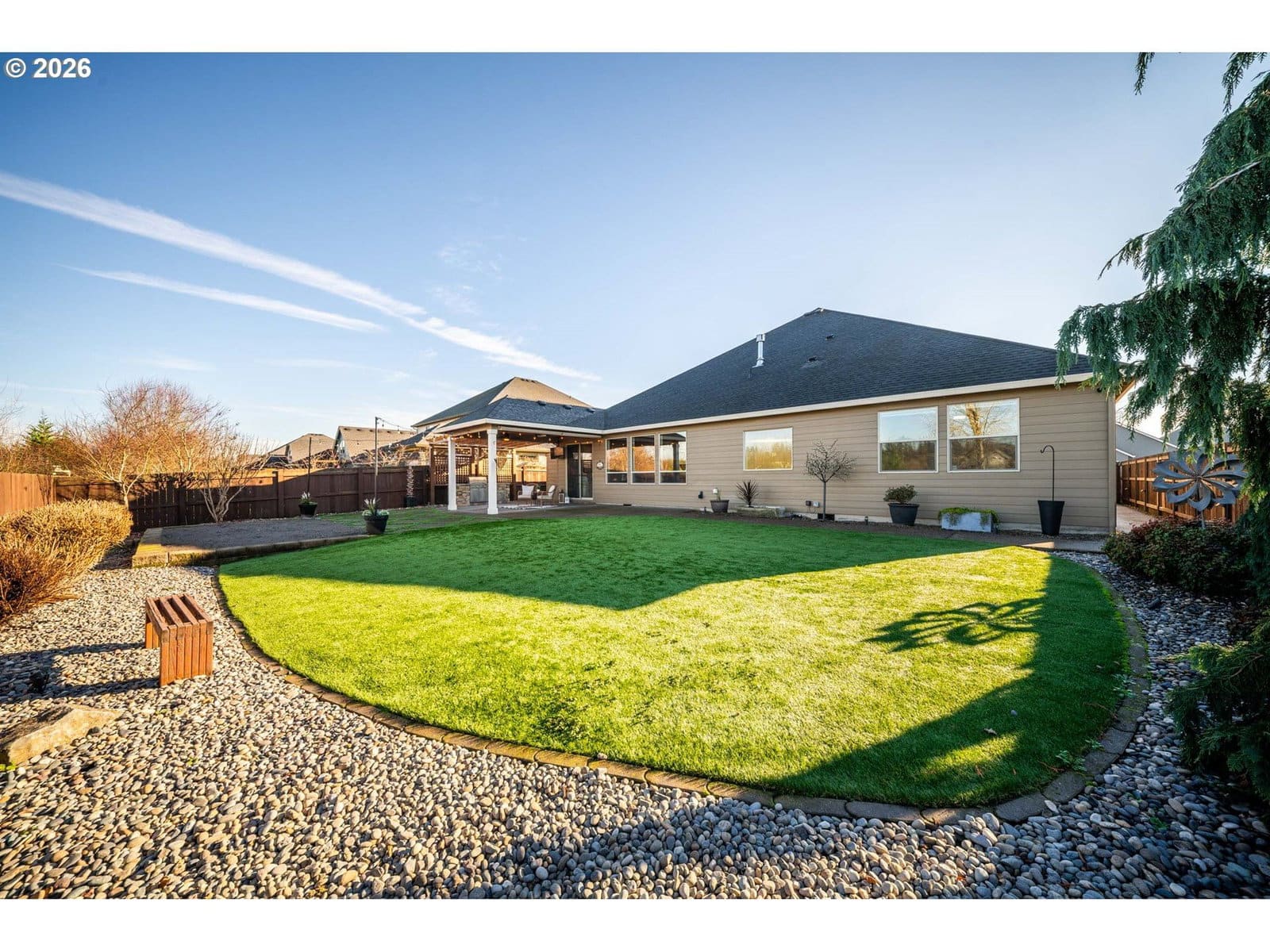 OPEN HOUSE SUN 1/18 12-2 Pride of ownership shines in this stunning 3,226 sq ft home located in the sought-after Fieldstone Estates, set on a private .24-acre lot backing to peaceful greenspace. Featuring 4 bedrooms, 3 full baths, a den, and a huge upstairs bonus room with bedroom ideal for multigenerational living, this home offers exceptional flexibility. The primary suite on the main level is a true retreat with a spa-like bath and walk-in closet. Enjoy a gourmet kitchen with granite, stainless appliances, expansive island, and butler’s pantry, opening to a spacious great room with custom built-ins. Engineered hardwoods, custom lighting, ample storage, and a 3-car garage with built-ins and an electric car charger enhance daily living. The professionally landscaped yard includes low-maintenance turf, a covered patio with heaters, outdoor BBQ area, lighting, shed, and exceptional privacy. This one checks all the boxes!