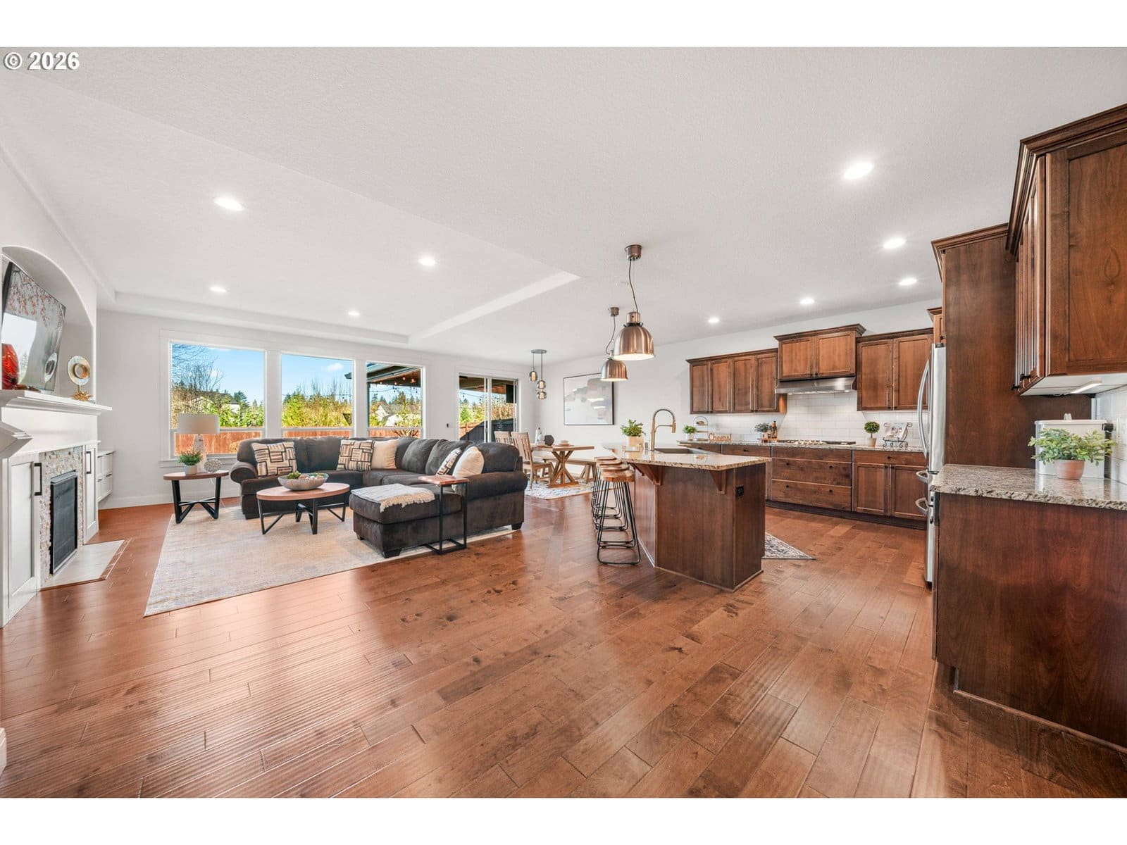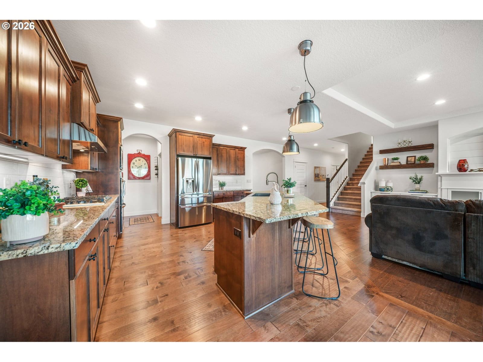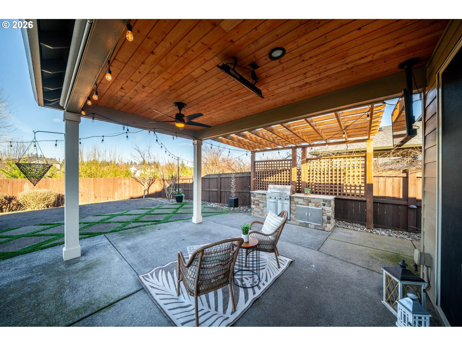 OPEN HOUSE SUN 1/18 12-2 Pride of ownership shines in this stunning 3,226 sq ft home located in the sought-after Fieldstone Estates, set on a private .24-acre lot backing to peaceful greenspace. Featuring 4 bedrooms, 3 full baths, a den, and a huge upstairs bonus room with bedroom ideal for multigenerational living, this home offers exceptional flexibility. The primary suite on the main level is a true retreat with a spa-like bath and walk-in closet. Enjoy a gourmet kitchen with granite, stainless appliances, expansive island, and butler’s pantry, opening to a spacious great room with custom built-ins. Engineered hardwoods, custom lighting, ample storage, and a 3-car garage with built-ins and an electric car charger enhance daily living. The professionally landscaped yard includes low-maintenance turf, a covered patio with heaters, outdoor BBQ area, lighting, shed, and exceptional privacy. This one checks all the boxes!