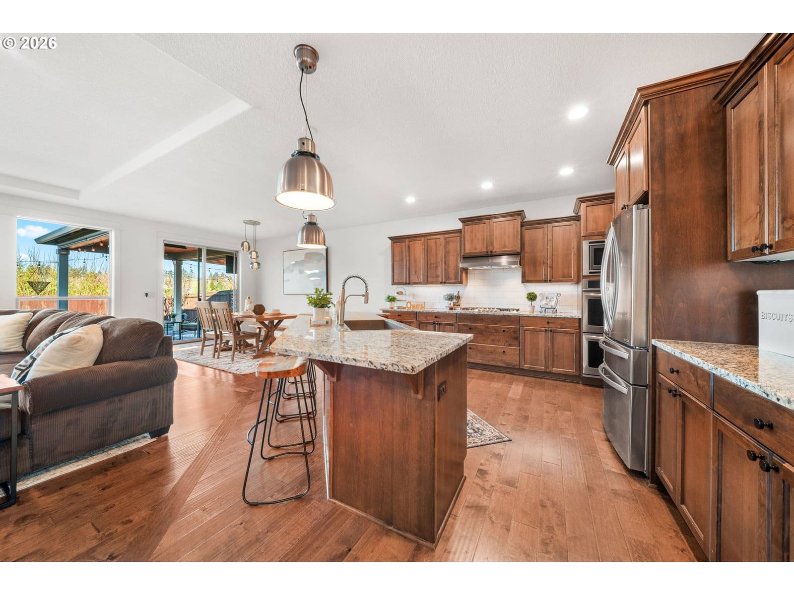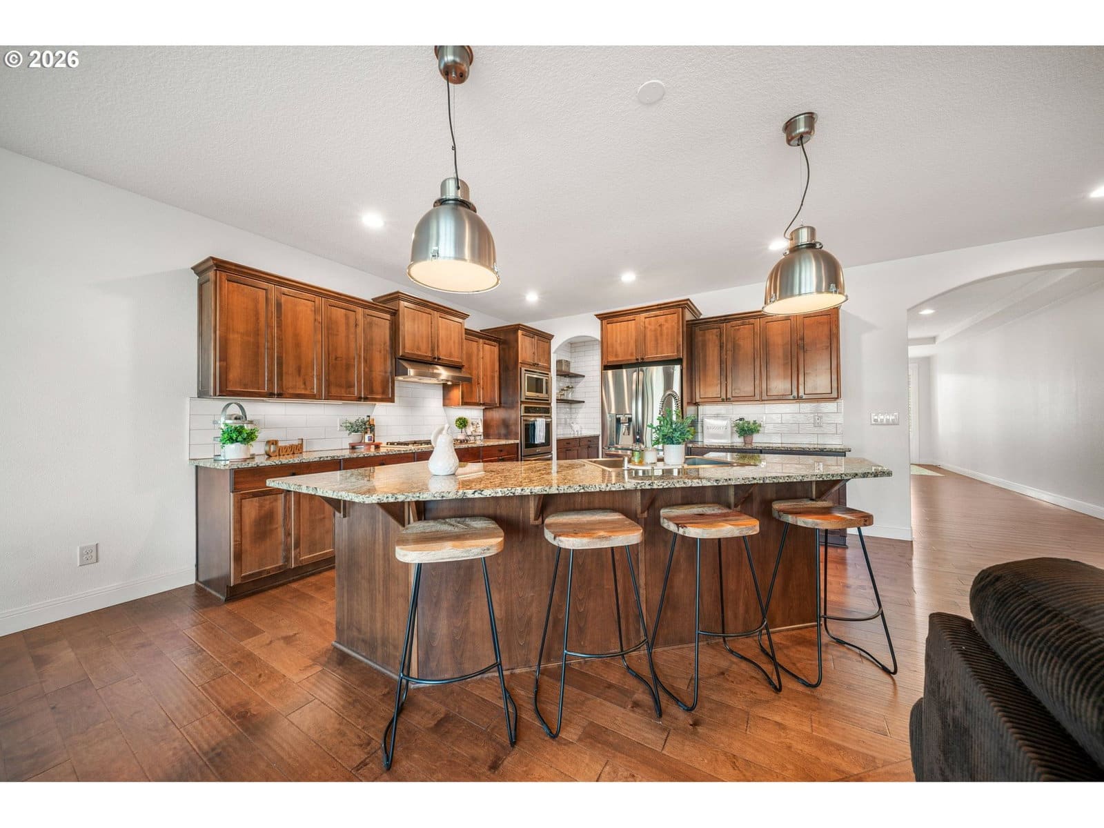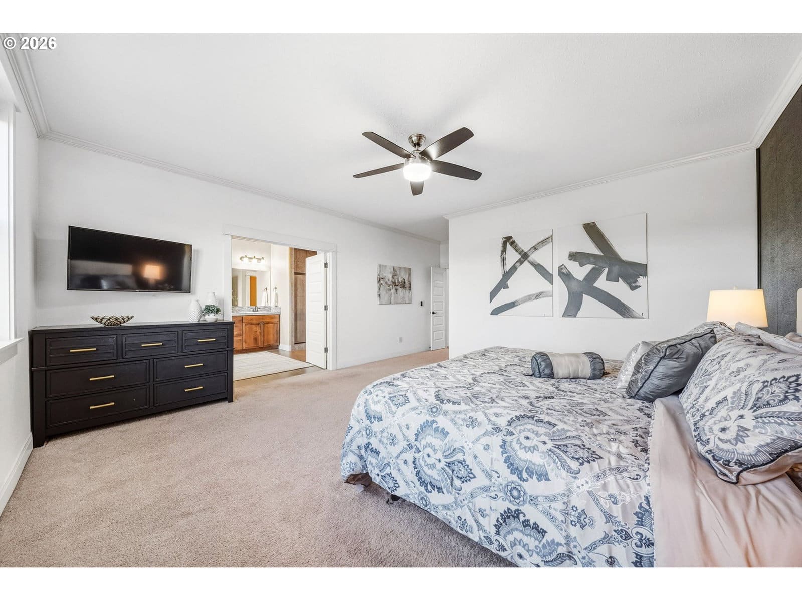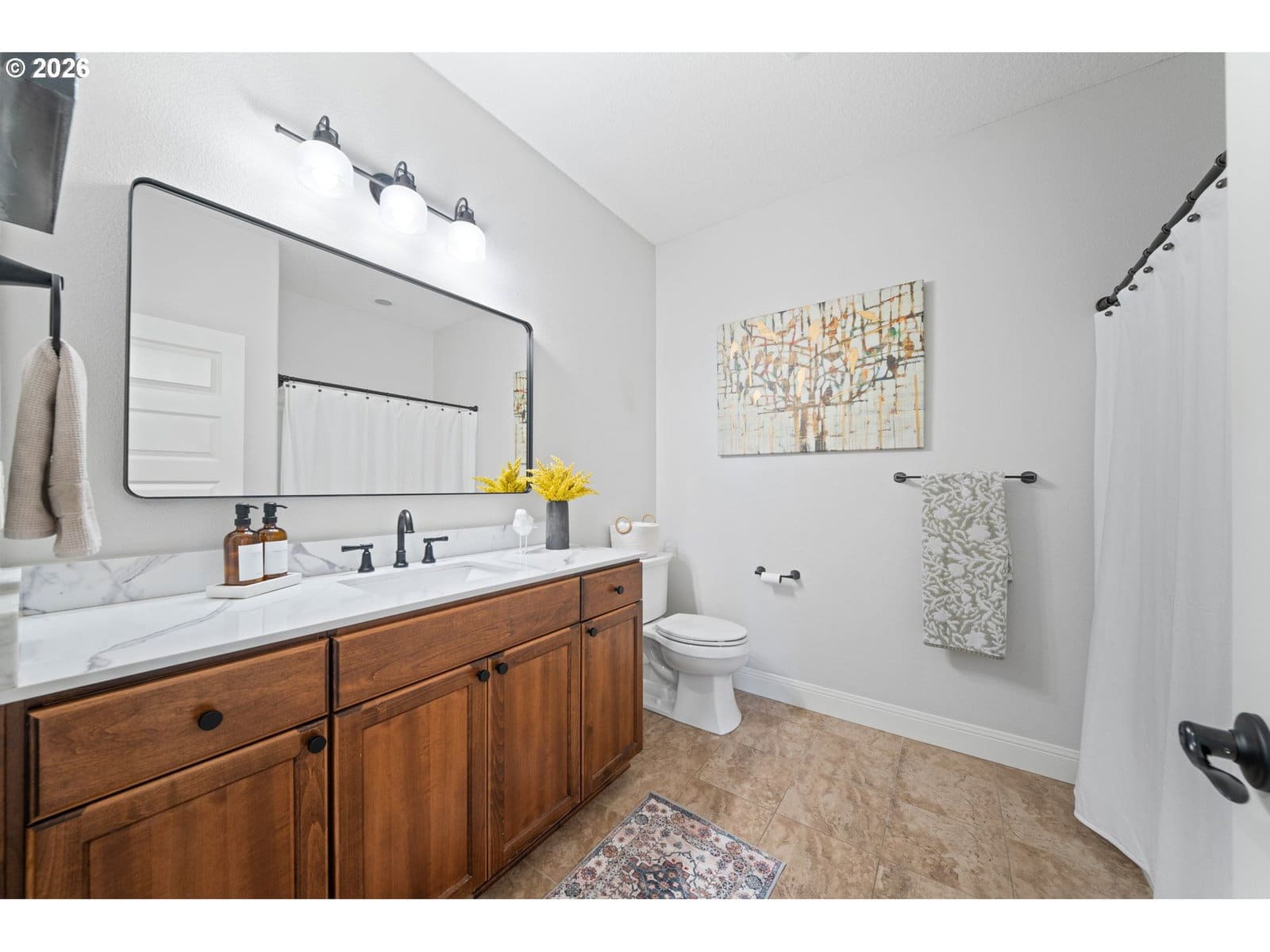 OPEN HOUSE SUN 1/18 12-2 Pride of ownership shines in this stunning 3,226 sq ft home located in the sought-after Fieldstone Estates, set on a private .24-acre lot backing to peaceful greenspace. Featuring 4 bedrooms, 3 full baths, a den, and a huge upstairs bonus room with bedroom ideal for multigenerational living, this home offers exceptional flexibility. The primary suite on the main level is a true retreat with a spa-like bath and walk-in closet. Enjoy a gourmet kitchen with granite, stainless appliances, expansive island, and butler’s pantry, opening to a spacious great room with custom built-ins. Engineered hardwoods, custom lighting, ample storage, and a 3-car garage with built-ins and an electric car charger enhance daily living. The professionally landscaped yard includes low-maintenance turf, a covered patio with heaters, outdoor BBQ area, lighting, shed, and exceptional privacy. This one checks all the boxes!