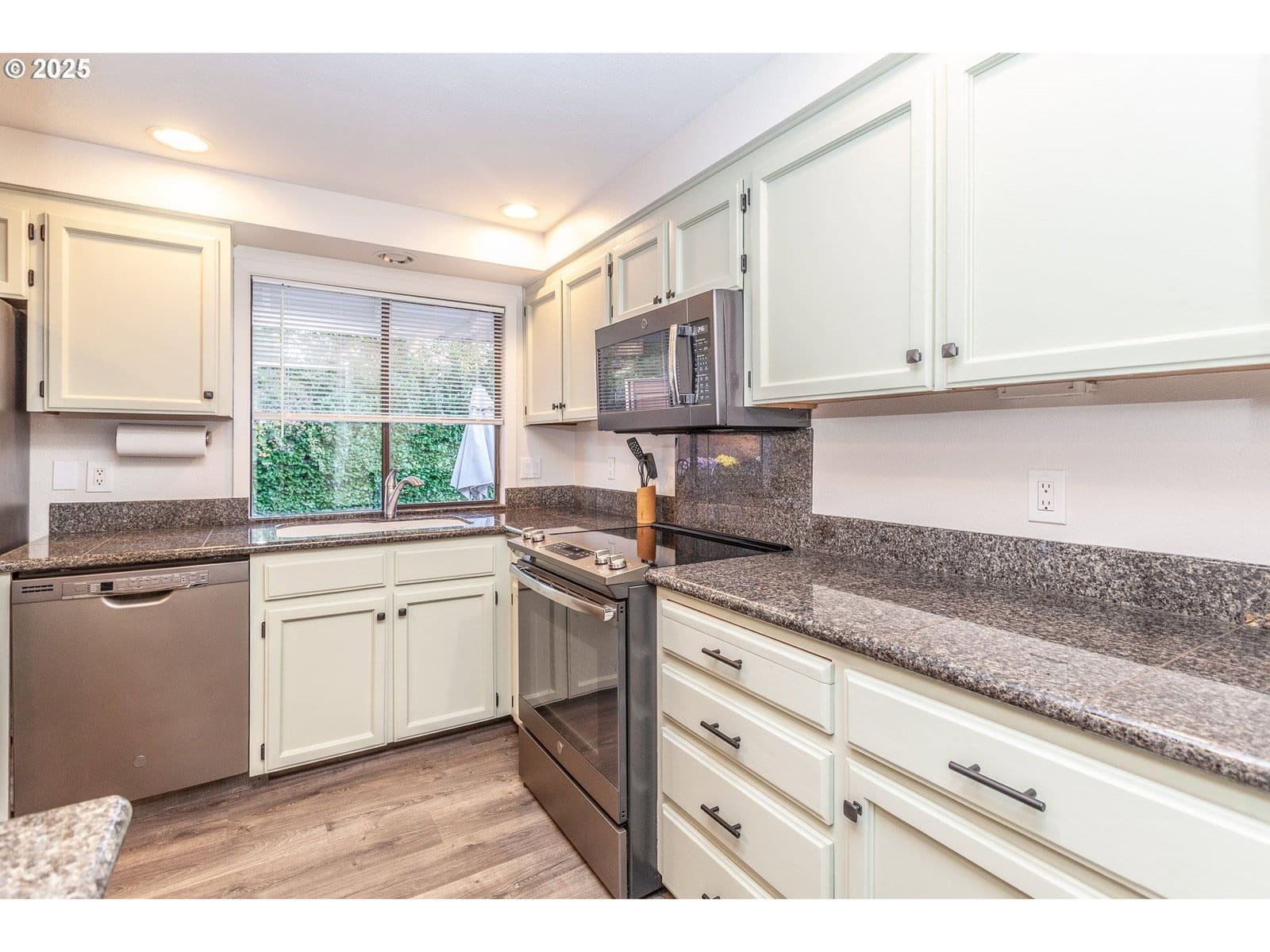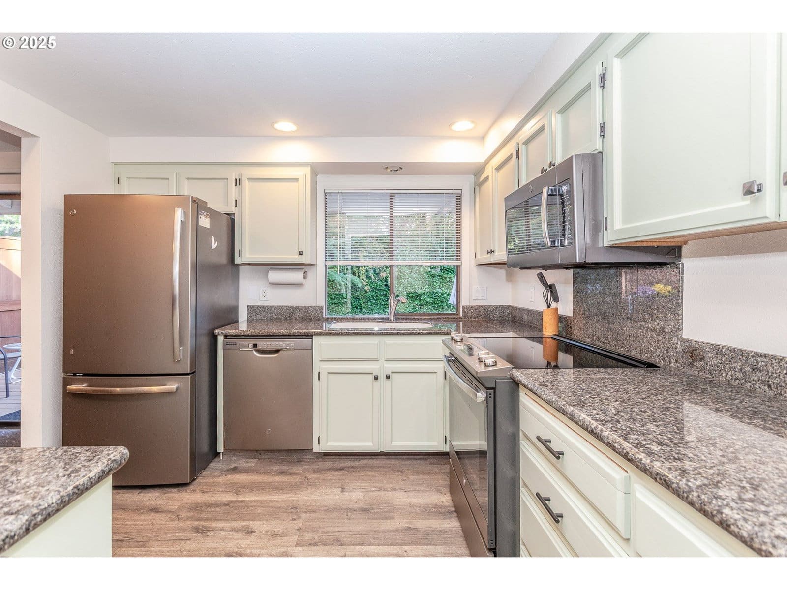 This gorgeous split level home has it all! 3 bedrooms, 3 baths, including a wonderful primary suite, downstairs bonus room and separate office! Stunning kitchen with granite counters, newer appliances and refreshed cabinets. Light and bright living room with gas fireplace, and a separate dining area with slider opening on to the expansive deck, where you can relax and enjoy serene back yard views! Downstairs features a large bonus room with cozy gas stove, and separate office/flex space area perfect for hobby room. The downstairs slider opens to the lower level patio, and leads to the private backyard - a true oasis with mature landscaping, pathways, trees, and a gated area for RV/boat storage. Extras include built in storage in the 2 car garage, separate tool storage area outside, and central A/C! Tons of updates including newer flooring, paint, new front porch, and more! Tucked back on a quiet cul-de-sac, yet close to shopping, parks, schools and restaurants - this is a must see!