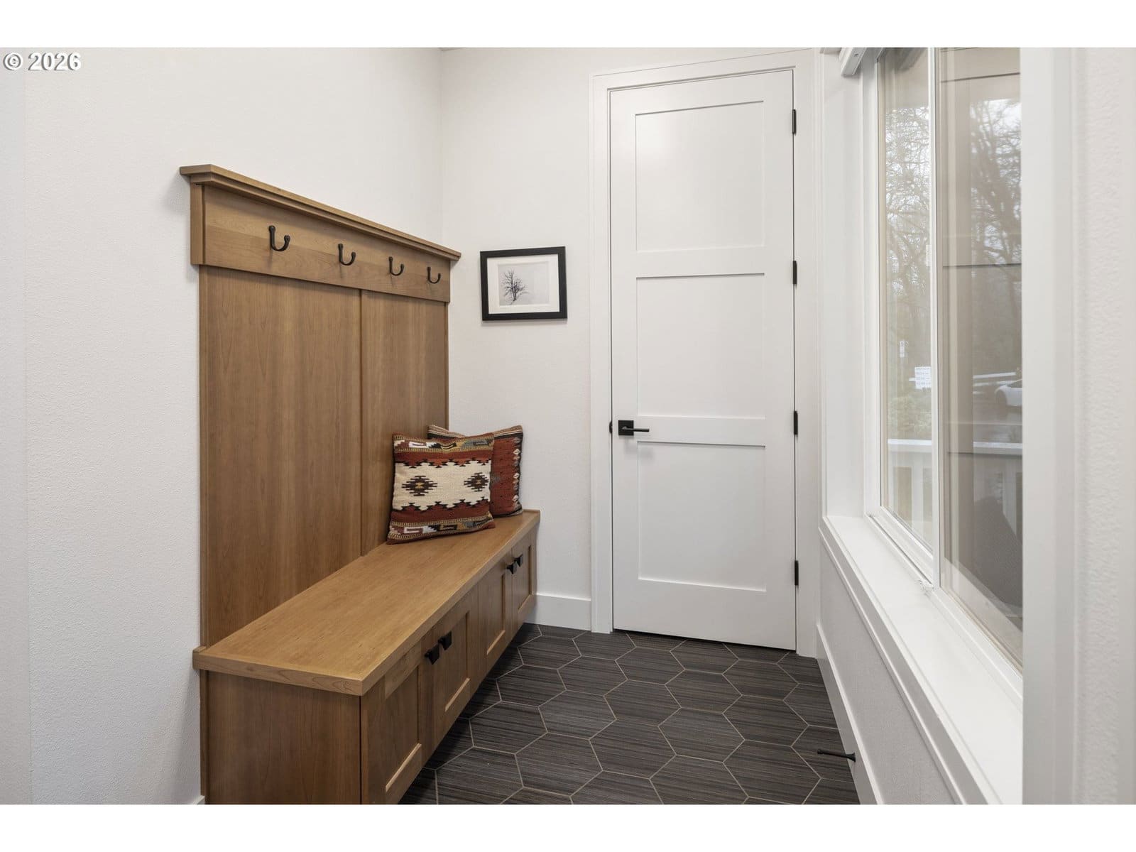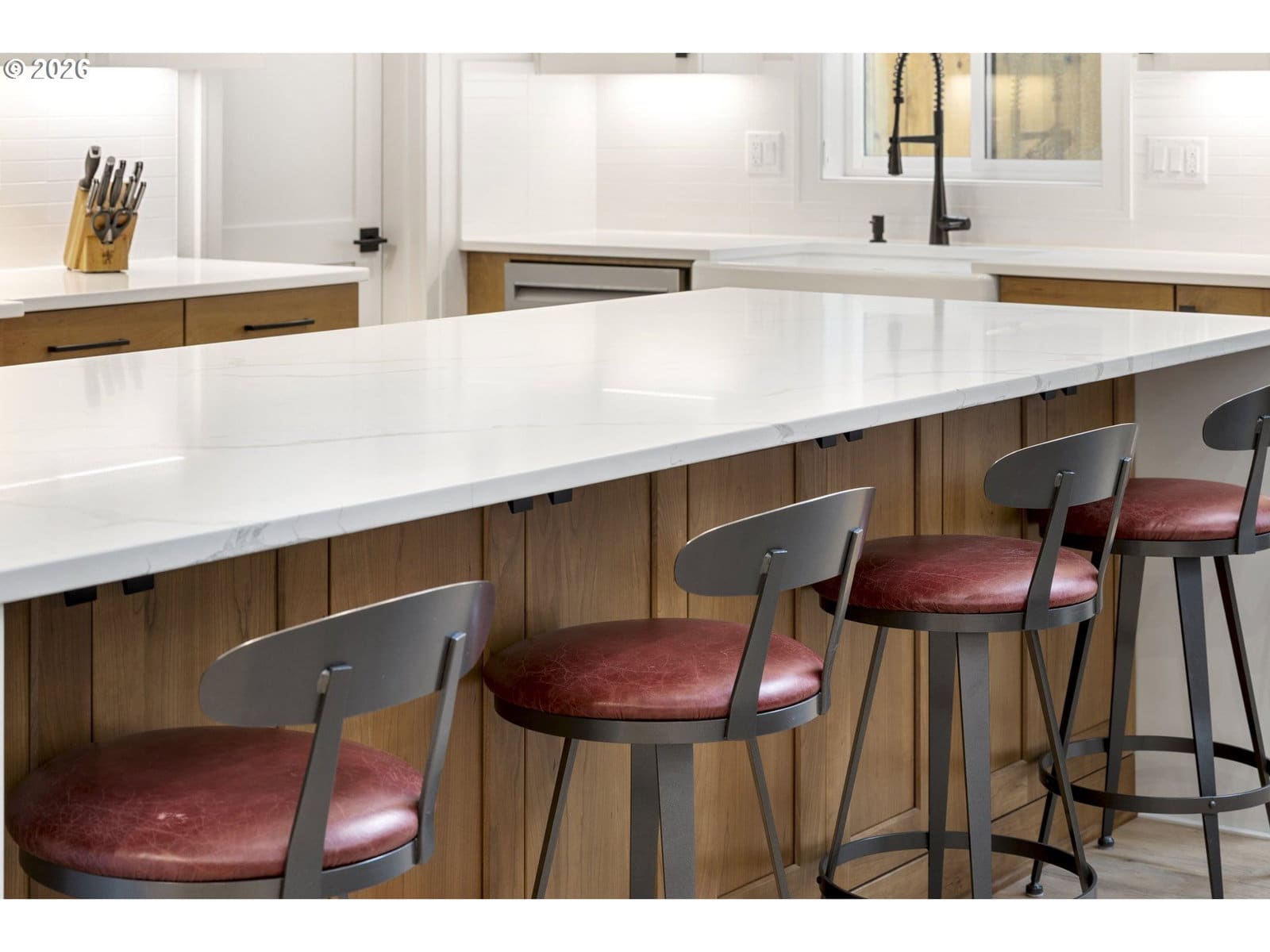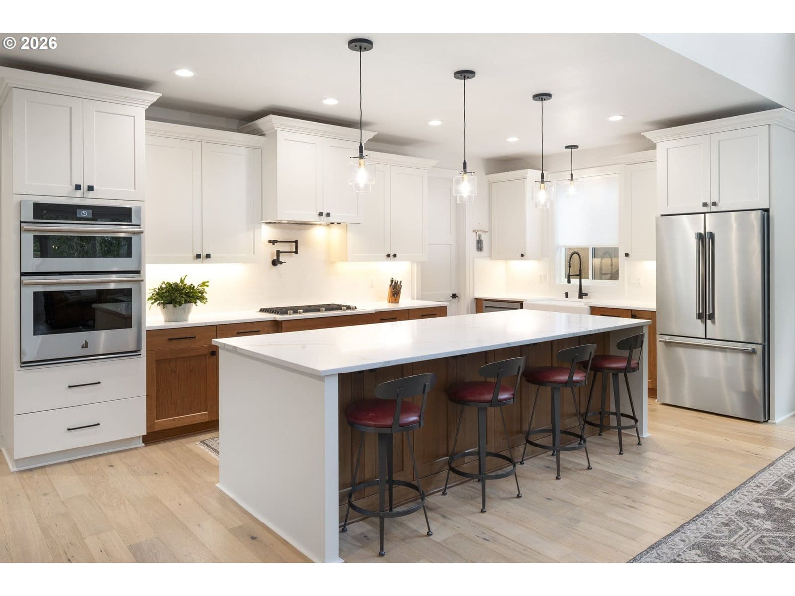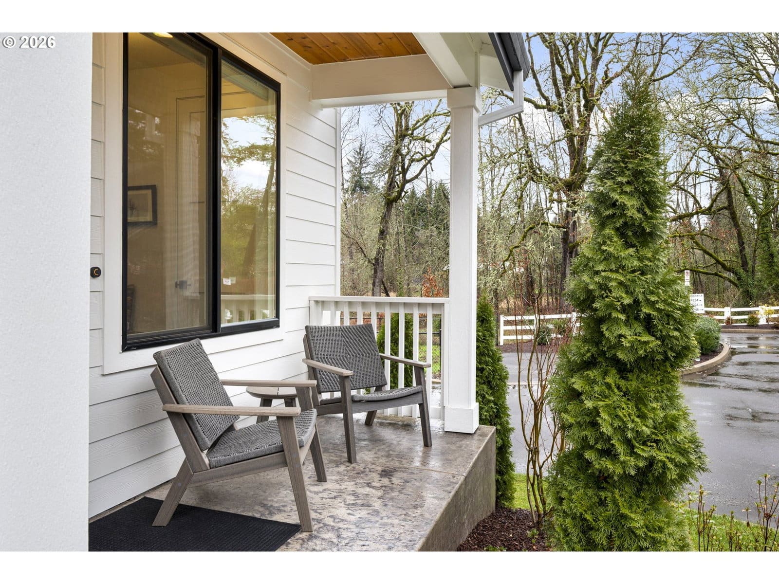 Designed by an award-winning Street of Dreams builder and architect, this special property pairs architectural distinction with a layout that truly works for everyday life. Set against a backdrop of protected green space, this home offers a rare combination of main-level primary living, soaring ceilings, and a private natural setting all just minutes from Washington Square and Portland’s major corridors.From the moment you enter, the quality is apparent. Contrasting tile and engineered hardwood floors lead into a light-filled great room with 18-foot vaulted ceilings and a dramatic floor-to-ceiling fireplace, creating a space that feels open, grounded, and inviting. The great room is designed to comfortably accommodate both dining and seating, making it equally suited for everyday living and entertaining.The kitchen is a true centerpiece. It features a stainless JennAir appliance package, a Thermador Rise 36-inch French-door refrigerator, wine fridge, and a large quartz island with cabinets on both sides a rare and valuable detail that dramatically increases storage and usability. A pot filler at the cooktop, generous pantry, and abundant cabinetry make this kitchen as functional as it is refined.The primary suite on the main level, is positioned to capture views of the protected green space, with direct access to the covered patio. The ensuite bath overlooks the trees and includes a no-curb walk-in shower, soaking tub, Italian tile, quartz counters, and a large walk-in closet. The closet is even plumbed for a secondary washer/dryer, offering flexibility for future needs and long-term livability.The main floor den/office with closet, is ideal for work-from-home or guests, along with a mudroom off the garage with built-in cabinetry, keeping everyday life organized and efficient.Upstairs, the home continues to impress with three additional bedrooms, and large bonus room. Don't miss the opportunity to make this special home your own.