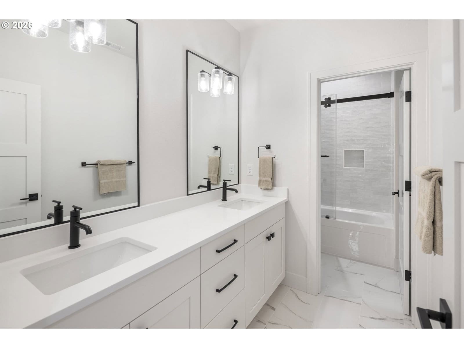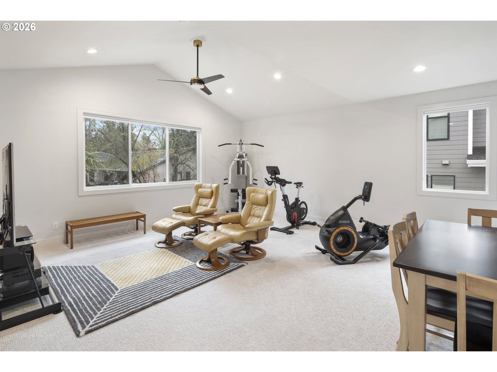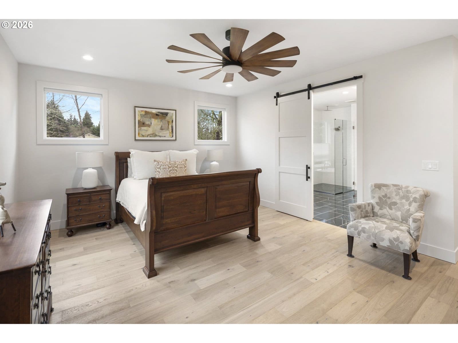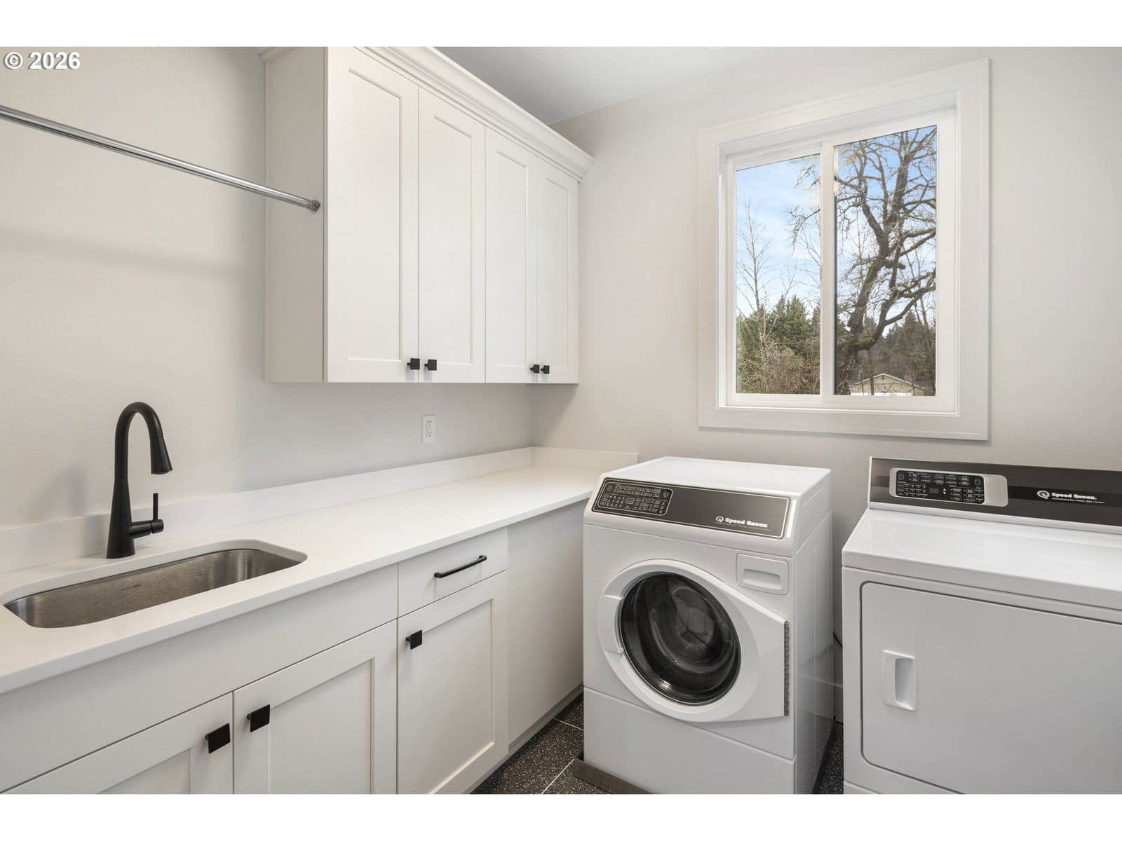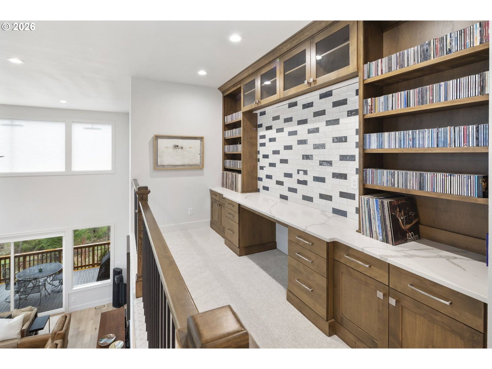 Designed by an award-winning Street of Dreams builder and architect, this special property pairs architectural distinction with a layout that truly works for everyday life. Set against a backdrop of protected green space, this home offers a rare combination of main-level primary living, soaring ceilings, and a private natural setting all just minutes from Washington Square and Portland’s major corridors.From the moment you enter, the quality is apparent. Contrasting tile and engineered hardwood floors lead into a light-filled great room with 18-foot vaulted ceilings and a dramatic floor-to-ceiling fireplace, creating a space that feels open, grounded, and inviting. The great room is designed to comfortably accommodate both dining and seating, making it equally suited for everyday living and entertaining.The kitchen is a true centerpiece. It features a stainless JennAir appliance package, a Thermador Rise 36-inch French-door refrigerator, wine fridge, and a large quartz island with cabinets on both sides a rare and valuable detail that dramatically increases storage and usability. A pot filler at the cooktop, generous pantry, and abundant cabinetry make this kitchen as functional as it is refined.The primary suite on the main level, is positioned to capture views of the protected green space, with direct access to the covered patio. The ensuite bath overlooks the trees and includes a no-curb walk-in shower, soaking tub, Italian tile, quartz counters, and a large walk-in closet. The closet is even plumbed for a secondary washer/dryer, offering flexibility for future needs and long-term livability.The main floor den/office with closet, is ideal for work-from-home or guests, along with a mudroom off the garage with built-in cabinetry, keeping everyday life organized and efficient.Upstairs, the home continues to impress with three additional bedrooms, and large bonus room. Don't miss the opportunity to make this special home your own.
