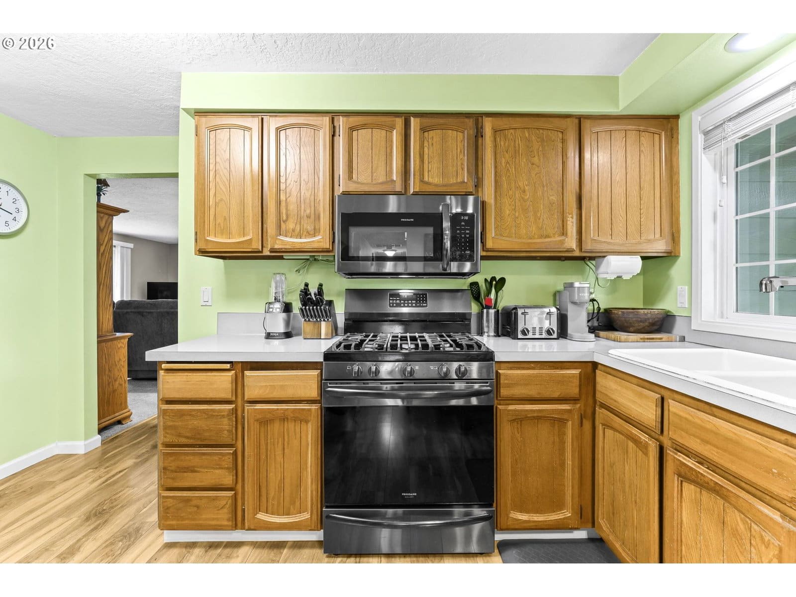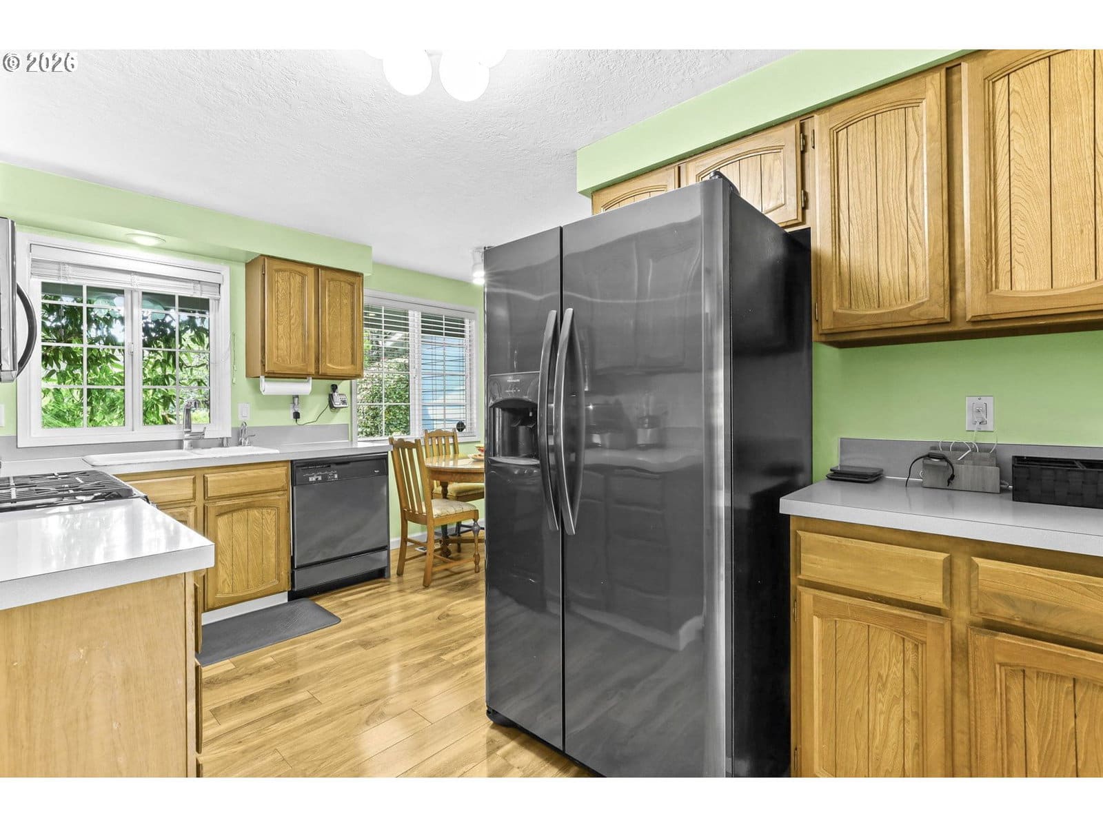Gorgeous large corner lot with mature plantings for privacy galore, and all on one level. The upgrades on this home are so extensive, we had to attach an extra document. Just to name a few is the New Roof in 2022, New HW heater 2020, New Furnace 2017, and New exterior paint within the last 2 years. New carpet throughout in 2018, and ALL newer appliances. In 2014 was new laminate floors, new front door, and Milgard Vinyl windows. This beauty has two woodburning fireplaces, and one of those with a heatilator (fan). Three Large bedrooms, and the Primary Bedroom has His/Her closets, and all bedrooms have mirrored closet doors Garage is oversized with lots of storage, and has had electrical updates so you can work on your hobby. Brocaded ceilings makes this home feel very special. Great schools, and such a great community.