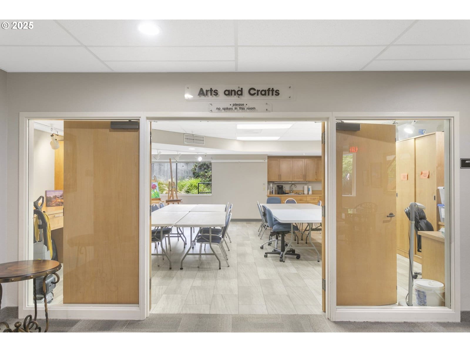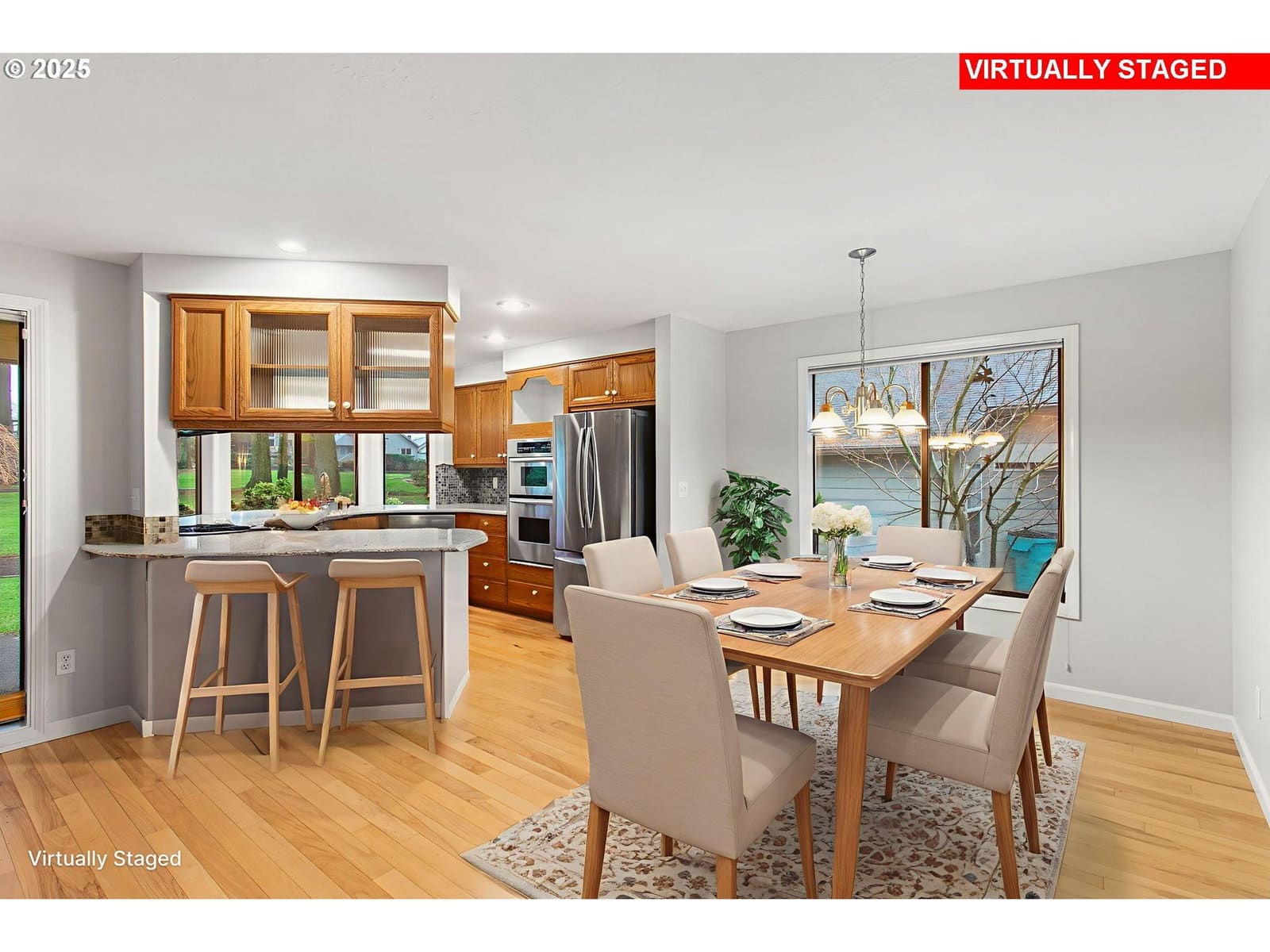 The Englewood residence is a distinguished one-level home situated within a 55+ planned community that offers a comprehensive array of amenities. The property features a notably long driveway and a spacious backyard that overlooks the manicured fairway, providing unobstructed views without concerns of golf balls or netting. Located between the 6th and 7th fairways, with the golf path on the opposite side, the home offers a prime location for golf enthusiasts. Interior features include crown molding and tall ceilings in the entryway, complemented by glass doors that lead into a relaxing den. The living room is spacious and vaulted, accentuated by a warm gas fireplace and numerous windows that allow for ample natural light. The open-concept design extends to a large dining area, creating an inviting space for gatherings. The kitchen, nook, and family room are designed to overlook the fairway, with tall floor-to-ceiling windows adjacent to the patio door that enhance the indoor-outdoor connection. The covered patio and walkway provide easy access to the fairway and around the home, ideal for outdoor entertaining. The backyard is notably large, a rare feature on the course. The primary bathroom is spacious and well-appointed, featuring a step-in shower, soaking tub, dual sinks, and a separate water closet. The home boasts beautiful hardwood floors, white woodwork, and a kitchen equipped with solid countertops, stainless steel appliances, a gas cooktop, a wall oven, a microwave, and a full-height tile backsplash. A bay window overlooking the fairway adds to the aesthetic.The community caters to residents aged 55 and older and includes a variety of amenities such as a clubhouse, scheduled activities, exercise facilities, sauna, swimming pool, billiards, ping-pong, arts and crafts studio, ballroom, library, and meeting or event rooms. This combination of luxurious home features and comprehensive community amenities makes this Englewood an exceptional choice in the Village!