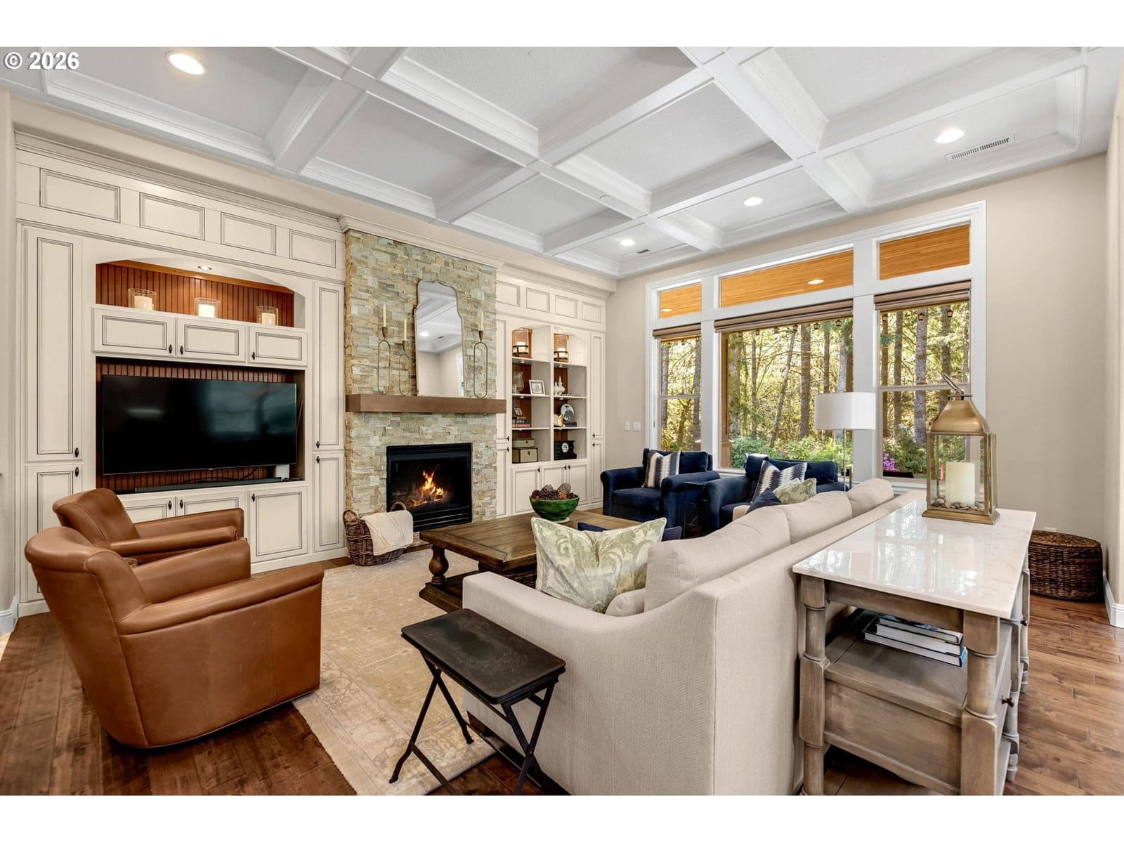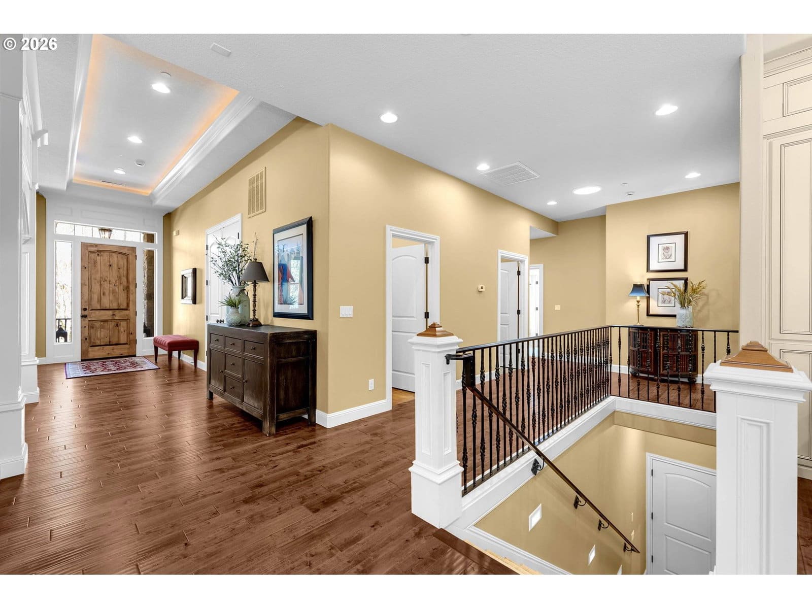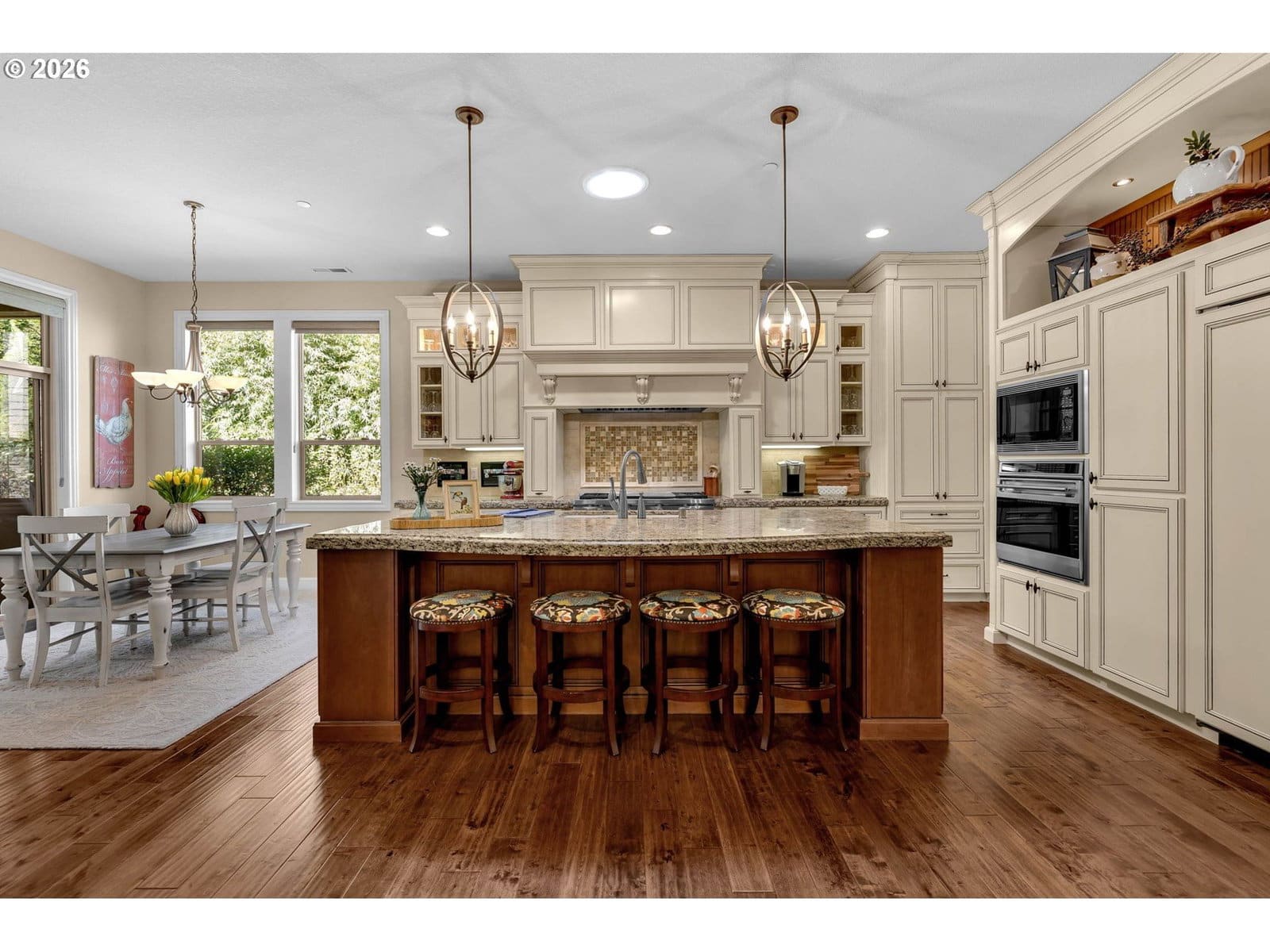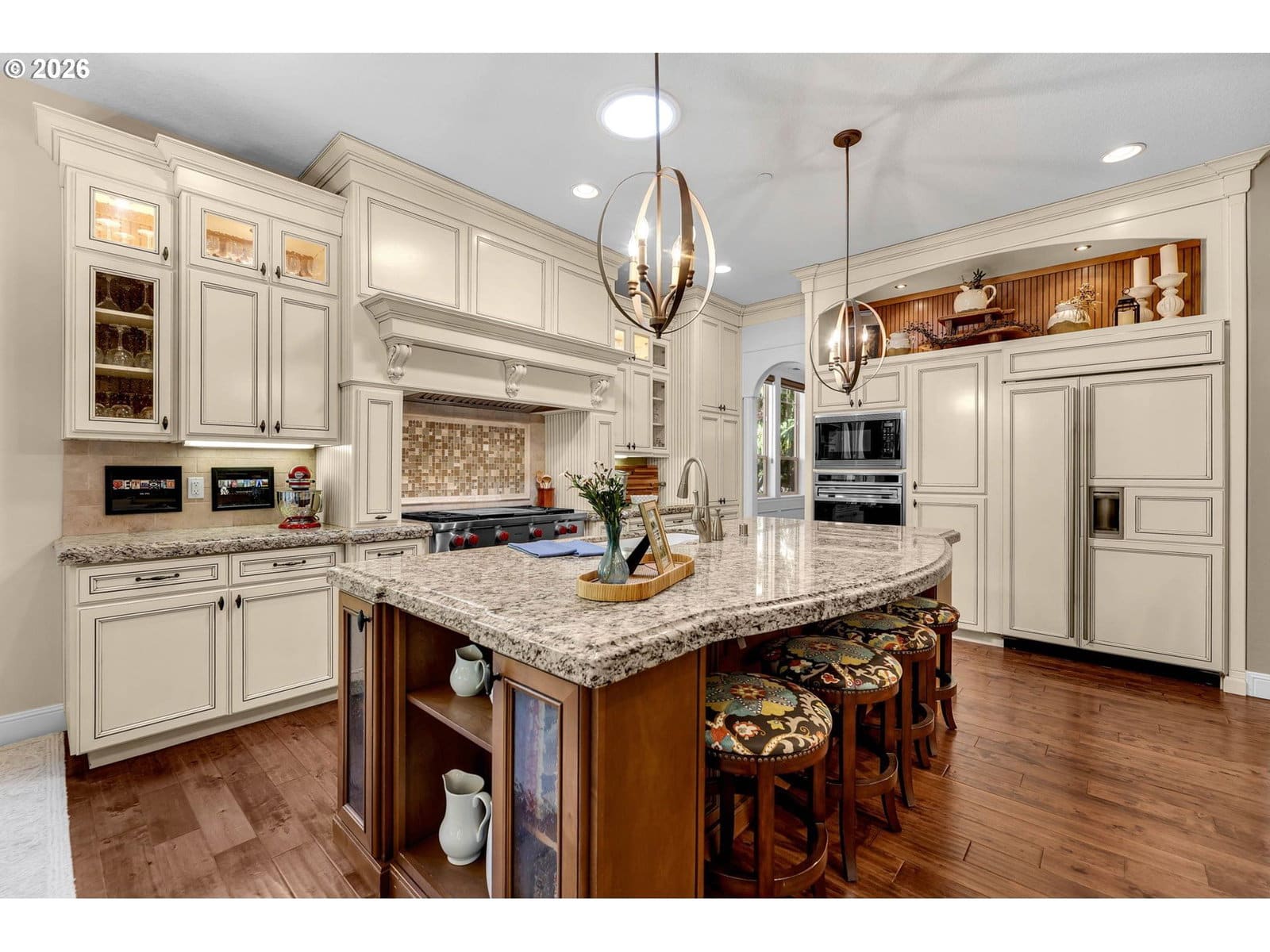 Welcome to an exceptional custom-built home, on a private greenbelt lot with peaceful surroundings and territorial views. Thoughtfully custom crafted, this 4 bedroom, 4.5 bath home offers a highly functional layout. From the moment you enter into the wide foyer with tray ceiling, you’re welcomed by quality craftsmanship and a warm, inviting atmosphere that flows throughout the home. At the heart of the home, the gourmet kitchen is designed for both everyday living and entertaining. Featuring a large island, abundant workspace, stainless gas appliances and custom cabinets which offers a seamless connection to the great room. A gas fireplace framed by custom built-ins creates a cozy yet refined gathering space. The open-concept design continues into the dining nook, where a sliding door leads to a beautifully landscaped backyard and covered patio. Perfect for enjoying indoor-outdoor living year round. A formal dining room adds an elegant space for hosting and special occasions. The expansive primary suite is a true retreat, thoughtfully designed for comfort and privacy. Generous in size, this serene space features a sliding glass door that opens directly to the backyard patio. The spa-inspired ensuite bath offers a luxurious experience complemented by dual vanities, a soaking tub, and a separate walk-in shower. A large walk-in closet provides abundant storage and organization. Three additional bedrooms offer flexible creative use, while a dedicated office is ideal for working from home. The fourth bedroom with its own private ensuite is perfectly suited as a guest suite, bonus room, or media space—providing excellent separation and versatility for multigenerational living. Spacious lower level bonus room perfect for a gym set up, play room or theatre room with attached full bathroom. The oversized 3-car garage provides ample room for vehicles, storage, and the hobby enthusiast. Situated on a 10,000 sq ft lot, the property offers privacy and a connection to nature.