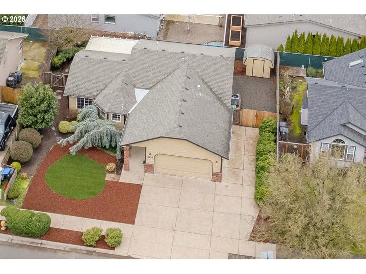 Well-Maintained, 1-Level Home w/ RV Parking and tucked away in a sweet Santa Clara neighborhood on a quiet street w/ no-thru-traffic. This 3-bedroom, 2-bath property offers 1,454 sqft of comfortable living space with vaulted ceilings, a cozy gas fireplace, and a sunny open kitchen w/ gas range that looks out over the unique Weeping Blue Cedar in the front yard. The primary bedroom features dual vanities and a walk-in shower and there are 2 more bedrooms, another full bath and a spacious laundry room w/ utility sink. Laminate floors throughout (no carpet!) and all appliances are included. The gas furnace and heat pump have both been replaced in the last couple years and the roof was replaced in 2014. Outside, enjoy an easy-maintenance and fully-fence yard w/ covered patio, beautiful rhododendrons and camellias, dog run, tool shed, gated RV parking in back, paved RV parking in front, and a two-car finished garage. Come see your new, move-in-ready home!