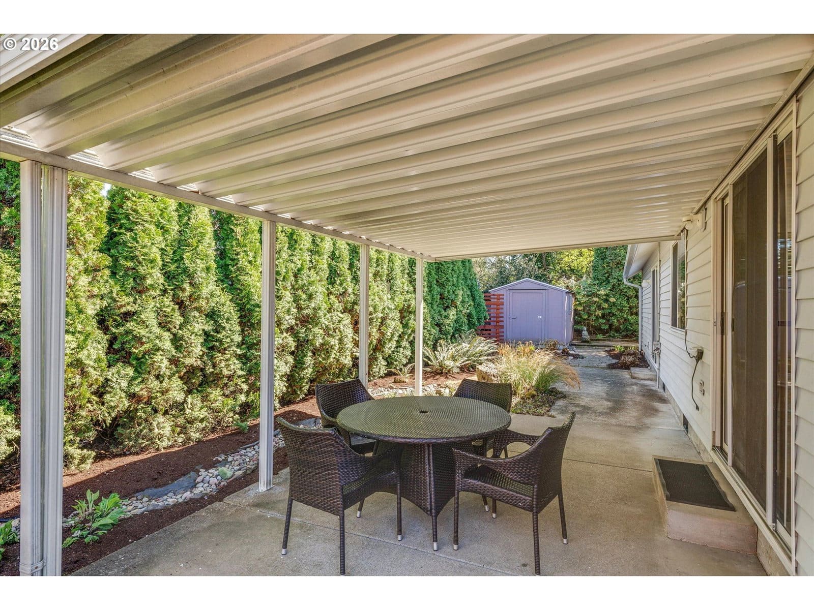 Welcome home to this well maintained one-level gem in desirable North Canby! This inviting 3-bedroom, 2-bath home offers a functional and comfortable layout perfect for everyday living and entertaining. The spacious primary suite features a walk-in closet with organization and a private slider leading to the back patio thats ideal for enjoying your morning coffee or unwinding in the evening. You’ll love the blend of living spaces, including a formal living room with a charming window seat and a cozy family room. The updated kitchen is equipped with a gas stove, new dishwasher, and a nook with access to the covered back patio perfect for year round outdoor enjoyment. Additional highlights include newer carpet and a newer hot water heater.Outside, you’ll find a fully usable backyard with a storage shed, along with a 2-car garage for added convenience. Situated in a fantastic Canby location, this home offers easy access for commuters while still enjoying a quiet neighborhood feel.