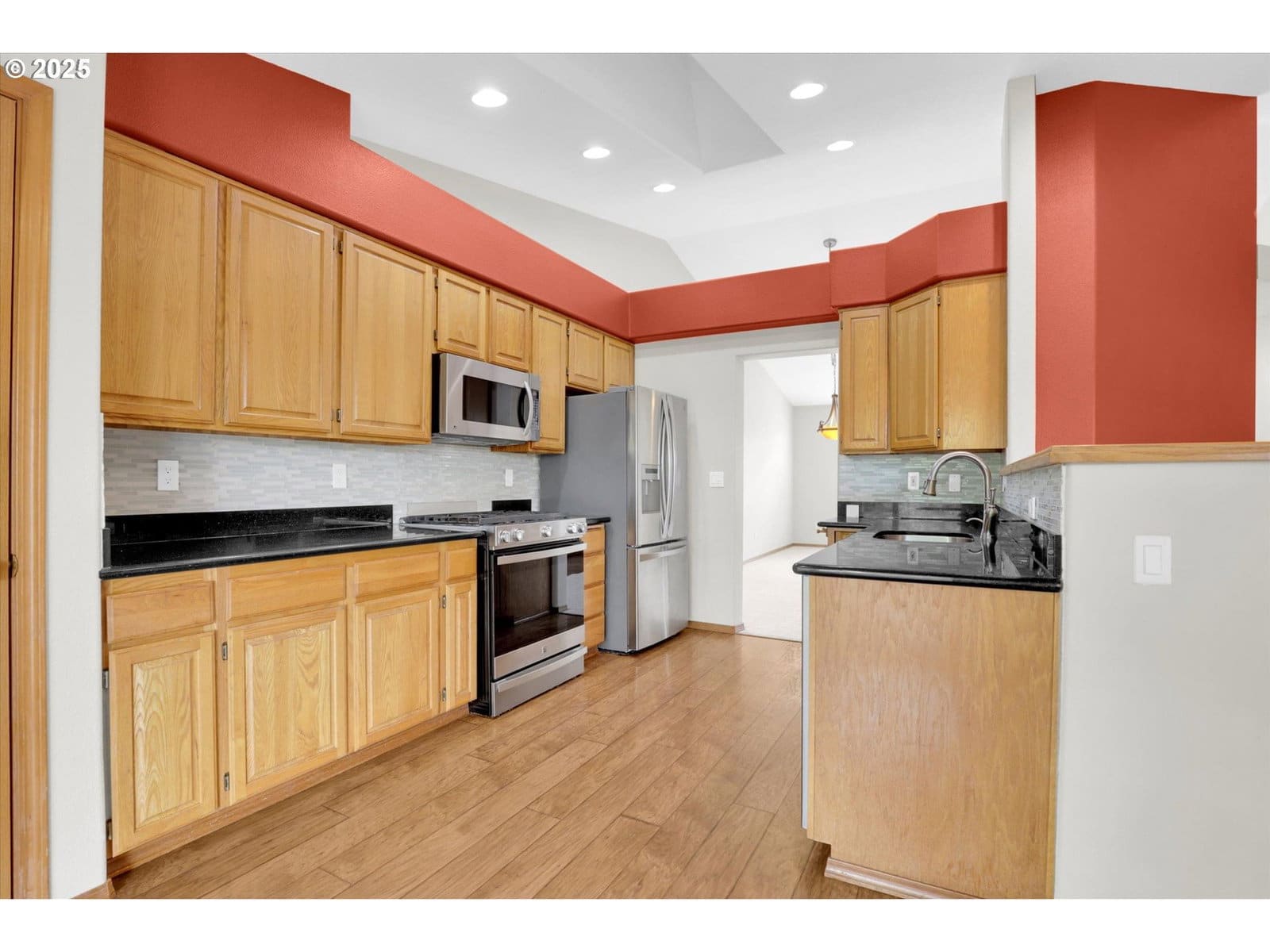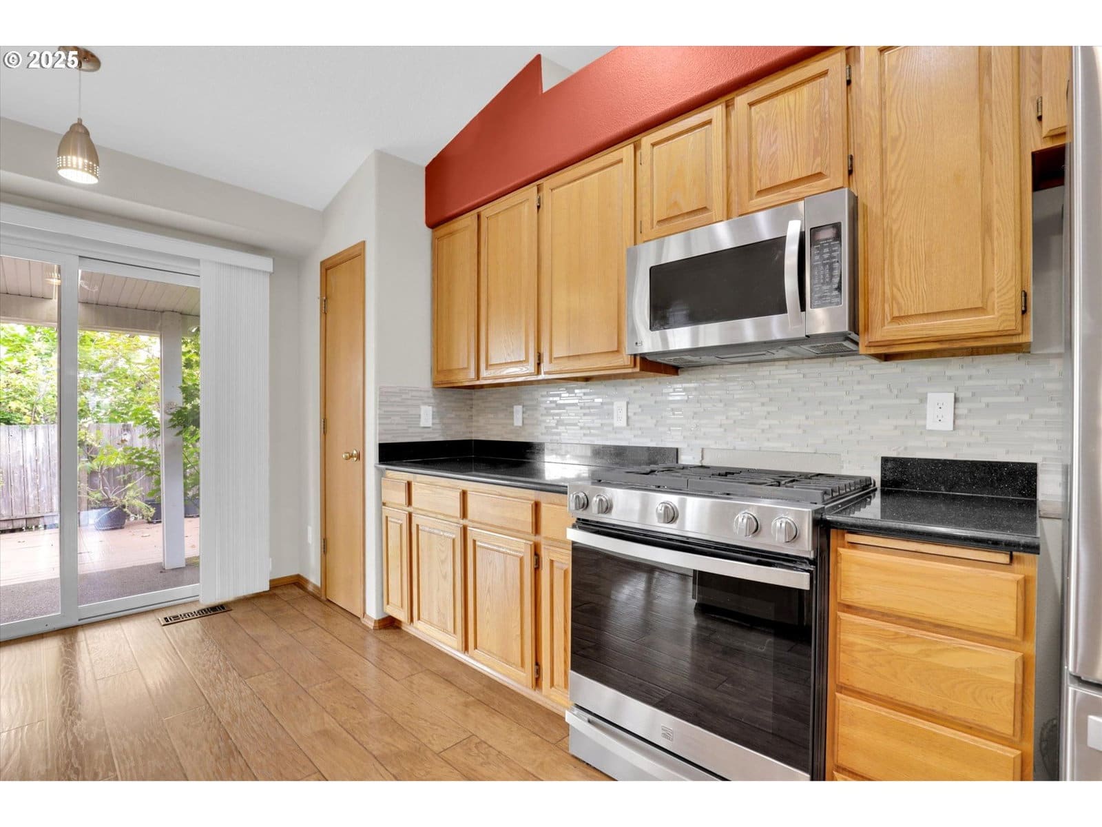 Charming One-Level Retreat on a Closed Street! This beautifully updated home featuring fresh interior paint and plush new carpeting, wood burning fireplace, solar installation, is move-in ready. You benefit from a fully owned solar power system that delivers impressive energy savings and eco-friendly living. The newer furnace and AC are recently serviced to keep you comfortable all year round. A new Leaf Guard system ensures effortless gutter maintenance. Situated on a quiet, serene street, this home offers a private sanctuary perfect for relaxation and everyday living. All major appliances—Bosch dishwasher, refrigerator w/filtered ice and water, built in microwave, gas stove and oven, and a laundry room outfitted with a clothes washer, dryer, and sink—are included for your move-in convenience. Imagine creating your own lush outdoor oasis in the spacious back yard, a blank canvas awaiting your personal touch. Within close proximity to Glencoe High School. [Home Energy Score = 9. HES Report at https://rpt.greenbuildingregistry.com/hes/OR10241607]