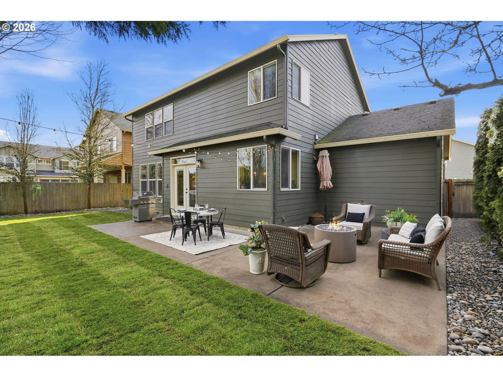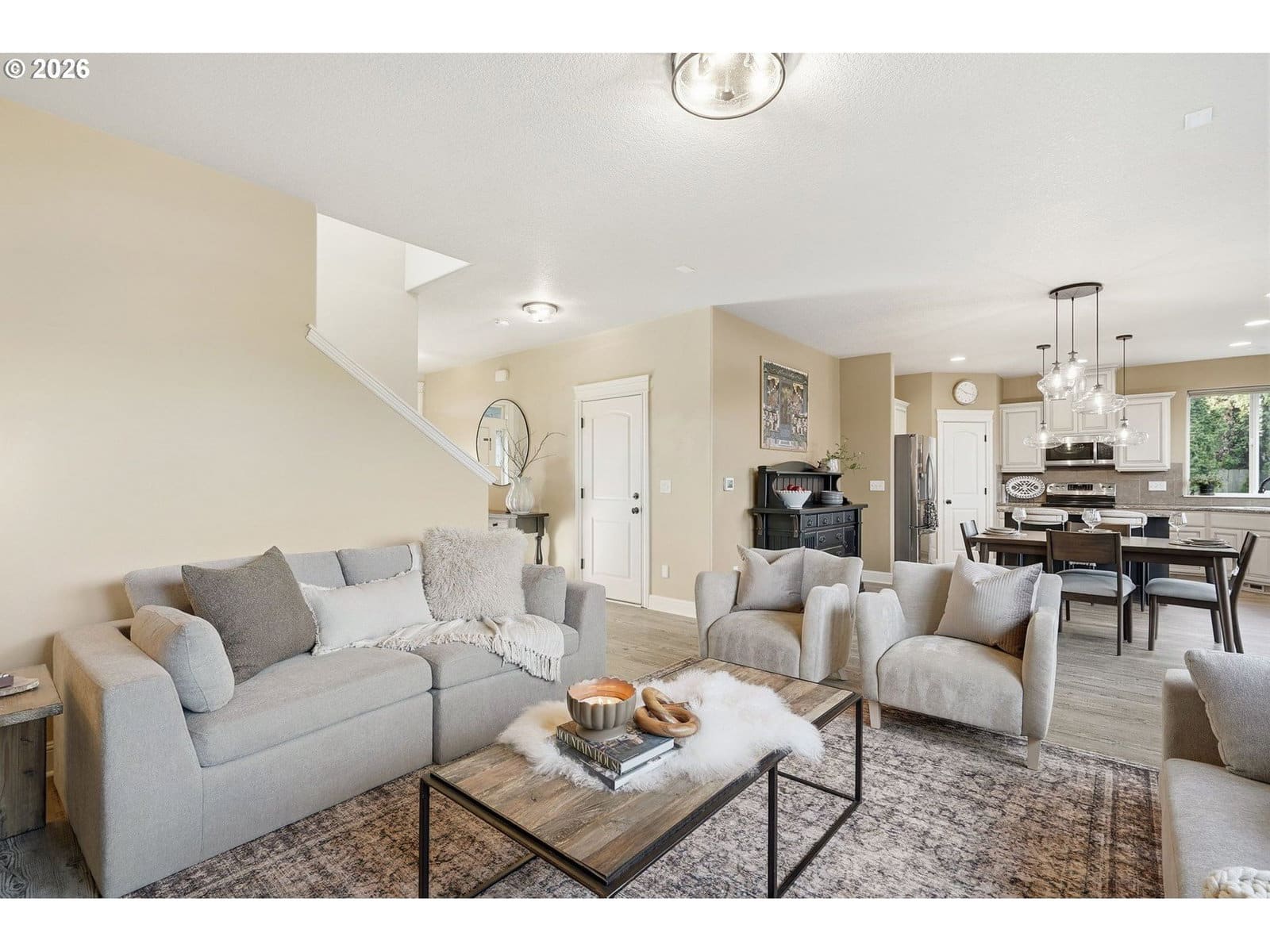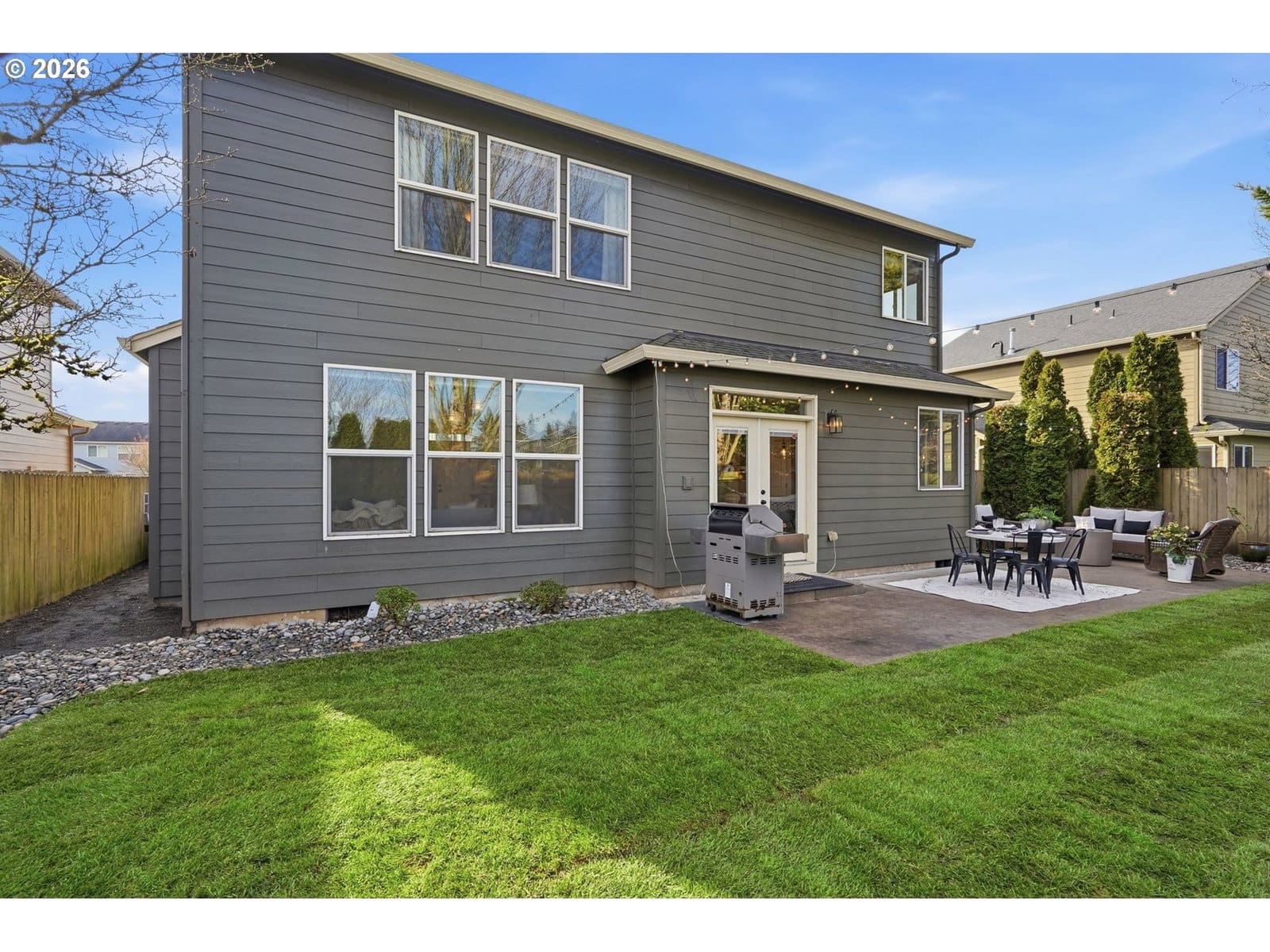 Located in the desirable Village on the Glen neighborhood, this thoughtfully designed home offers flexible living spaces, access to outdoor amenities, and a convenient central location. Less than 20 minutes to PDX Airport and approximately 10 minutes to WSU Vancouver, with easy access to shopping, dining, and major commuter routes.The floor plan includes three bedrooms plus a den with a closet, offering the potential for a fourth bedroom, along with 2.5 bathrooms. The kitchen features newer stainless steel appliances, custom cabinetry, a large island, and a walk-in pantry, providing ample storage. French doors off the dining area open to a freshly landscaped backyard, ideal for gatherings and everyday enjoyment. The property also includes private gated access to an expansive green space with walking trails.Upstairs, double doors lead to the primary bedroom with an ensuite bathroom featuring dual vanities, a corner soaking tub, and a large walk-in closet with built-ins. Two additional bedrooms and a generously sized laundry room complete the upper level.An oversized three-car garage includes built-in shelving and a large storage loft in the third bay, offering exceptional storage options. The home is equipped with a central vacuum system throughout, including the kitchen, as well as a green UV air purification system in the air ducts for healthy living. Professionally designed interiors allow for the option to purchase the home fully furnished at an additional cost. Seller to provide a flooring allowance. Priced to sell at $575,000.