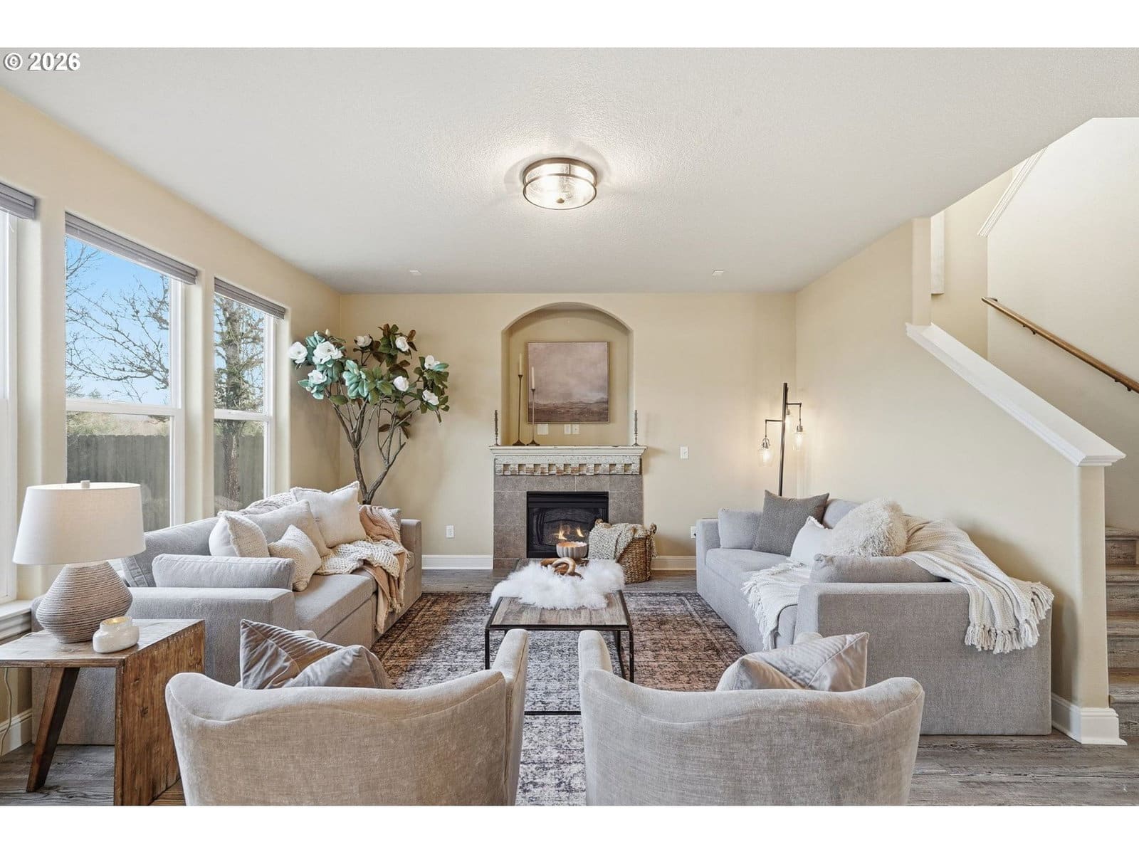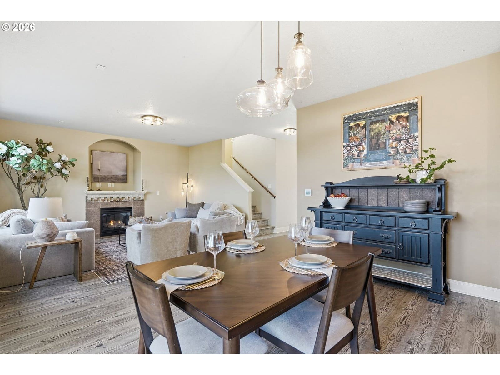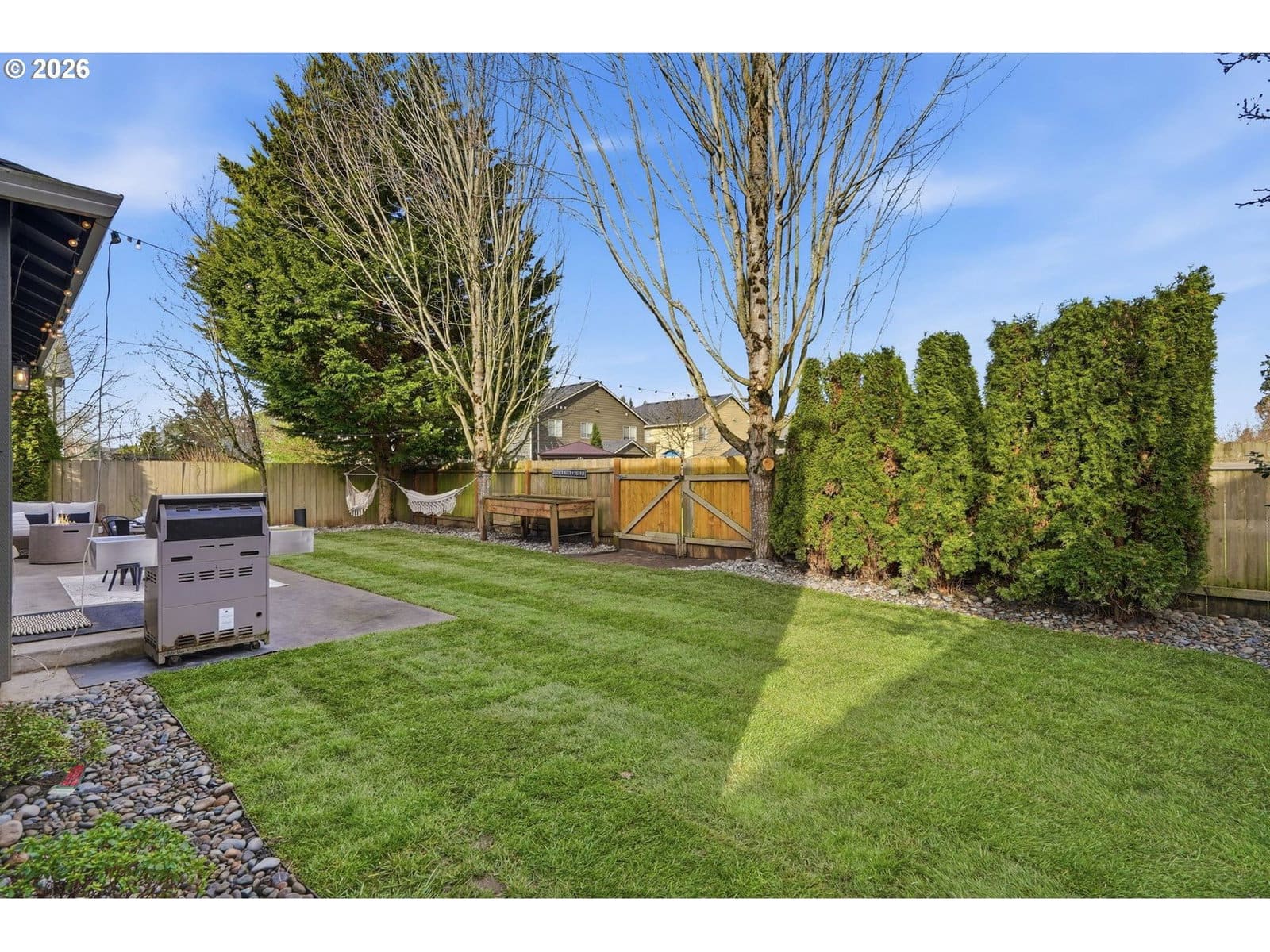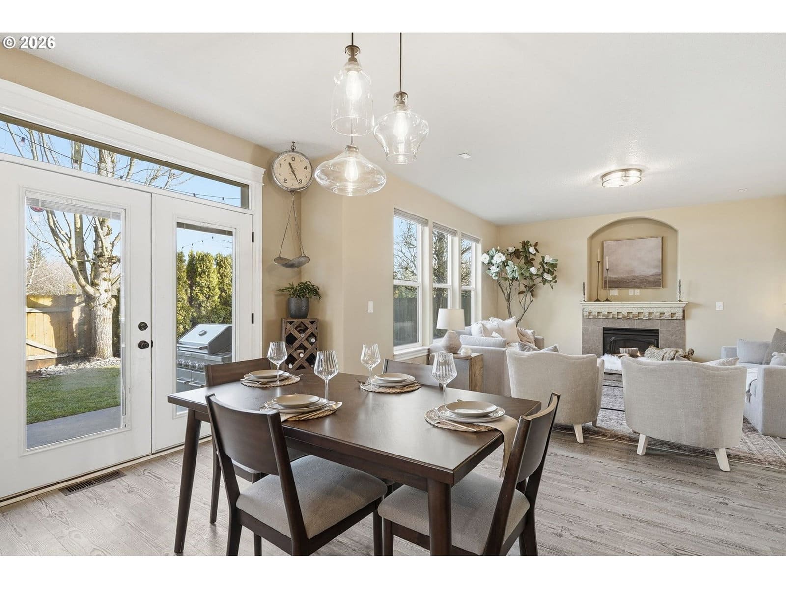 Located in the desirable Village on the Glen neighborhood, this thoughtfully designed home offers flexible living spaces, access to outdoor amenities, and a convenient central location. Less than 20 minutes to PDX Airport and approximately 10 minutes to WSU Vancouver, with easy access to shopping, dining, and major commuter routes.The floor plan includes three bedrooms plus a den with a closet, offering the potential for a fourth bedroom, along with 2.5 bathrooms. The kitchen features newer stainless steel appliances, custom cabinetry, a large island, and a walk-in pantry, providing ample storage. French doors off the dining area open to a freshly landscaped backyard, ideal for gatherings and everyday enjoyment. The property also includes private gated access to an expansive green space with walking trails.Upstairs, double doors lead to the primary bedroom with an ensuite bathroom featuring dual vanities, a corner soaking tub, and a large walk-in closet with built-ins. Two additional bedrooms and a generously sized laundry room complete the upper level.An oversized three-car garage includes built-in shelving and a large storage loft in the third bay, offering exceptional storage options. The home is equipped with a central vacuum system throughout, including the kitchen, as well as a green UV air purification system in the air ducts for healthy living. Professionally designed interiors allow for the option to purchase the home fully furnished at an additional cost. Seller to provide a flooring allowance. Priced to sell at $575,000.