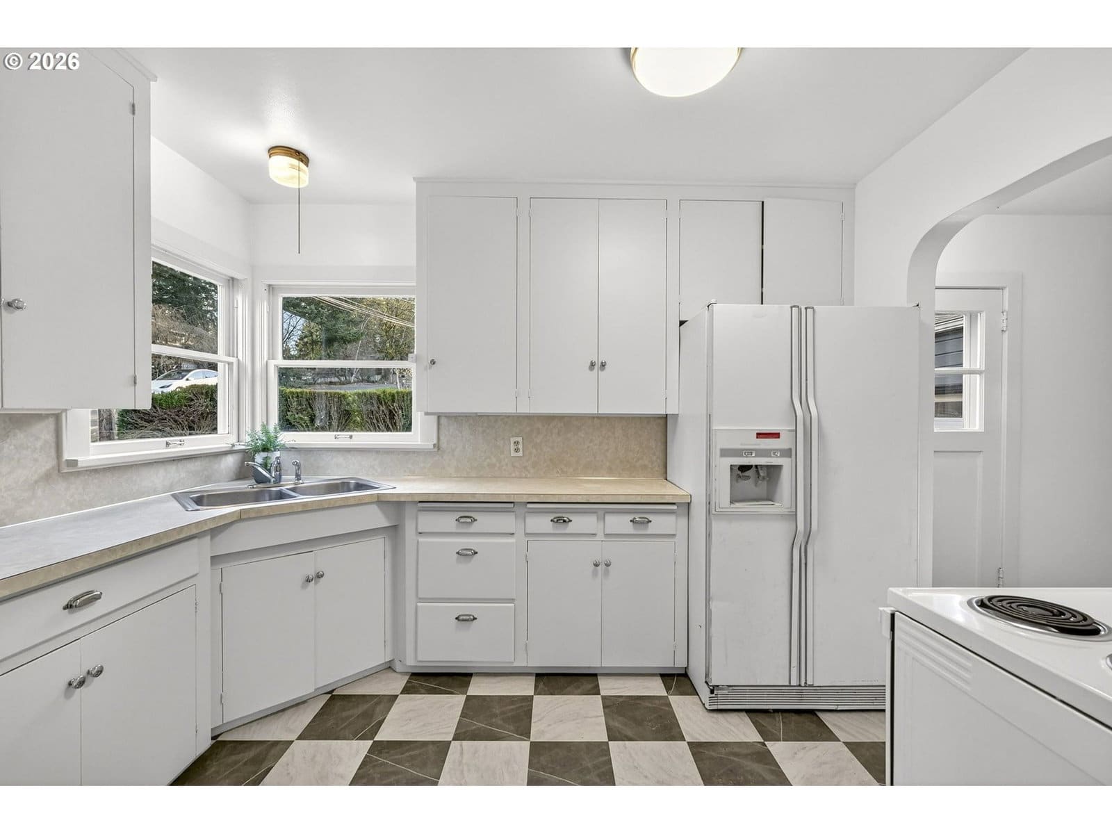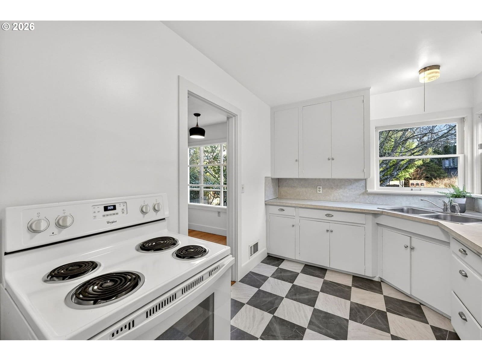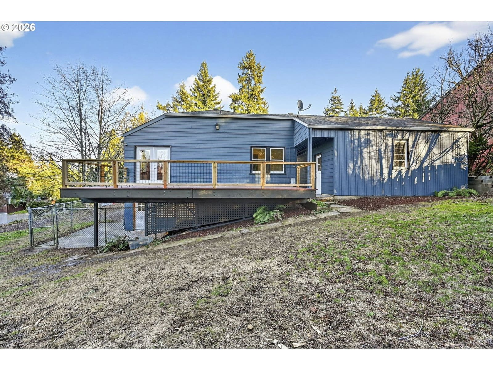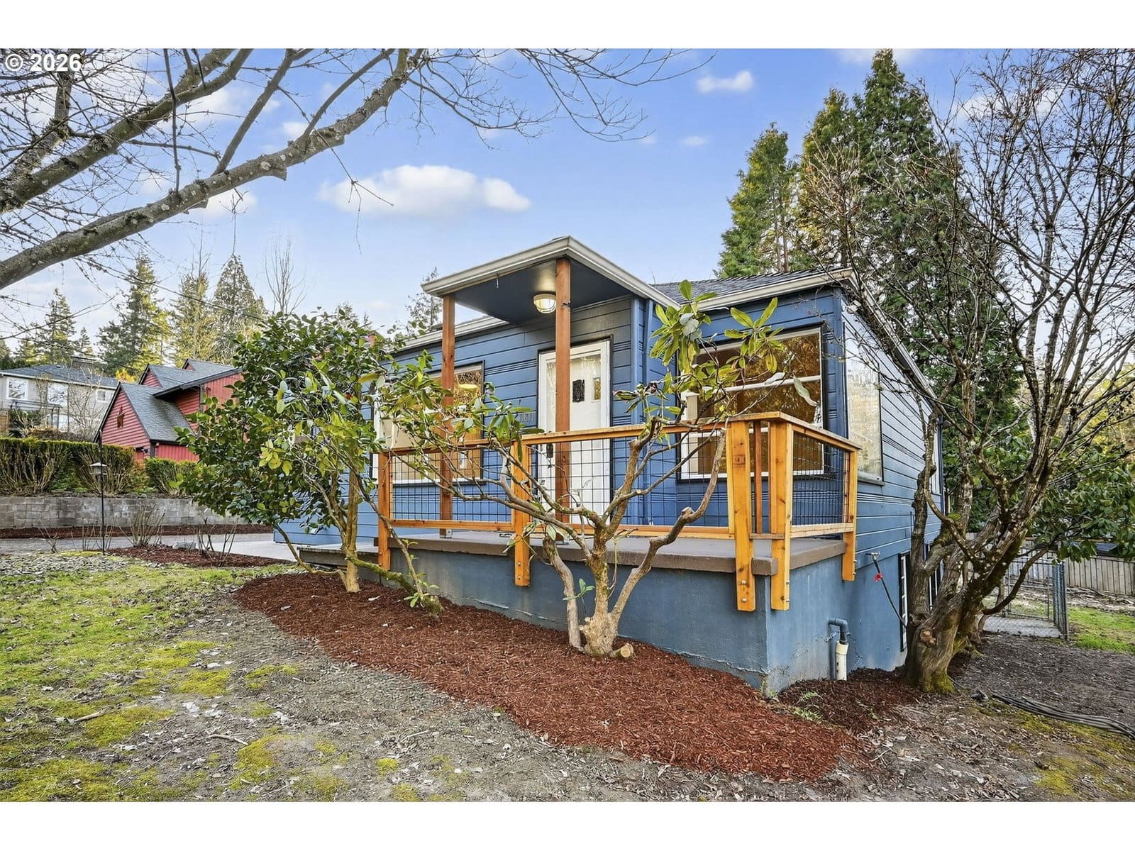 This light-filled 4-bedroom, 1.5-bath home is move-in ready while offering excellent future upside. Perched above the street on a generous 0.27-acre corner lot, the property blends privacy, flexibility, and long-term potential in a highly desirable neighborhood. The main level features hardwood floors and large windows that flood the home with natural light along with a charming kitchen and sunny dining area. French doors lead to the spacious back deck, recently upgraded with rebuilt railings—perfect for everyday living and entertaining. A daylight basement with a separate entrance adds valuable flexibility, ideal for a bonus room, guest space, home office, or potential ADU conversion. Outside, the expansive lot offers room to garden, play, or explore future expansion complemented by an oversized two-car garage with ample storage. [Home Energy Score = 4. HES Report at https://rpt.greenbuildingregistry.com/hes/OR10243884]