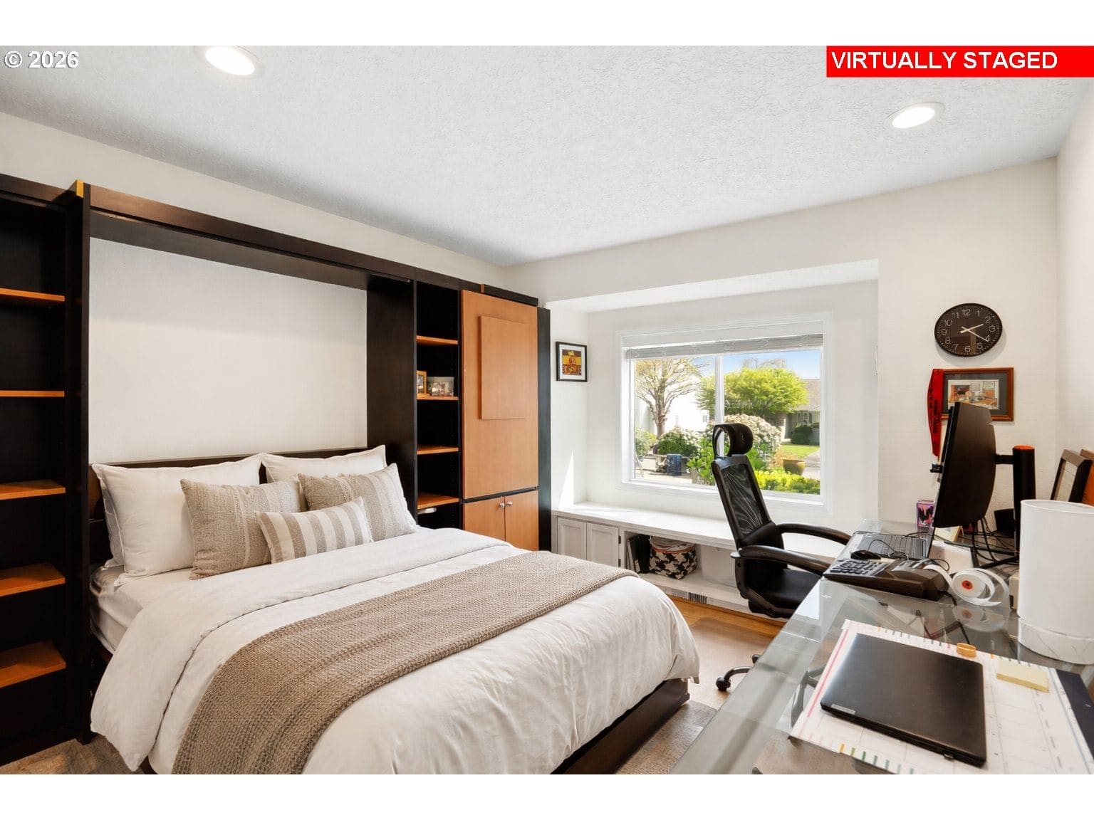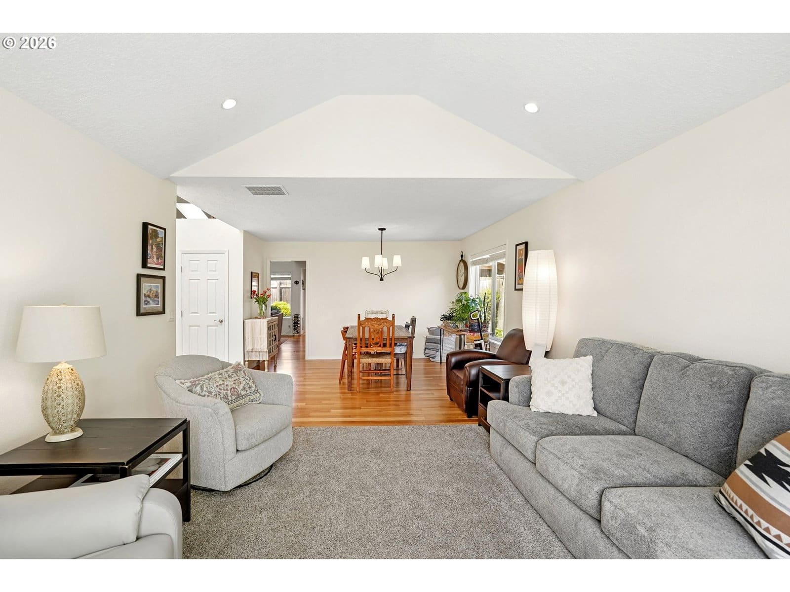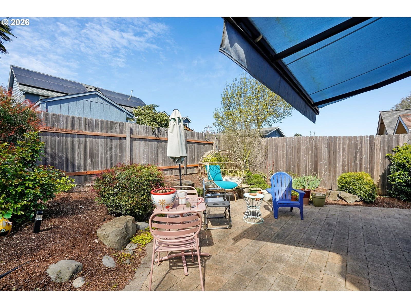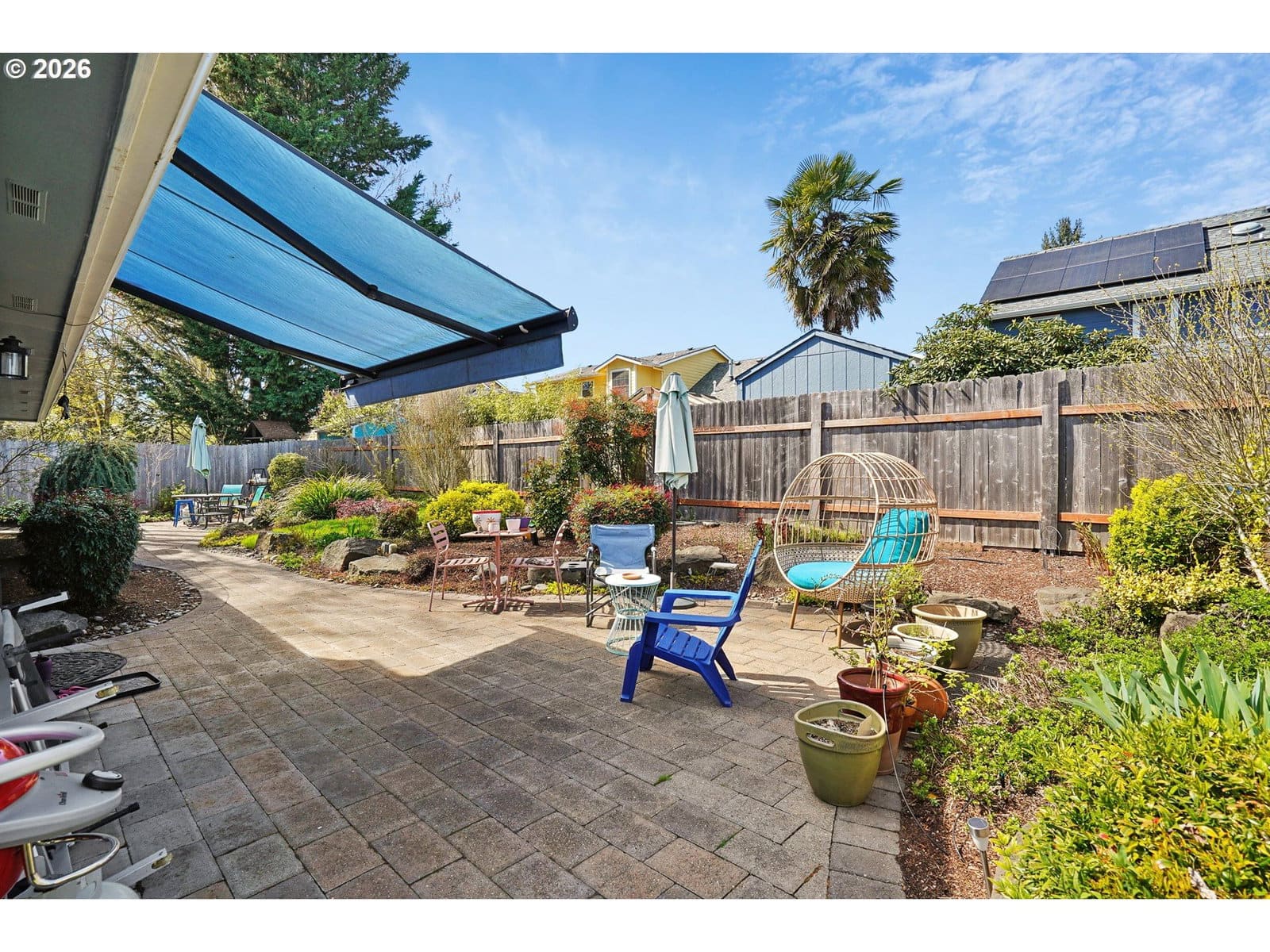 Tucked into a quiet North Keizer cul-de-sac, this well-maintained single-level home offers comfort, updates, and a thoughtfully designed, spacious layout. Vaulted ceilings and skylights bring in natural light, creating a bright, open feel in the front living and dining spaces. Refinished hardwood floors, new carpet, and updated surfaces add a clean, refreshed look.The den features a trendy refinished brick fireplace and built-in storage, adding both warmth and function while being open to the kitchen. Recent improvements include new windows, exterior paint, furnace, water heater, and fencing—providing peace of mind for the next owner.The primary suite is situated in the back of the house for added privacy and includes double door entry, L-shaped vanity with double sinks and built-in shelf storage, and an oversized closet. The third bedroom functions well as an office but is still practical with a built-in Murphy bed. The yard is a true highlight with lush landscaping and vibrant pops of color throughout. Flowering plants create a private, garden-like setting, while a welcoming fountain in the front adds charm and a sense of calm. Hardscaped pathways wrap around the home, making it easy to enjoy every corner of this outdoor space—an inviting oasis for relaxing or entertaining.Located close to schools, shopping, dining, and community events, with easy access to I-5 for commuting north or south. All on one level, this home offers flexibility, comfort, and long-term appeal in one of North Keizer’s most desirable locations.