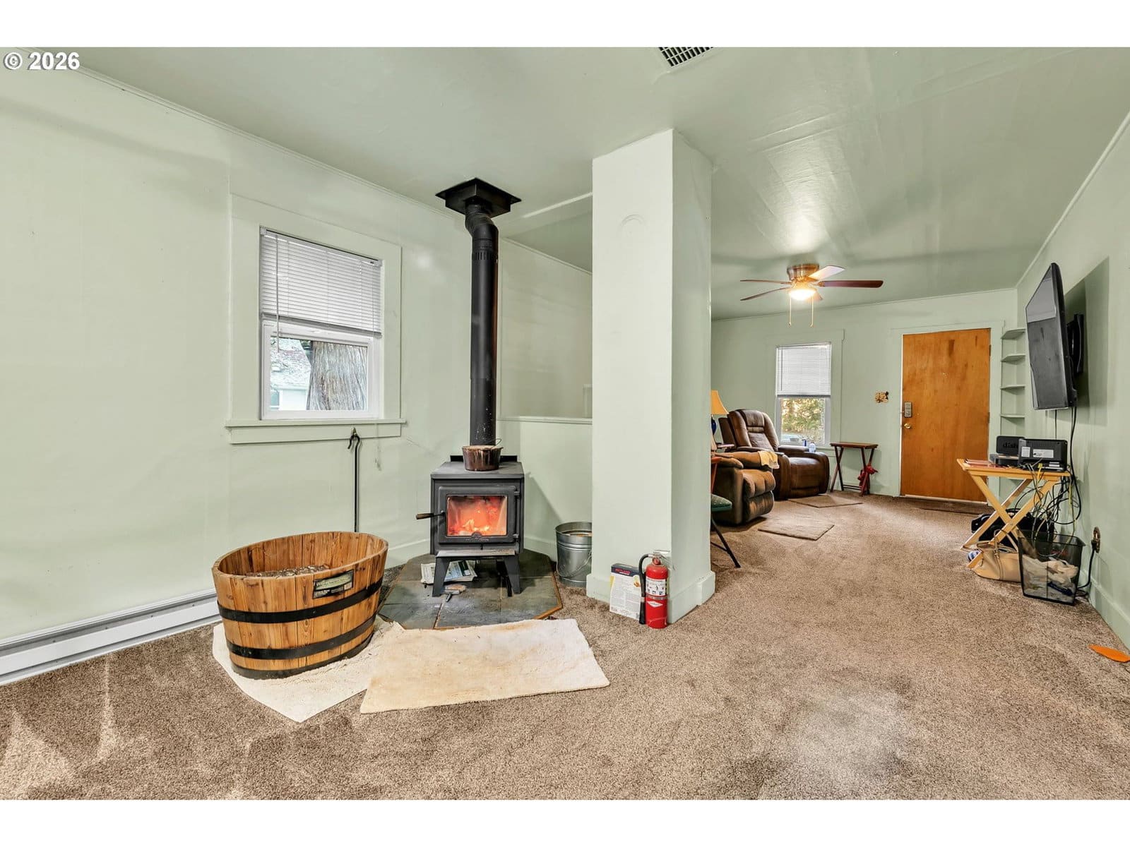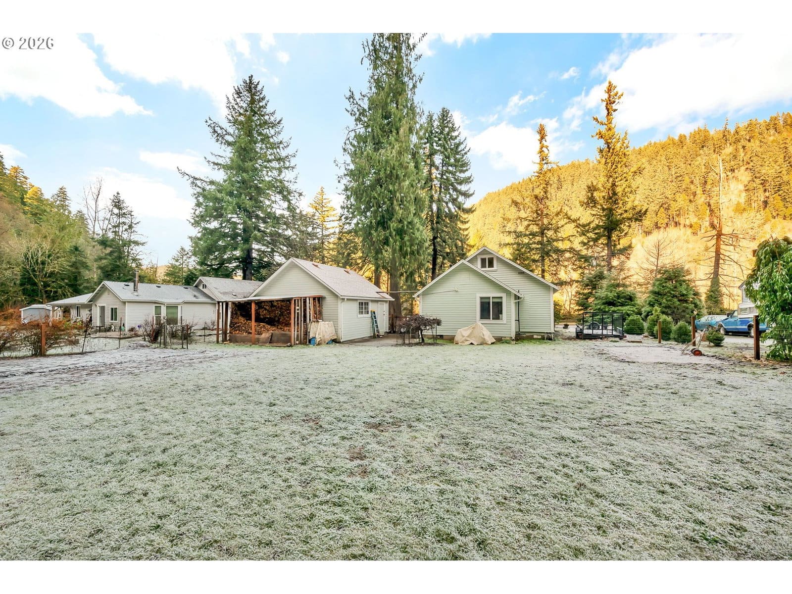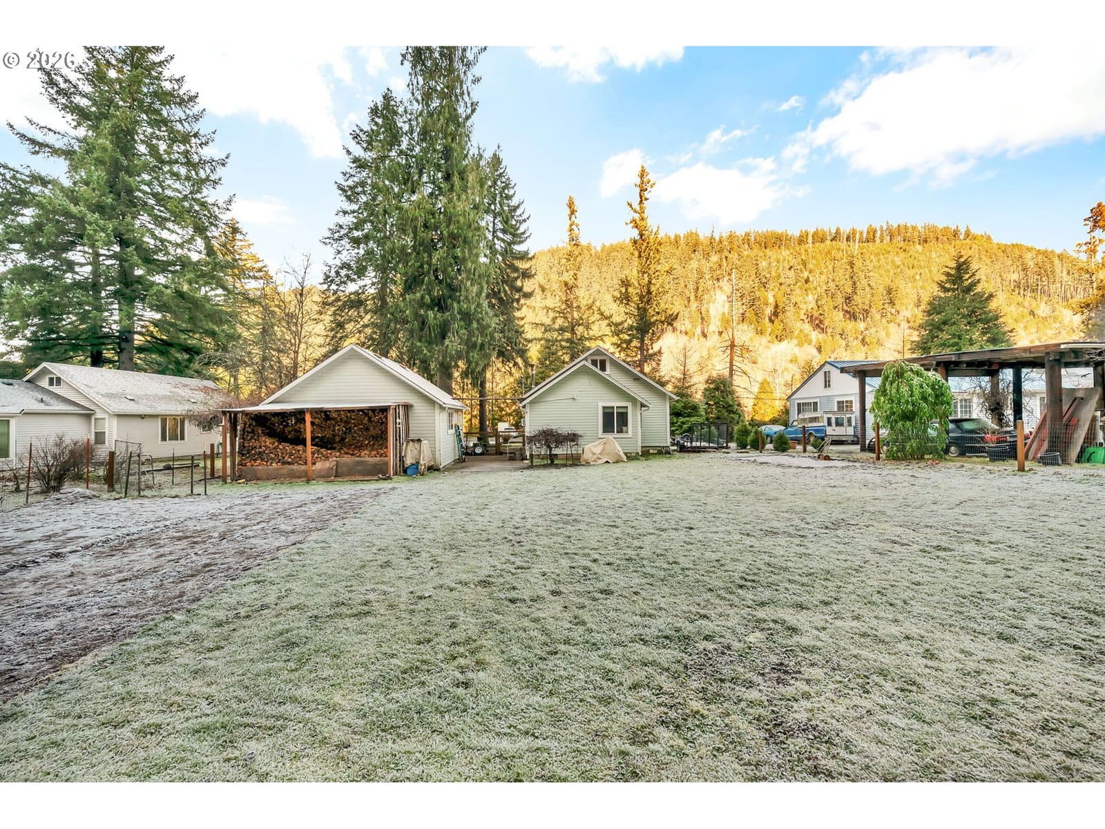Originally built in 1930 with original Douglas fir siding milled by local loggers. It is located across the road from the North Fork Middle Fork Willamette River, you can hear it. This home has a long gravel driveway that leads to a detached garage that has plenty of space for your needs. Plus a fully fenced and spacious backyard at the base of a wooded mountainside. The interior has two bedrooms on the main level, both connected to the bathroom. Huckleberries Flats OHV Trail within 25 minutes. Original Douglas Fir flooring under the carpet. Property is being sold in As-Is condition. Seller is Motivated. Don't miss all the possibilities this house can offer.