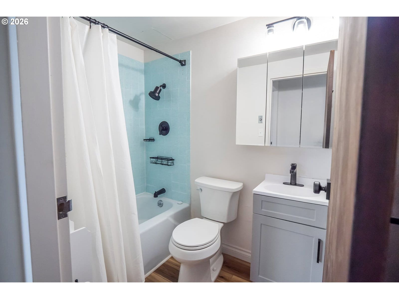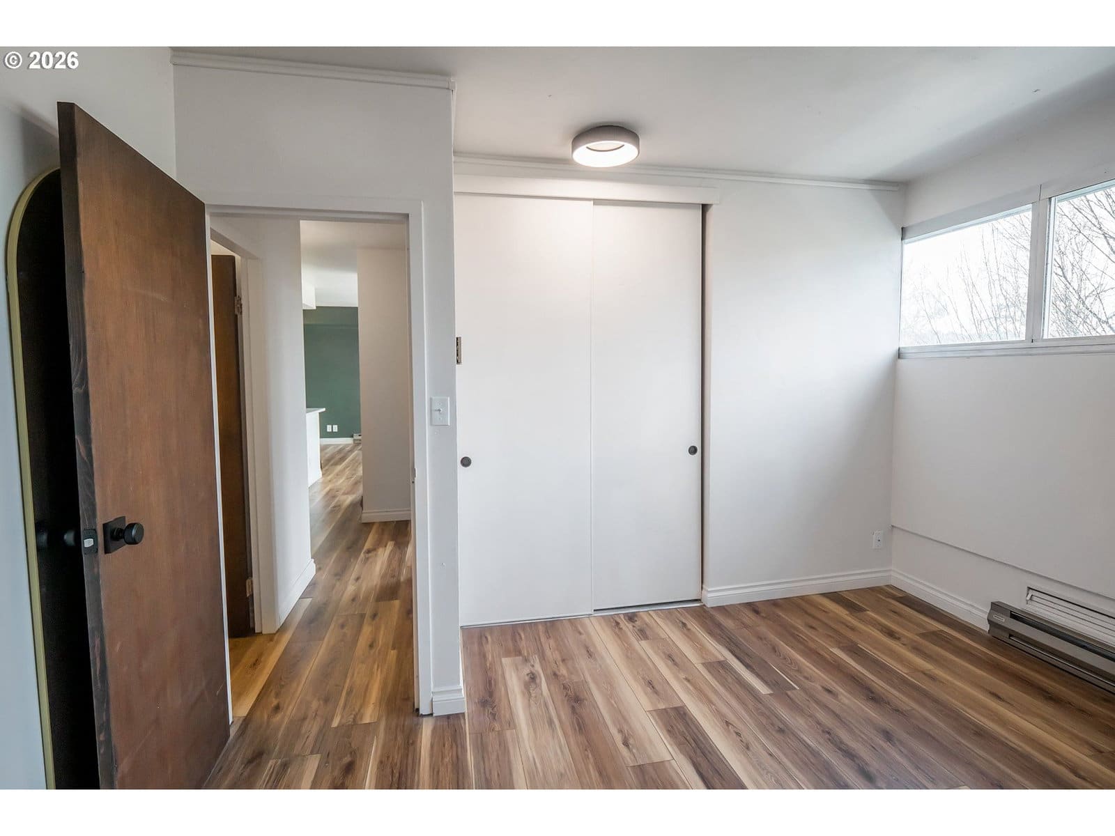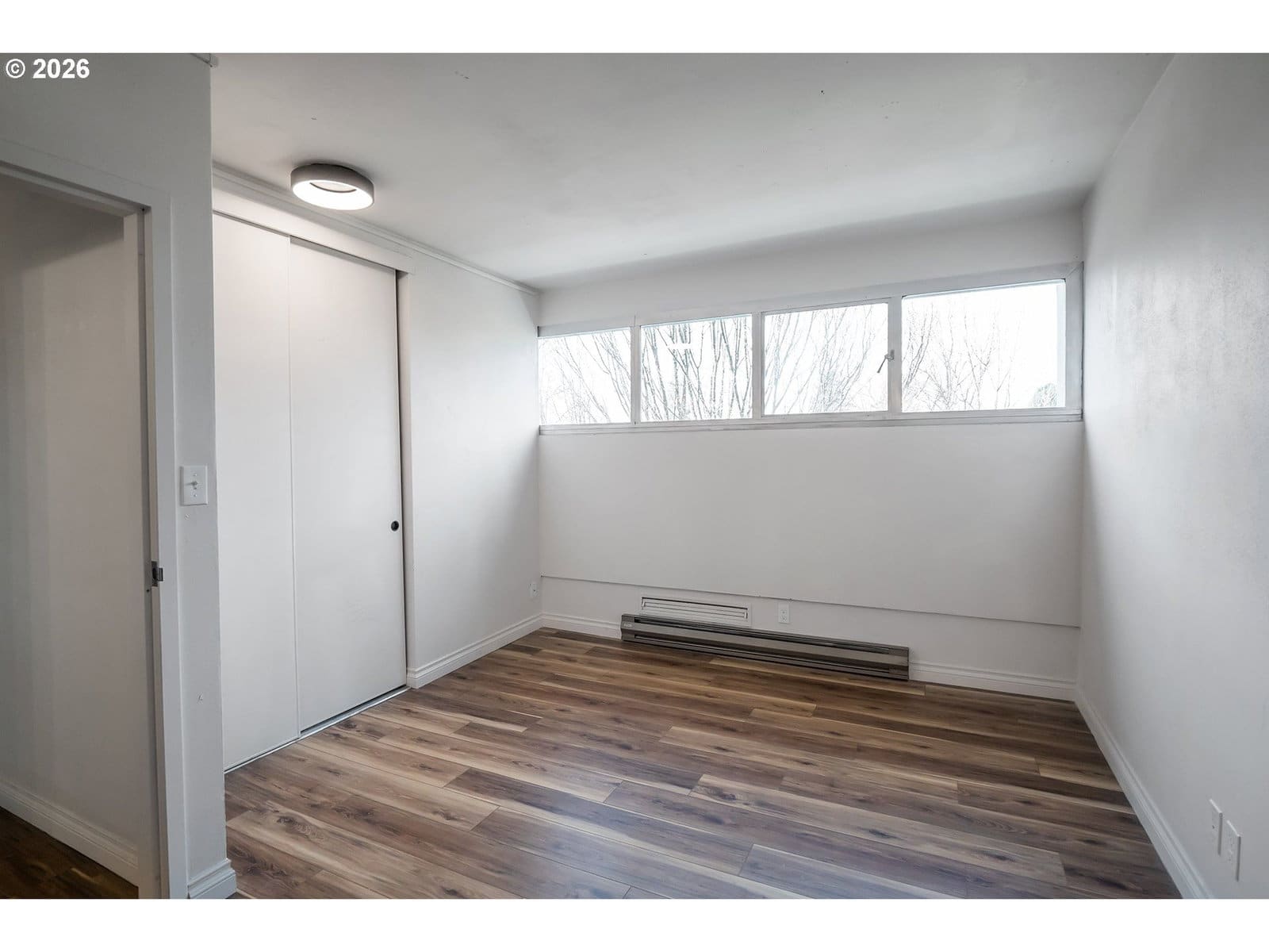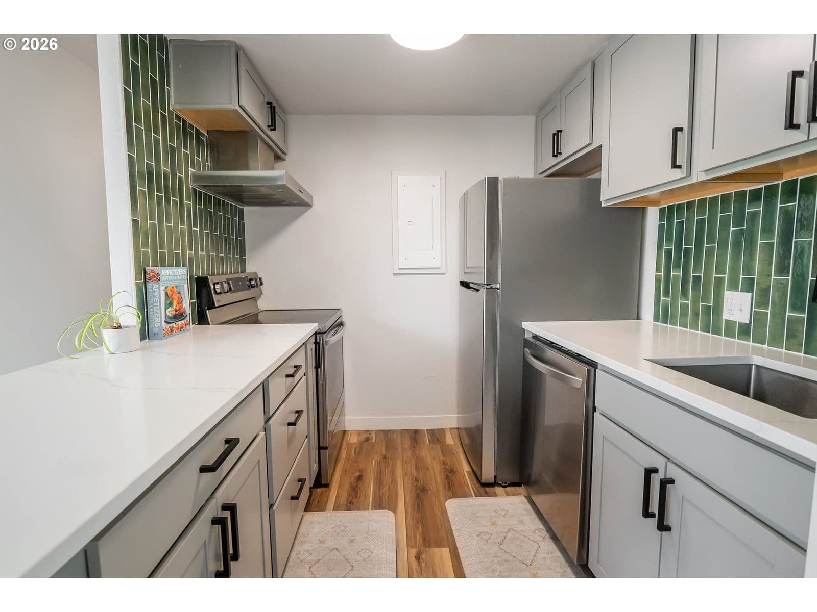 Overflowing with light, this corner condo is comfortable, convenient and surprisingly spacious. High ceilings and expansive windows create a bright, airy atmosphere and easy lifestyle. The key-fob operated front door leads past the onsite manager, offering multiple layers of security as you make your way home. Inside you'll find fresh paint and upgraded luxury vinyl plank flooring, custom cabinets, quartz countertops, tile backsplash, rubbed bronze fixtures and hardware, lighting and new stainless steel kitchen appliances. The revived bathrooms have new vanities, sinks, rubbed bronze fixtures and mirrors, inviting you to relax and enjoy in modern bliss. Step outside and experience everything Eugene has to offer right outside. Also included is deeded parking behind a secure gate, enhancing the sense of a private retreat within the city. Your front door is just steps from both the elevator and stairwell. With onsite accessible laundry, bicycle parking, and additional storage options, this condo truly has it all. Schedule your tour today. You won’t want to miss it!