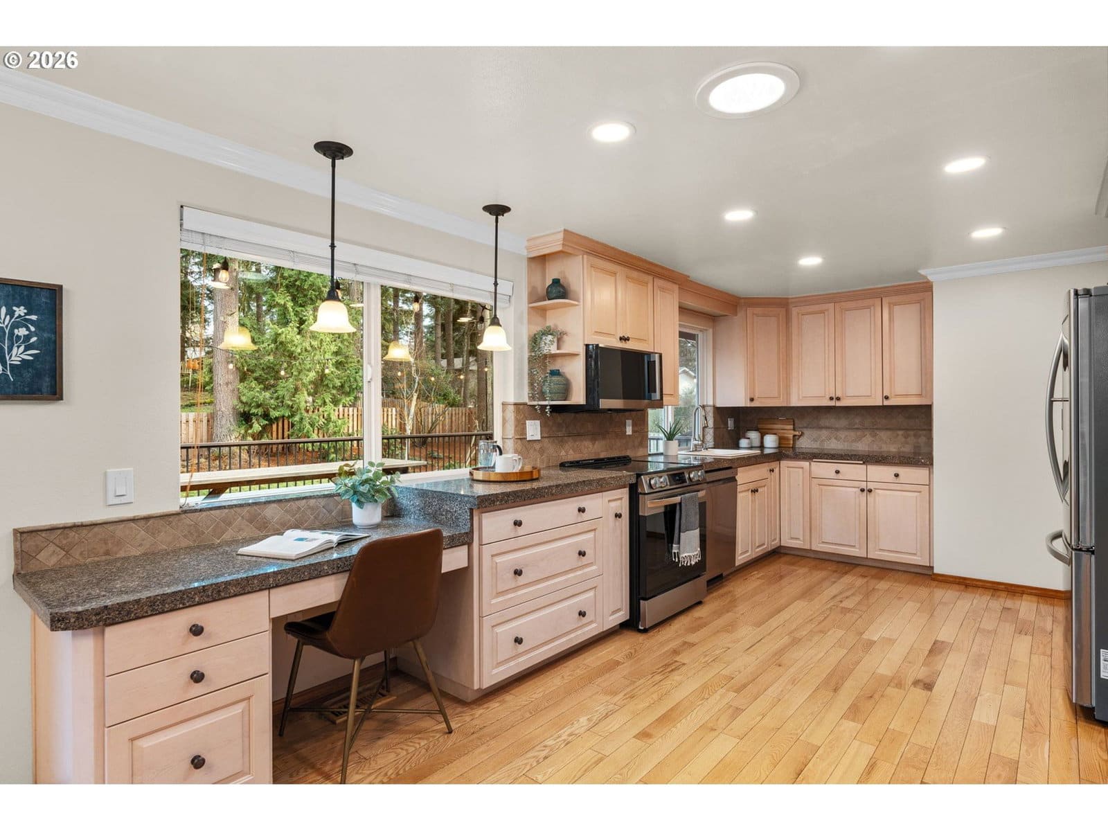 It’s Pine & Dandy! This fabulous home sits on a private, treed 0.45-acre lot with RV parking, just 10 minutes from downtown OC. Fresh paint, new carpet, and updated lighting and appliances make it move-in ready, while crown molding and hardwood floors add classic charm. Light-filled living and dining spaces feature a brick gas fireplace and deck access. The kitchen offers granite counters, tile backsplash, stainless appliances, a built-in desk, and a solar tube. The primary suite includes double closets and a tile bath, plus two additional main-floor bedrooms and a hall bath. Downstairs you’ll find a family room with bar and second fireplace, office, half bath with laundry, and an oversized garage. A Trex deck, fenced yard, and tool shed complete this peaceful, versatile retreat. Don’t miss this gracious home!