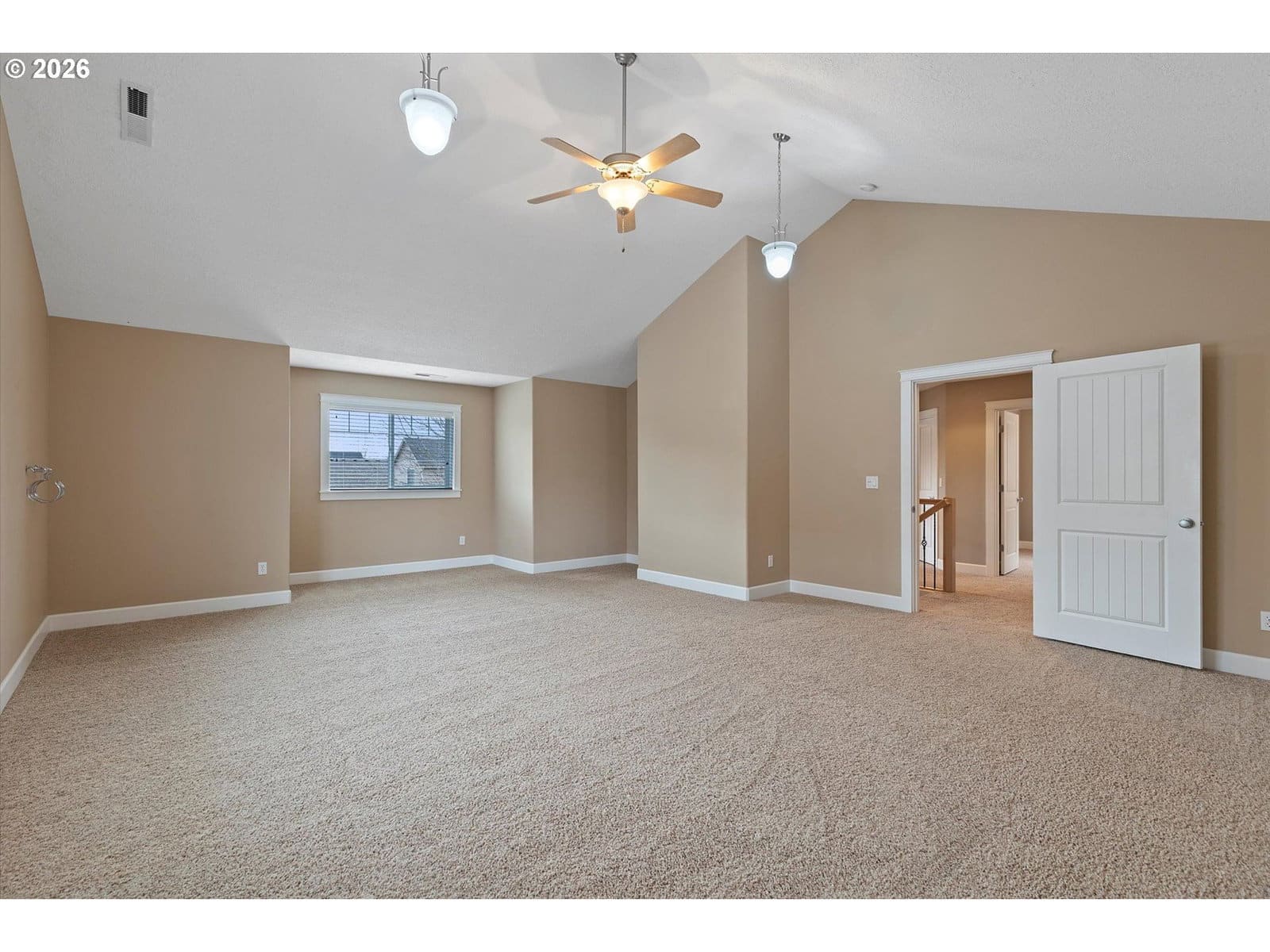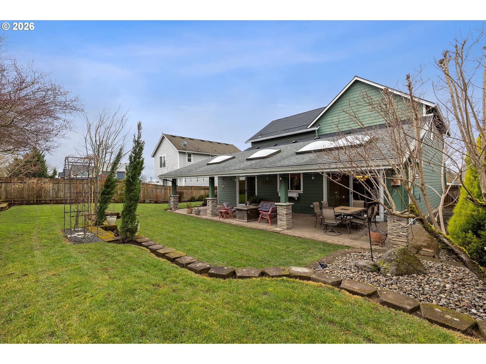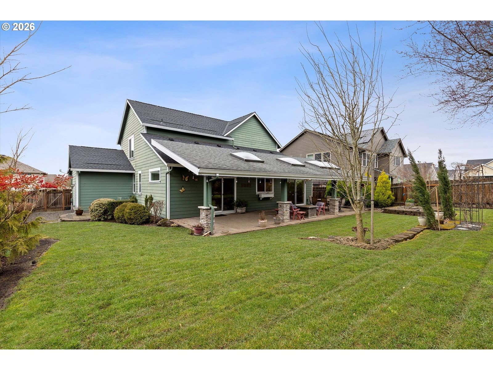 A wonderful home with an excellent floor plan, well maintained and tucked away on a quiet street. The spacious vaulted primary suite is conveniently located on the main level with a private entrance to the backyard. The kitchen features quartz countertops and stainless steel appliances, perfect for everyday living.The fourth bedroom provides a great option for a work from home office or guest space. Upstairs, you’ll find a huge vaulted bonus room above the three-car garage, ideal for a media room, playroom, or flex space. The enclosed third bay offers great potential for a workout area, workshop, or additional storage. Step outside to an incredible backyard designed for entertaining, complete with a large covered porch that opens to a beautifully landscaped yard. With a newer roof and furnace already in place, this home offers comfort and peace of mind. Small-town living at its best!