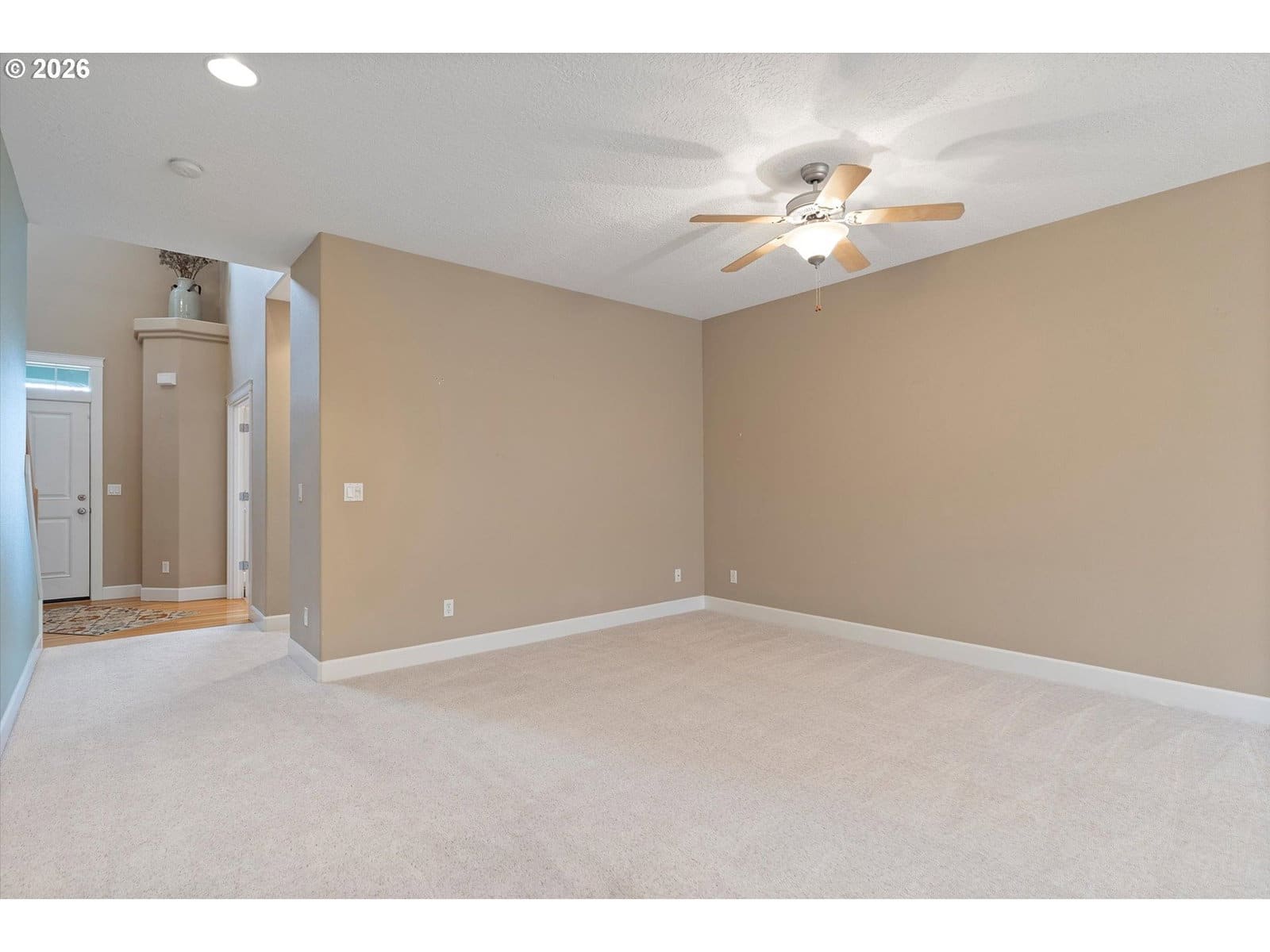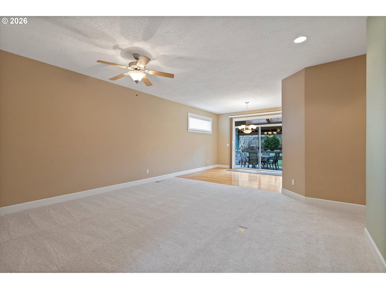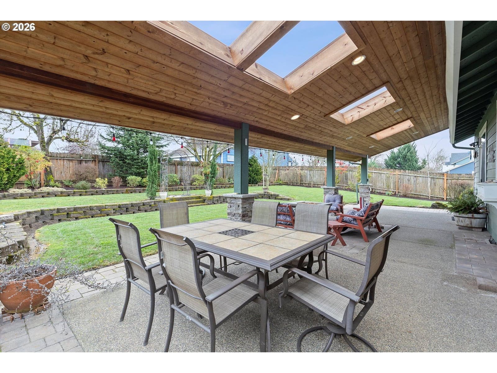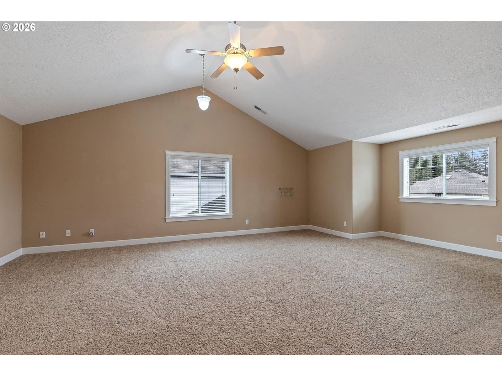 A wonderful home with an excellent floor plan, well maintained and tucked away on a quiet street. The spacious vaulted primary suite is conveniently located on the main level with a private entrance to the backyard. The kitchen features quartz countertops and stainless steel appliances, perfect for everyday living.The fourth bedroom provides a great option for a work from home office or guest space. Upstairs, you’ll find a huge vaulted bonus room above the three-car garage, ideal for a media room, playroom, or flex space. The enclosed third bay offers great potential for a workout area, workshop, or additional storage. Step outside to an incredible backyard designed for entertaining, complete with a large covered porch that opens to a beautifully landscaped yard. With a newer roof and furnace already in place, this home offers comfort and peace of mind. Small-town living at its best!