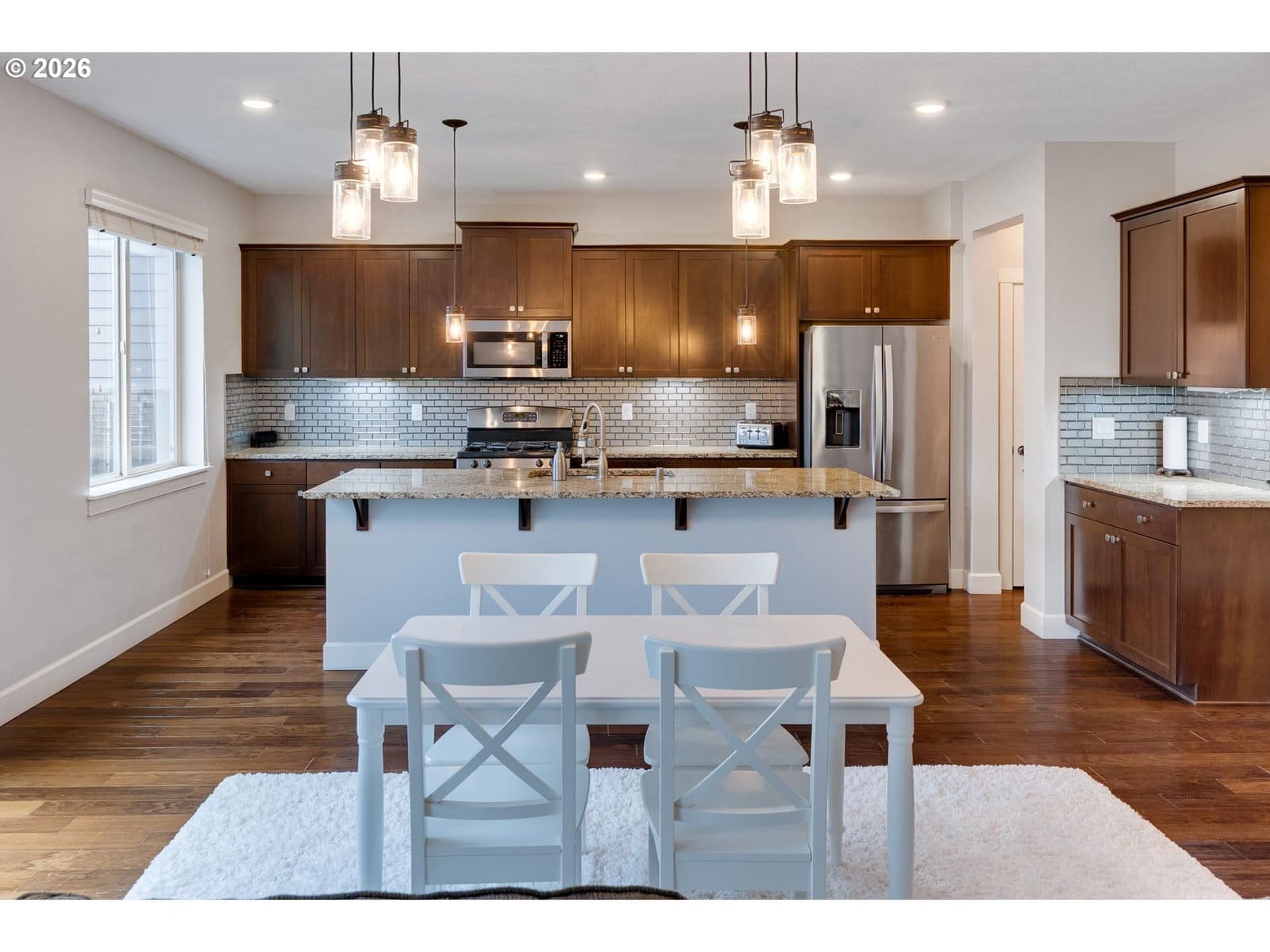 Beautifully maintained Craftsman-style home featuring open-concept living and thoughtful design throughout. The main level showcases stunning slab granite countertops in both the kitchen and dedicated office/workspace areas, complemented by stylish stainless-steel appliances, gas cooktop, double sink, and expansive island ideal for gathering, entertaining, and everyday living. The spacious living room is anchored by a cozy travertine-lined gas fireplace, creating a warm and inviting focal point while maintaining clean modern lines. Large windows and sliding doors bring in natural light and connect seamlessly to the fully fenced backyard. Perfect for relaxing, grilling, or entertaining. Upstairs, the versatile loft area offers incredible flexibility and has been virtually staged as a recreation and entertainment space, ideal for pool table, media lounge, playroom, or additional family gathering area. The generous primary suite includes a walk-in-closet and well-appointed bath, while additional bedrooms and/or bonus space provide flexibility for guests, hobbies, or work-from-home living. Located in a quiet, well maintained, and peaceful neighborhood within the desirable Greater Brush Prairie area, this home offers convenient access to local amenities while maintaining a serene residential feel. Nearby attractions include Alderbrook Park with trails and recreation, neighborhood parks, and easy access to Vancouver's shopping, dining. This move-in-ready home combines comfort, versatility, and lifestyle in a sought-after location.