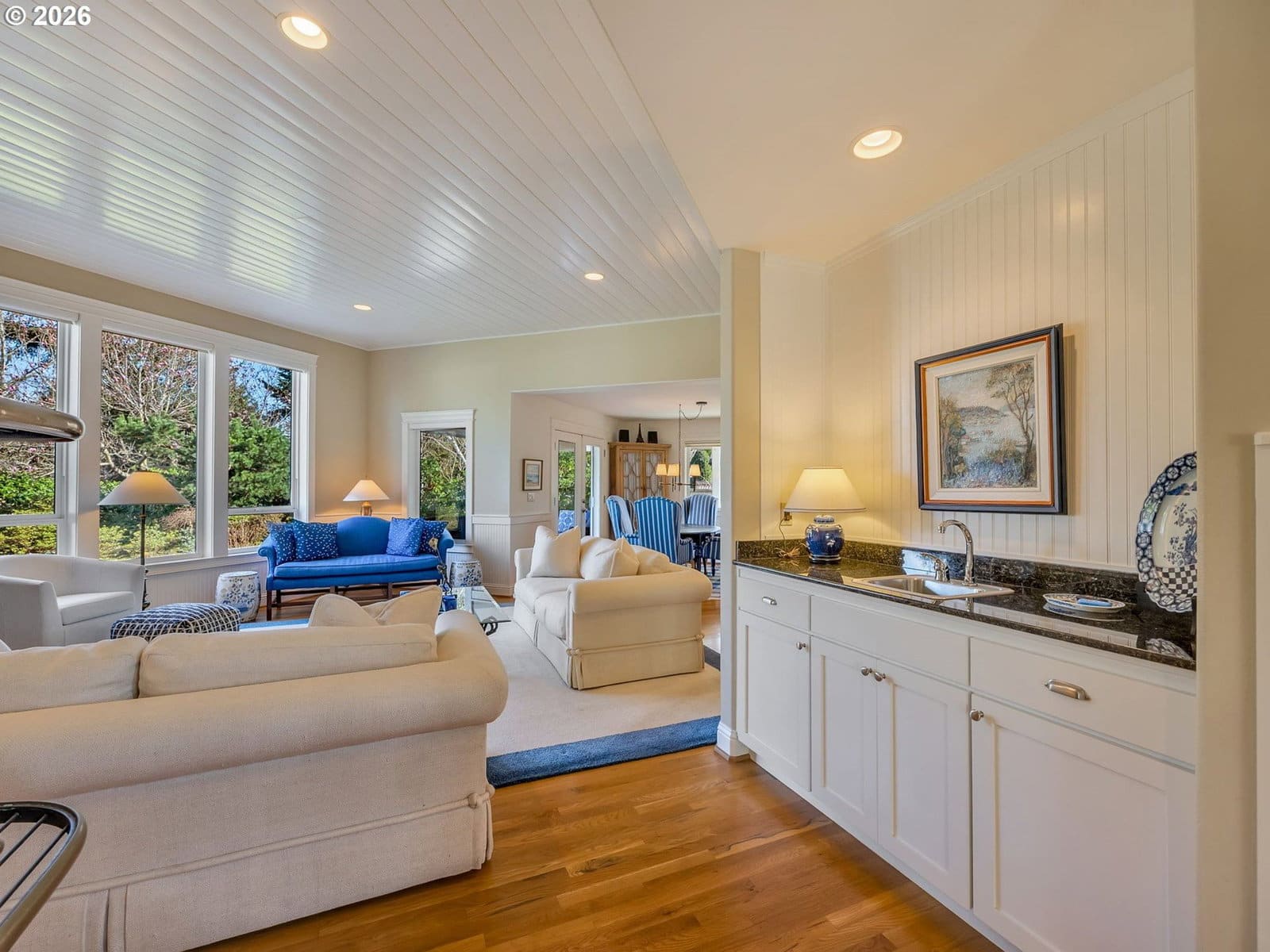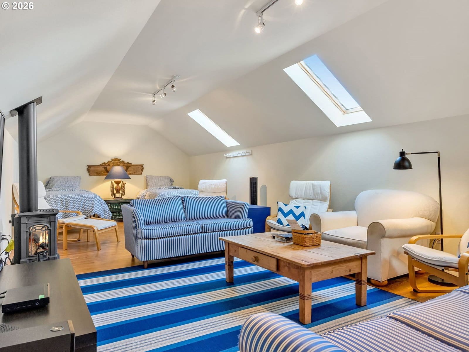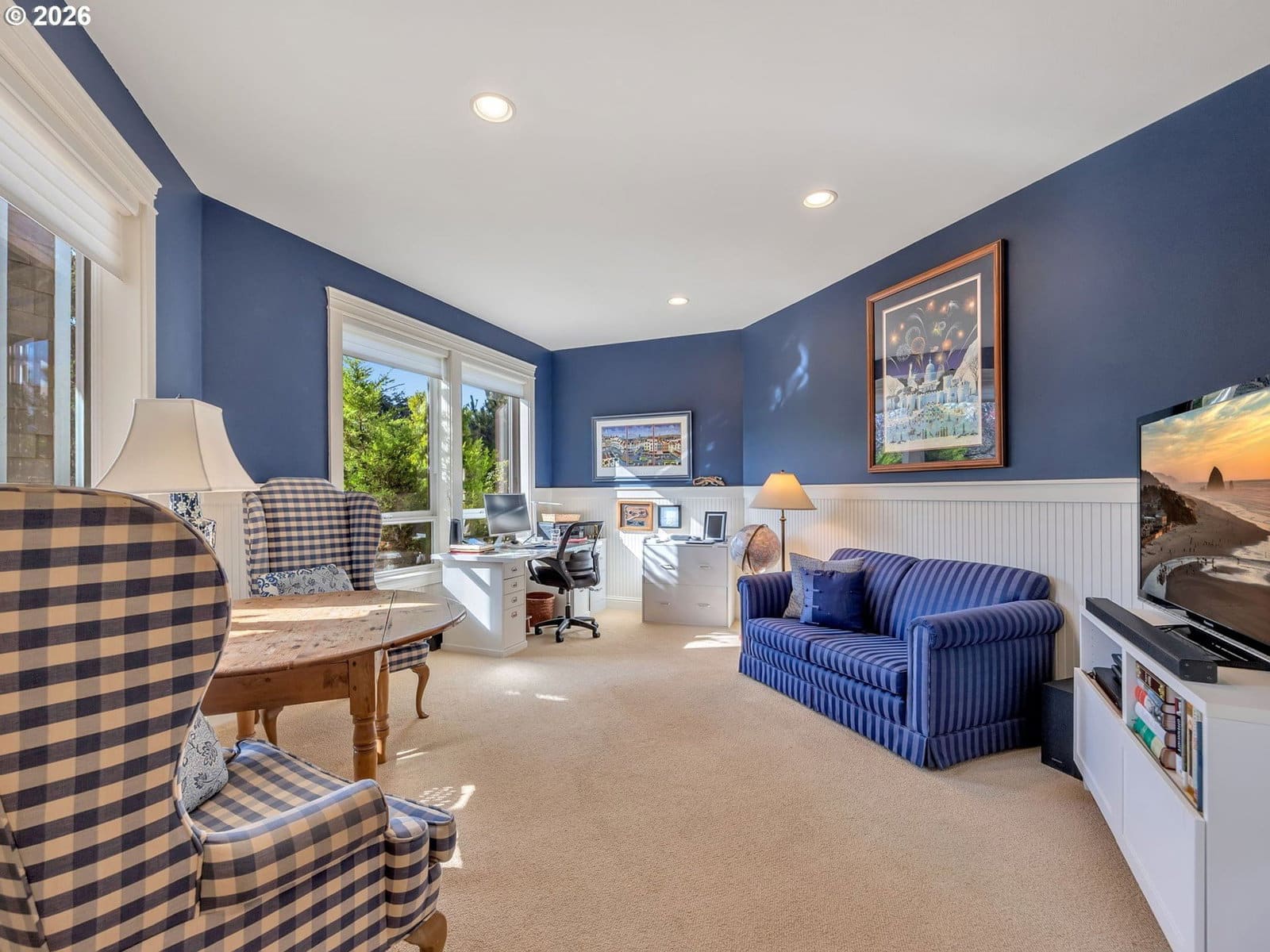 Well built and meticulously maintained, this exquisite Shamrock Pines home offers an outstanding floor plan designed for comfortable main-floor living and effortless entertaining. The primary suite on the main level features a cozy gas fireplace, a lovely sitting area overlooking the garden, and direct access to a quiet patio-an ideal retreat for relaxation. Light, airy rooms throughout the main floor create an inviting flow and abundant natural light. A sunny west facing Den is also favorite The second level is perfect for extended family or guests, with a spacious family room featuring built-in bookshelves-also makes a great library or office, and a spacious bonus room with a skylights and a gas-stove fireplace. A 1620 sq ft garage with 4 stalls provide ample room for craft or project stations and offers access to the 2nd floor bonus room. See home features document for much more.