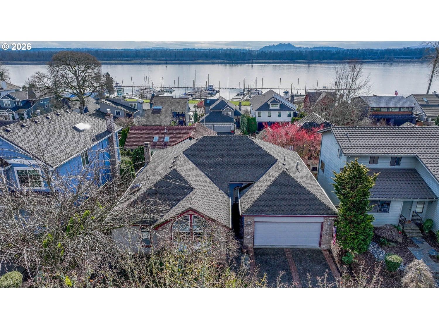 You found it. that rare single level view home nestled in Steamboat Landing, this View home offers access to two private beaches, scenic trails, a charming jetty for fires, a boat marina, and even gated RV parking. You’ll spend hours being mesmerized by the views of spectacular sunrises and sunsets, majestic Mt. Hood, wildlife viewing of eagles, blue herons, Canadian geese, ducks, deer, as well as the river traffic of tug boats, the River Queen, sail boats, and much more. Every day offers a new view, and every season offers visual interest. You can enjoy all this with a just a quick Stroll or just settle in on your own deck and enjoy your own river view. If it is too chilly just step inside and enjoy the view from you vaulted Livingroom, complete with your favorite art and books tucked away on flanking built-in bookcases that surround a cozy gas fireplace. Everything you need is in this 3 bed 2 bath ranch home, a vaulted primary to get lost in, ensuite with double vanities, linen closet, walk-in shower, soaking tub, skylight, complimented by granite and tile throughout. The vaulted living room will take you to a kitchen ready for you to create in, stainless, granite, gas, and a great view. A guest bedroom with a great view is just down the hall with a well-appointed 2nd bathroom. Gas Forced air, air-conditioning, sprinkler system, granite, stainless, tile, hardi plank, presidential roof and a view. Plus, there a second private deck, maybe a good place for a hot tub. There is also a ton of room for storage under the home, with easy access from the lower deck. Hurry before this one disappears.