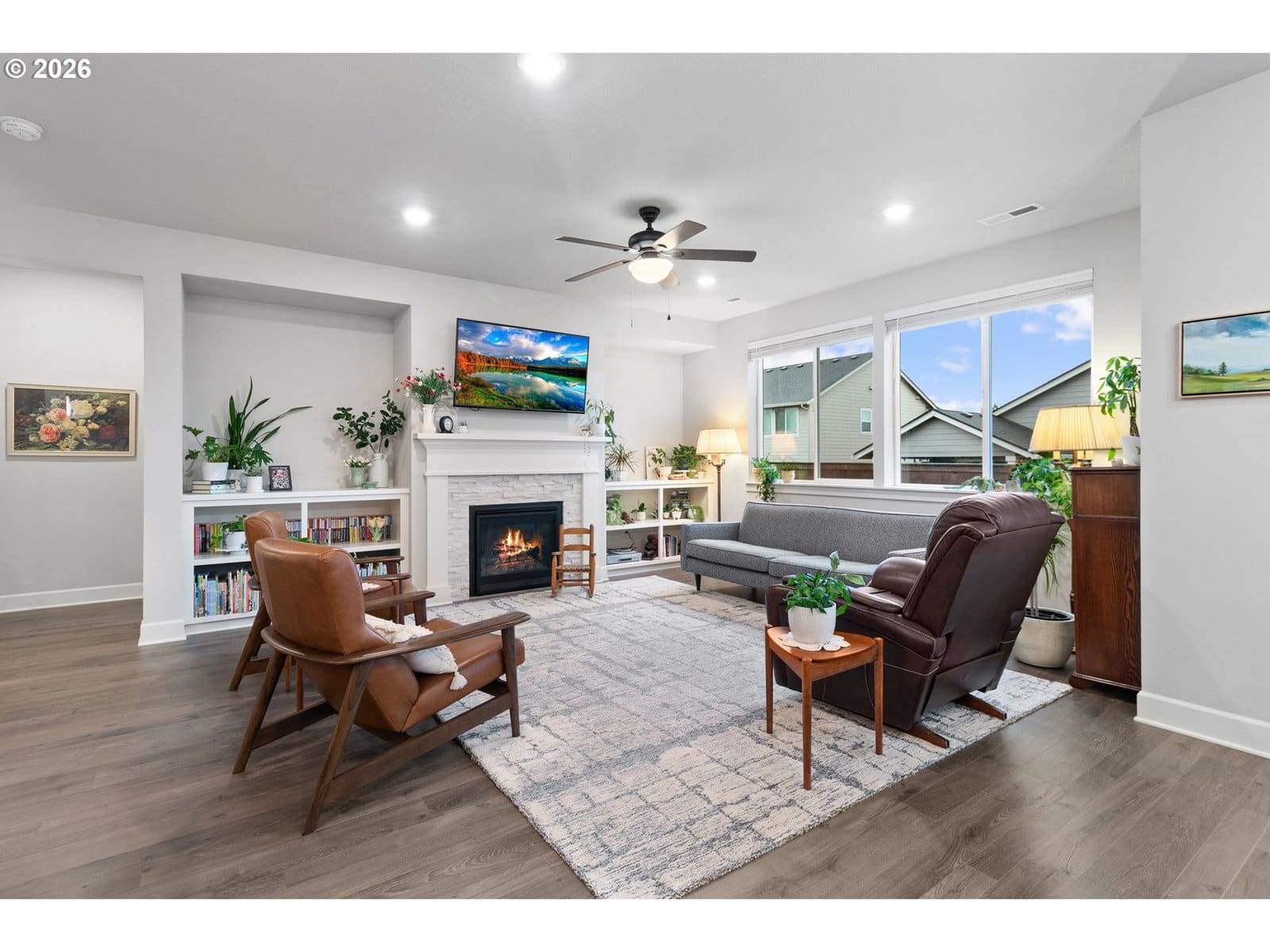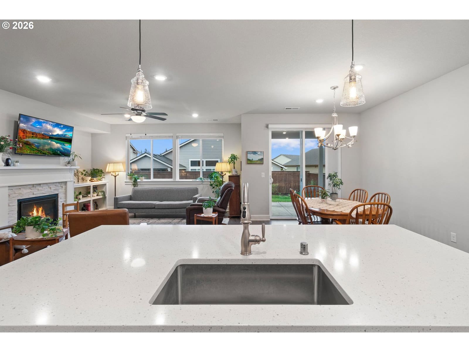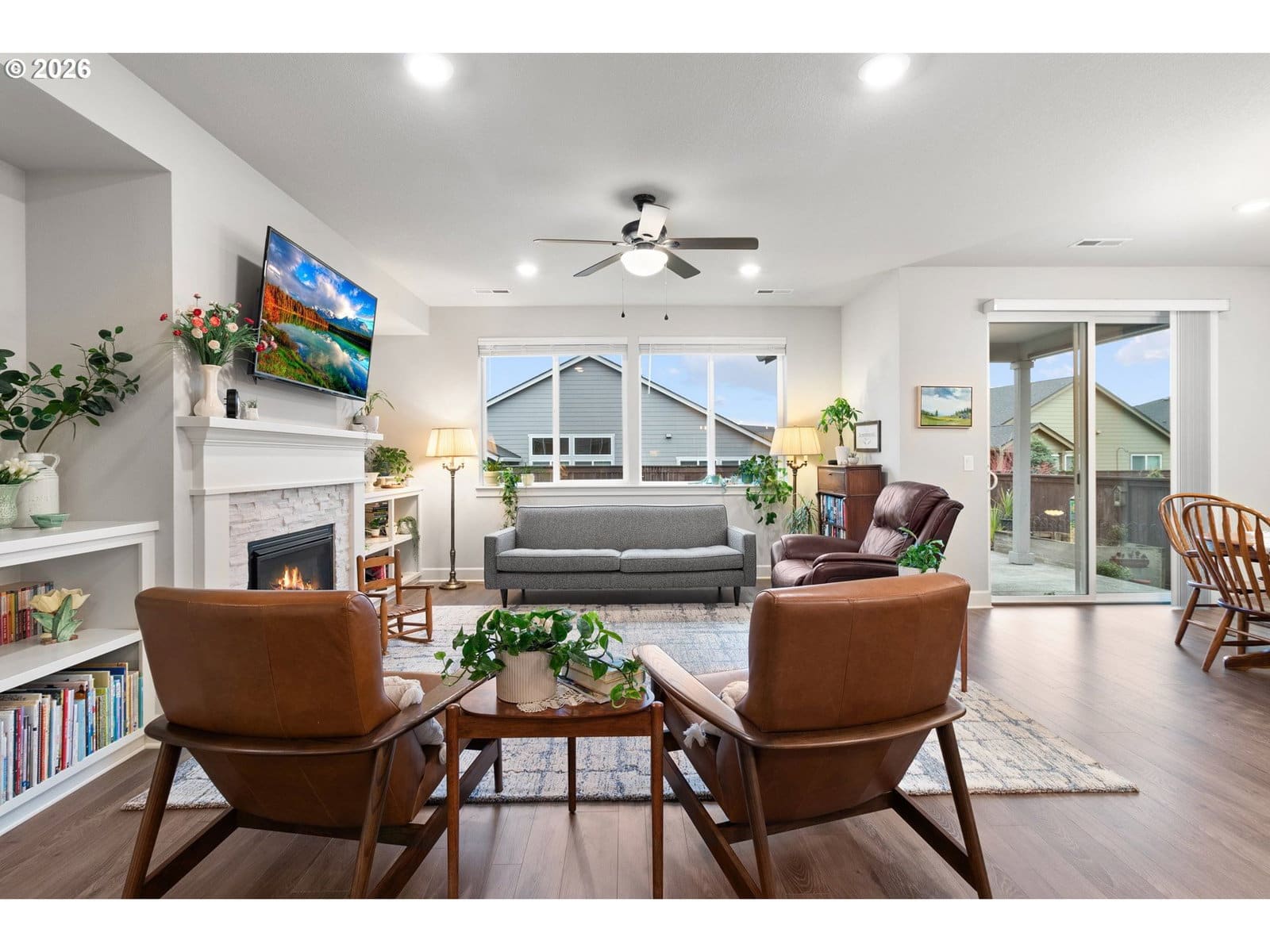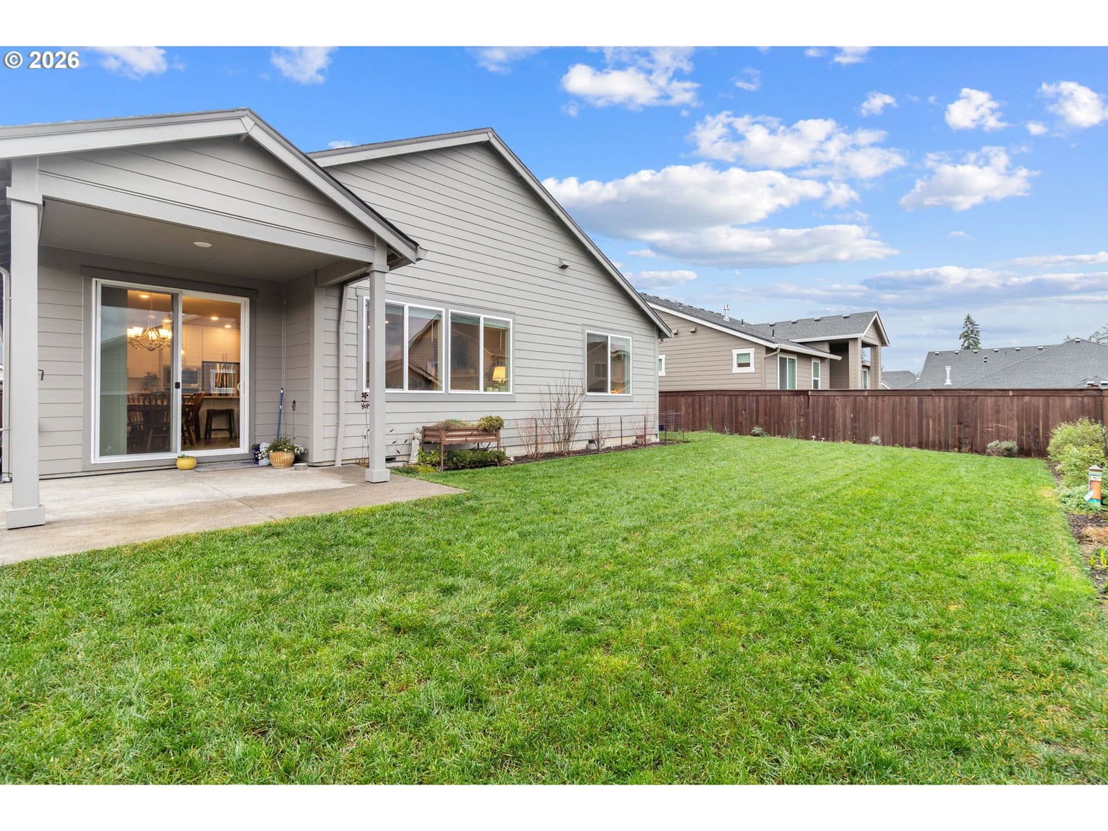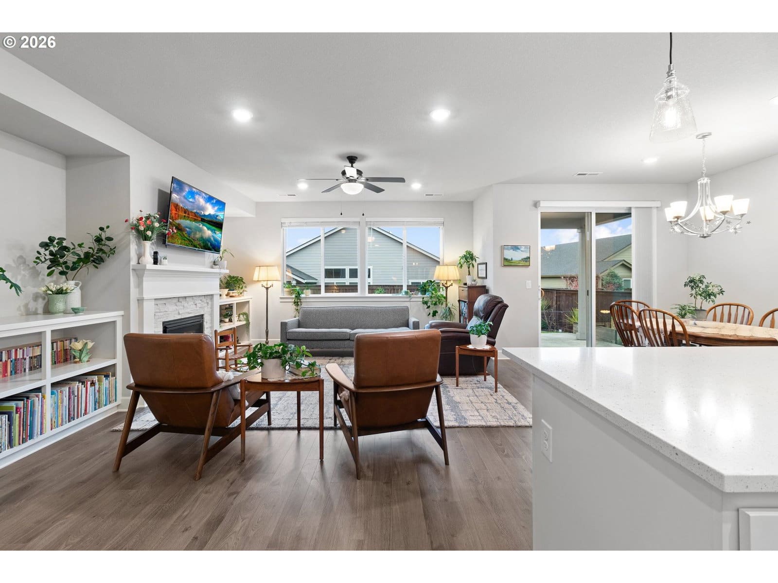 Pristine One-Level Living in Seven Wells Estates. Enjoy the perfect blend of modern luxury and effortless living in this beautifully maintained one-level home. The open concept blends the private 4 bedrooms with spacious hallways and shared living space. The large kitchen shines with quartz countertops, sleek stainless-steel appliances, and an ample sized island for meal prep. Every detail has been considered, from the custom wood shelving in the closets to the integrated home automation system that brings modern convenience to your fingertips. The living room, anchored by a cozy gas fireplace, flows seamlessly through the dining area to the extended covered back patio—your private oasis for year-round entertaining. The primary suite features tall windows allowing the southern light to beam in and a spa like bathroom with tiled shower, double vanity and soaking tub. Situated on a large, fully landscaped, and fenced lot, the backyard offers ample space for play or gardening, while the HOA takes care of the front yard maintenance. Plenty of parking and room for storage with the spacious 3-car garage. Stellar location with being just steps from walking trails and within the boundary for the new K-5 school being completed in 2026, this home offers a lifestyle of unmatched convenience and comfort. See our virtual tour links for more information.