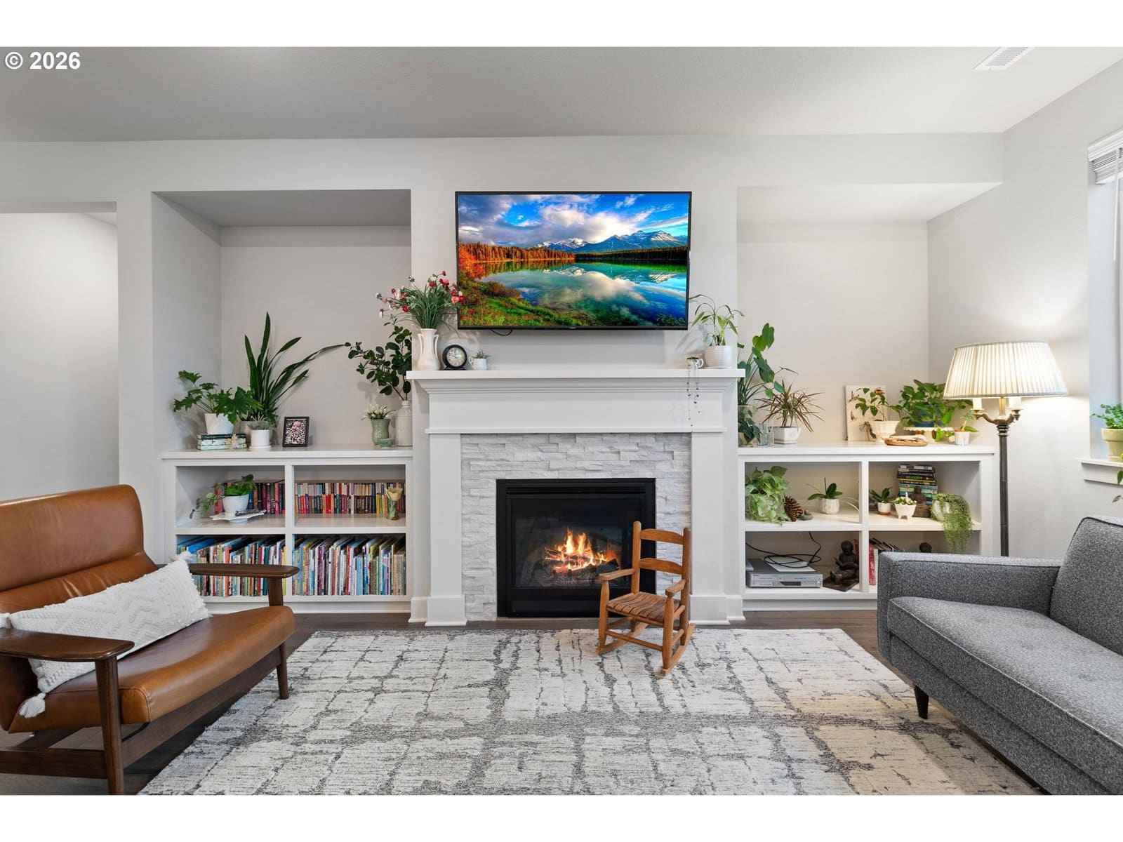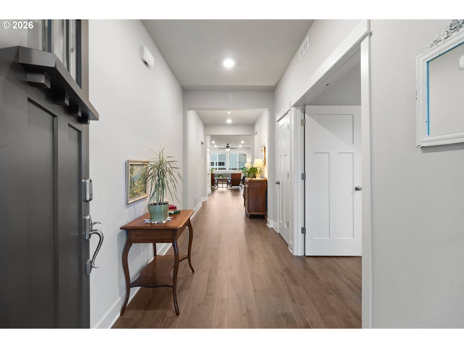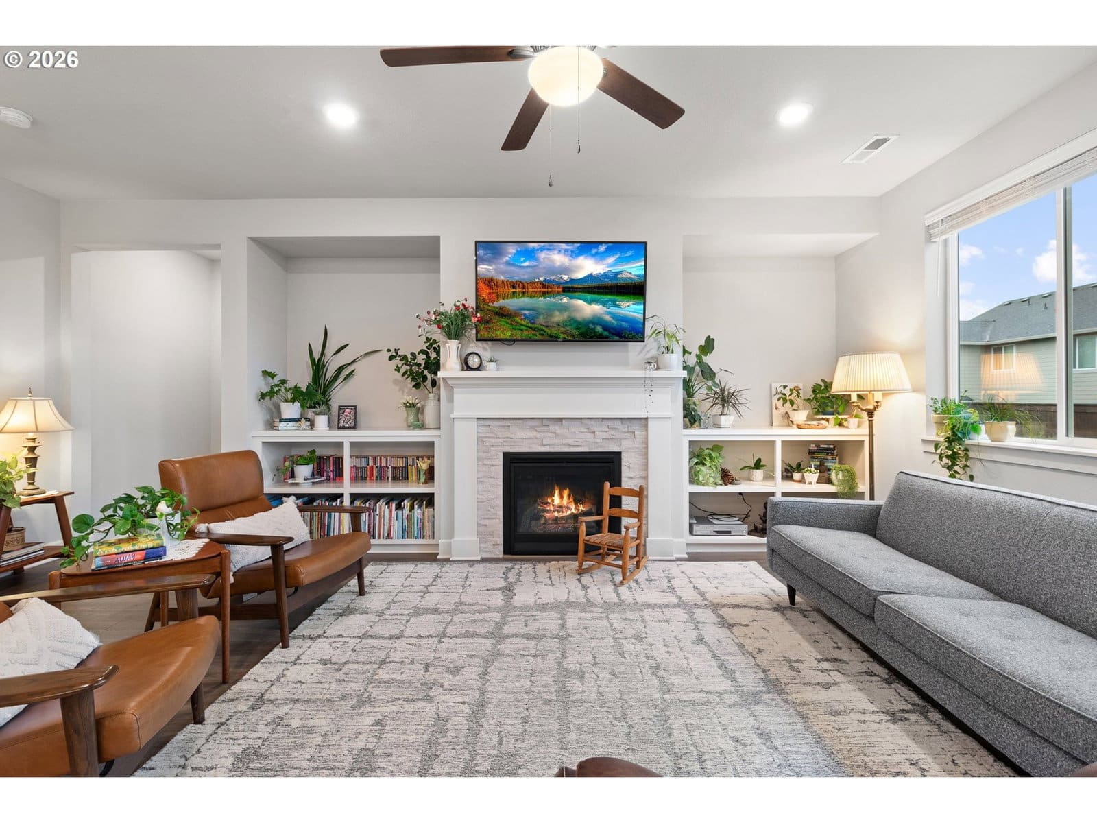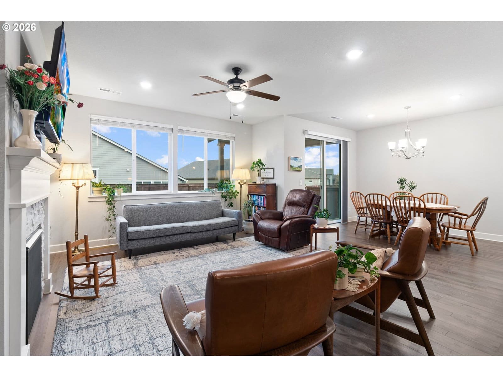 Pristine One-Level Living in Seven Wells Estates. Enjoy the perfect blend of modern luxury and effortless living in this beautifully maintained one-level home. The open concept blends the private 4 bedrooms with spacious hallways and shared living space. The large kitchen shines with quartz countertops, sleek stainless-steel appliances, and an ample sized island for meal prep. Every detail has been considered, from the custom wood shelving in the closets to the integrated home automation system that brings modern convenience to your fingertips. The living room, anchored by a cozy gas fireplace, flows seamlessly through the dining area to the extended covered back patio—your private oasis for year-round entertaining. The primary suite features tall windows allowing the southern light to beam in and a spa like bathroom with tiled shower, double vanity and soaking tub. Situated on a large, fully landscaped, and fenced lot, the backyard offers ample space for play or gardening, while the HOA takes care of the front yard maintenance. Plenty of parking and room for storage with the spacious 3-car garage. Stellar location with being just steps from walking trails and within the boundary for the new K-5 school being completed in 2026, this home offers a lifestyle of unmatched convenience and comfort. See our virtual tour links for more information.