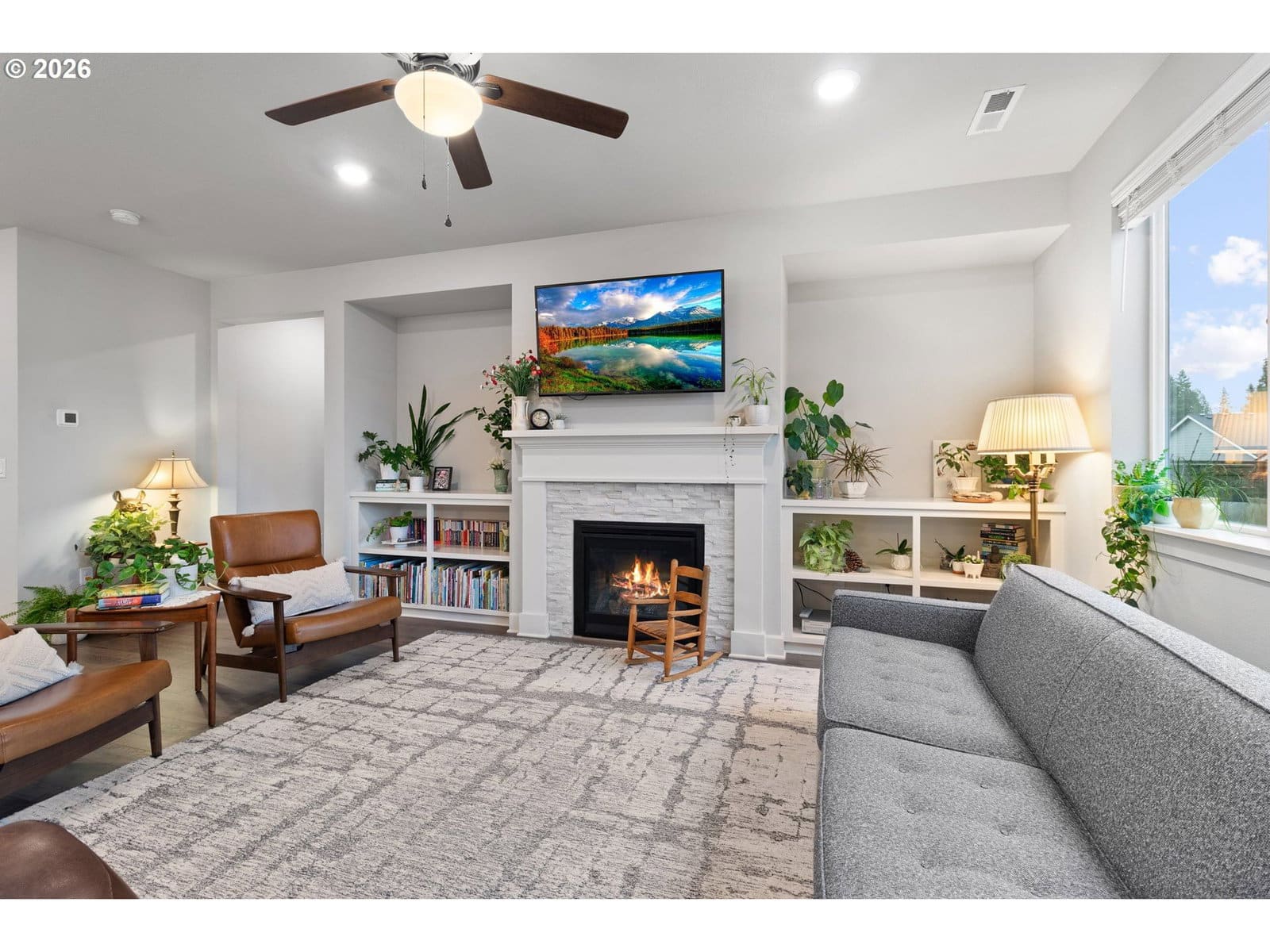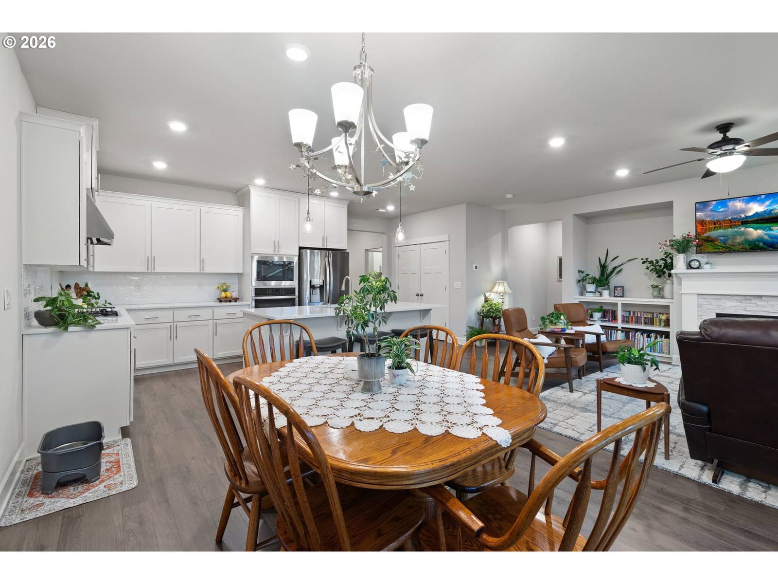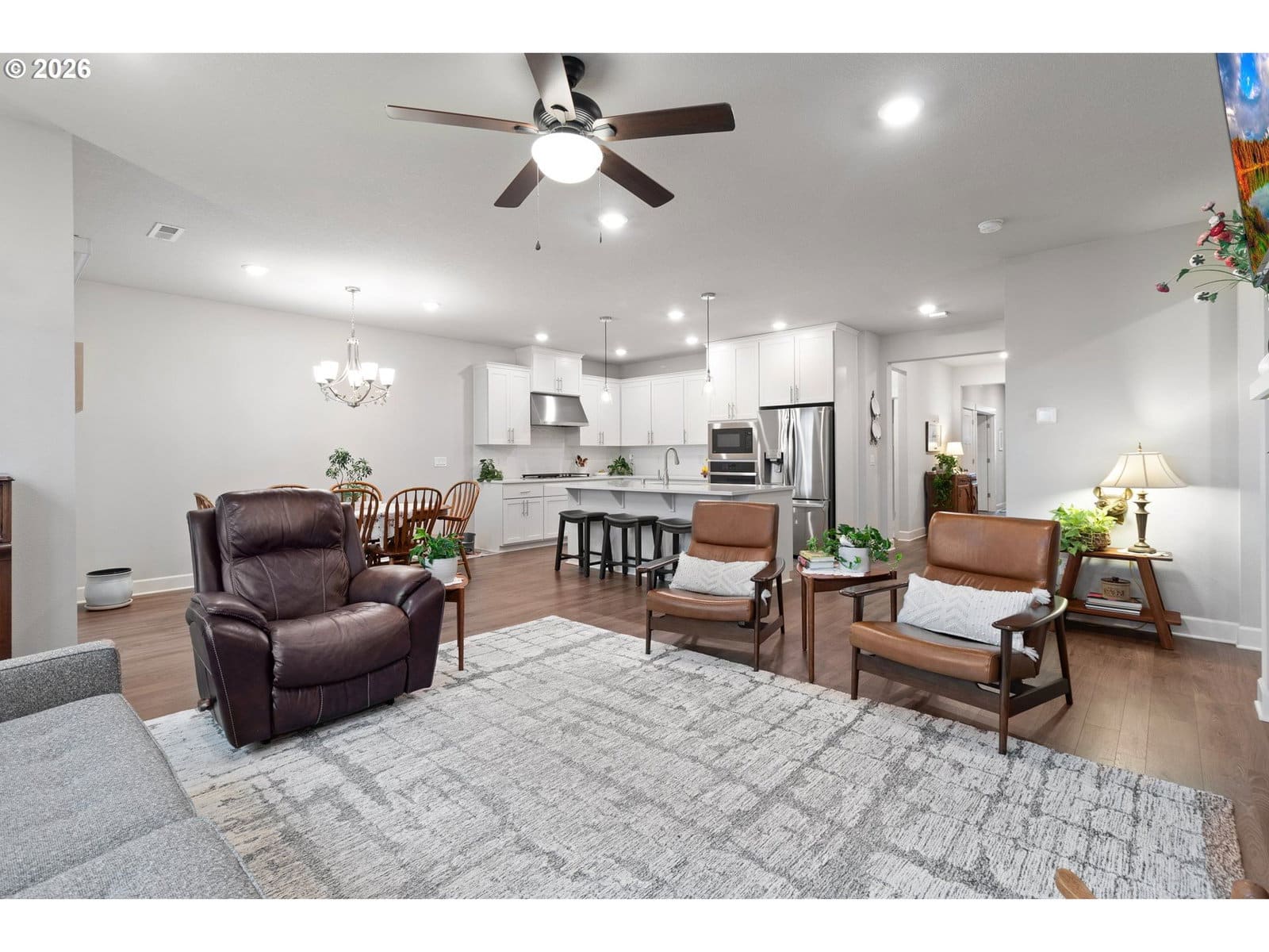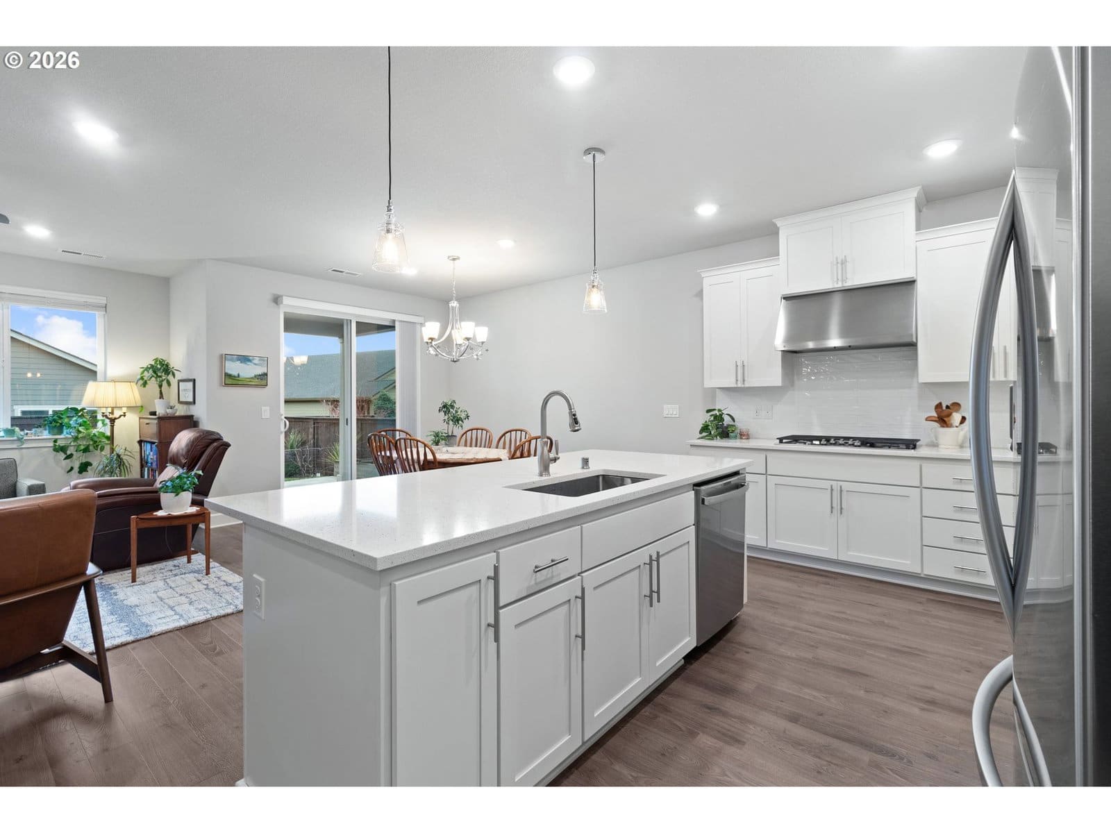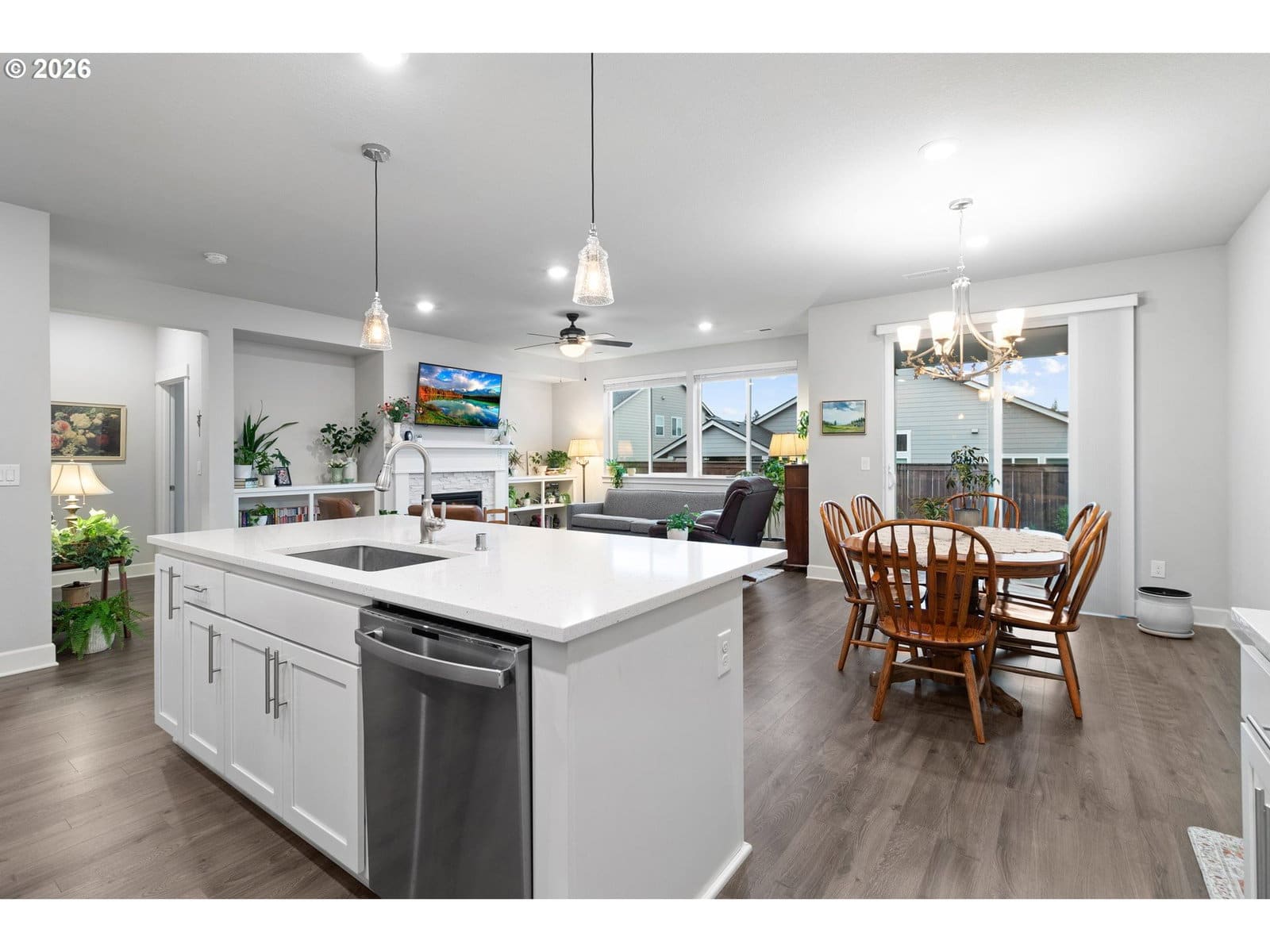 Pristine One-Level Living in Seven Wells Estates. Enjoy the perfect blend of modern luxury and effortless living in this beautifully maintained one-level home. The open concept blends the private 4 bedrooms with spacious hallways and shared living space. The large kitchen shines with quartz countertops, sleek stainless-steel appliances, and an ample sized island for meal prep. Every detail has been considered, from the custom wood shelving in the closets to the integrated home automation system that brings modern convenience to your fingertips. The living room, anchored by a cozy gas fireplace, flows seamlessly through the dining area to the extended covered back patio—your private oasis for year-round entertaining. The primary suite features tall windows allowing the southern light to beam in and a spa like bathroom with tiled shower, double vanity and soaking tub. Situated on a large, fully landscaped, and fenced lot, the backyard offers ample space for play or gardening, while the HOA takes care of the front yard maintenance. Plenty of parking and room for storage with the spacious 3-car garage. Stellar location with being just steps from walking trails and within the boundary for the new K-5 school being completed in 2026, this home offers a lifestyle of unmatched convenience and comfort. See our virtual tour links for more information.