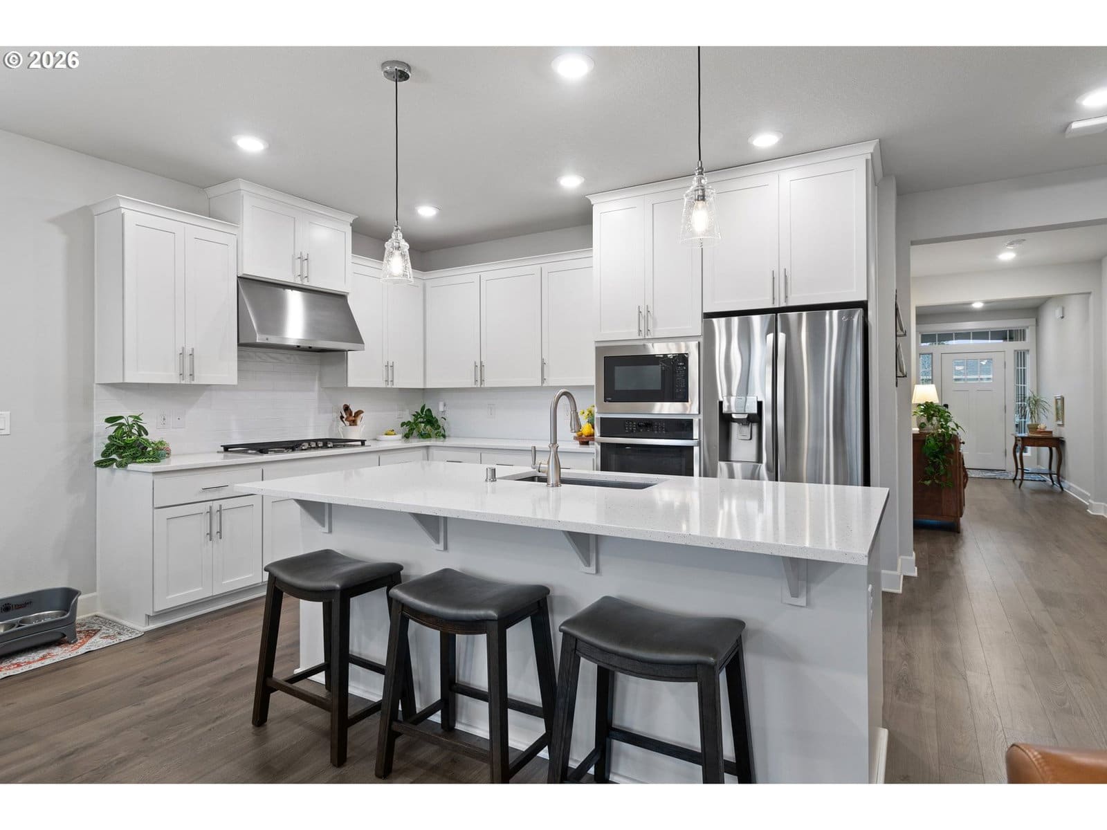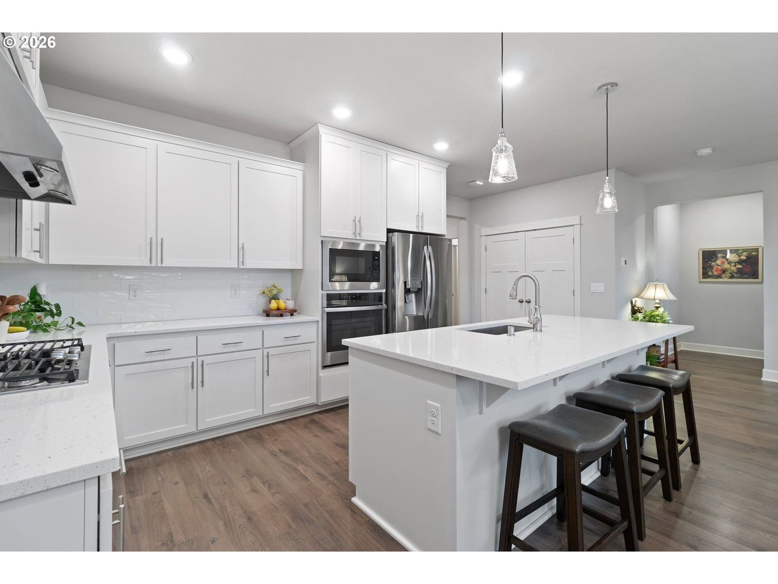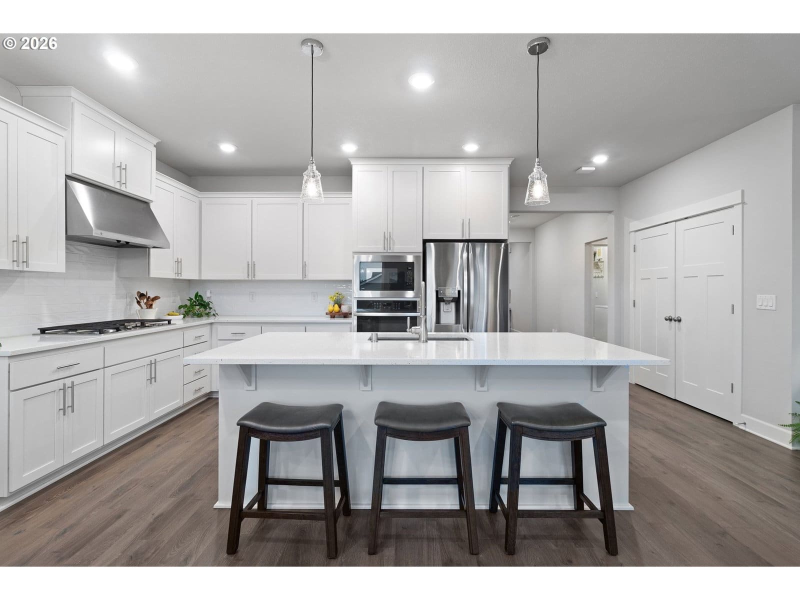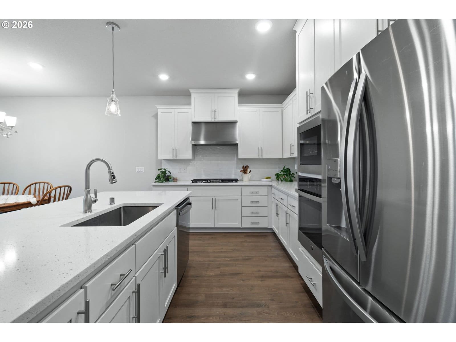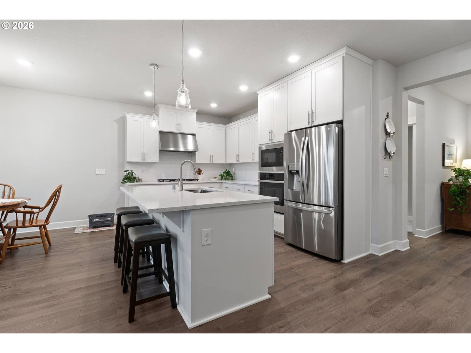 Pristine One-Level Living in Seven Wells Estates. Enjoy the perfect blend of modern luxury and effortless living in this beautifully maintained one-level home. The open concept blends the private 4 bedrooms with spacious hallways and shared living space. The large kitchen shines with quartz countertops, sleek stainless-steel appliances, and an ample sized island for meal prep. Every detail has been considered, from the custom wood shelving in the closets to the integrated home automation system that brings modern convenience to your fingertips. The living room, anchored by a cozy gas fireplace, flows seamlessly through the dining area to the extended covered back patio—your private oasis for year-round entertaining. The primary suite features tall windows allowing the southern light to beam in and a spa like bathroom with tiled shower, double vanity and soaking tub. Situated on a large, fully landscaped, and fenced lot, the backyard offers ample space for play or gardening, while the HOA takes care of the front yard maintenance. Plenty of parking and room for storage with the spacious 3-car garage. Stellar location with being just steps from walking trails and within the boundary for the new K-5 school being completed in 2026, this home offers a lifestyle of unmatched convenience and comfort. See our virtual tour links for more information.