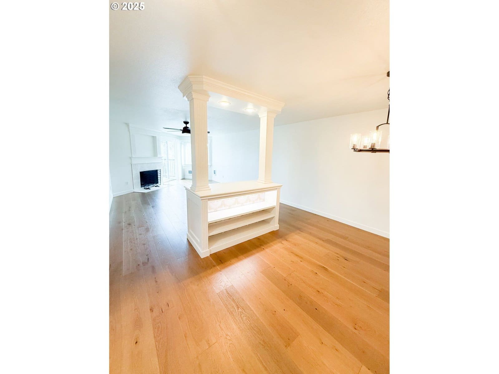 Beautifully remodeled 2BD/2BA top-floor condo in the desirable Tualatin Greens community. This stylish home features new hardwood floors, fresh interior paint, elegant moldings, designer lighting, blackout window coverings, and a modern backsplash. The spacious open layout includes a cozy wood-burning fireplace and custom buffet shelving with accent lighting. Enjoy treetop views from your private covered balcony overlooking the pool, hot tub, and greenery—plus bonus exterior storage. The primary suite offers a renovated ensuite bath and walk-in closet. Second bedroom includes a bold accent wall and generous storage. In-unit laundry with built-in shelving, secure building entry, reserved parking, and guest spaces. HOA covers water, sewer, and garbage. Minutes to Nyberg Woods, Bridgeport Village, I-5, parks, and trails. A perfect blend of comfort, convenience, and updated design! Come check it out today!