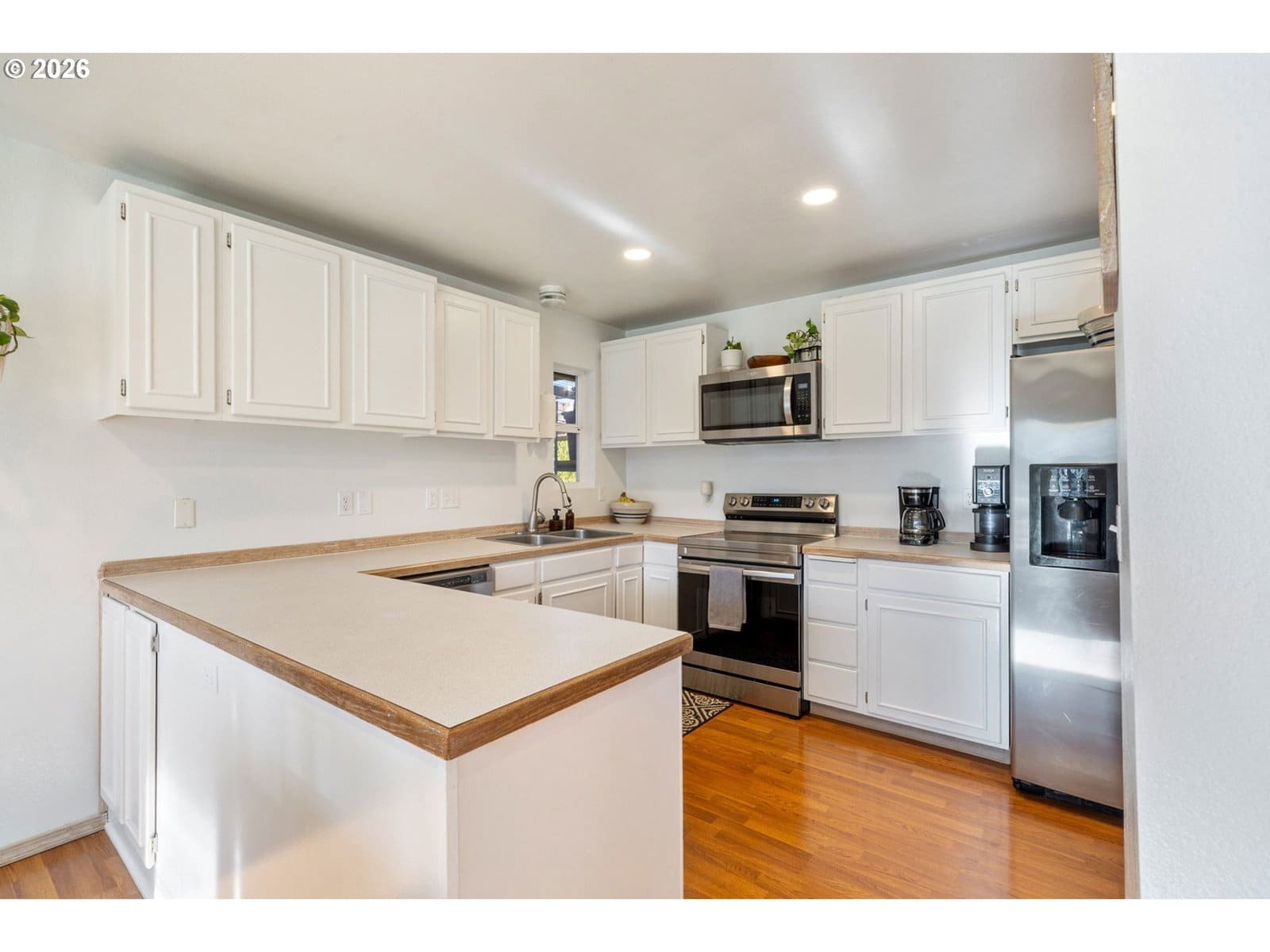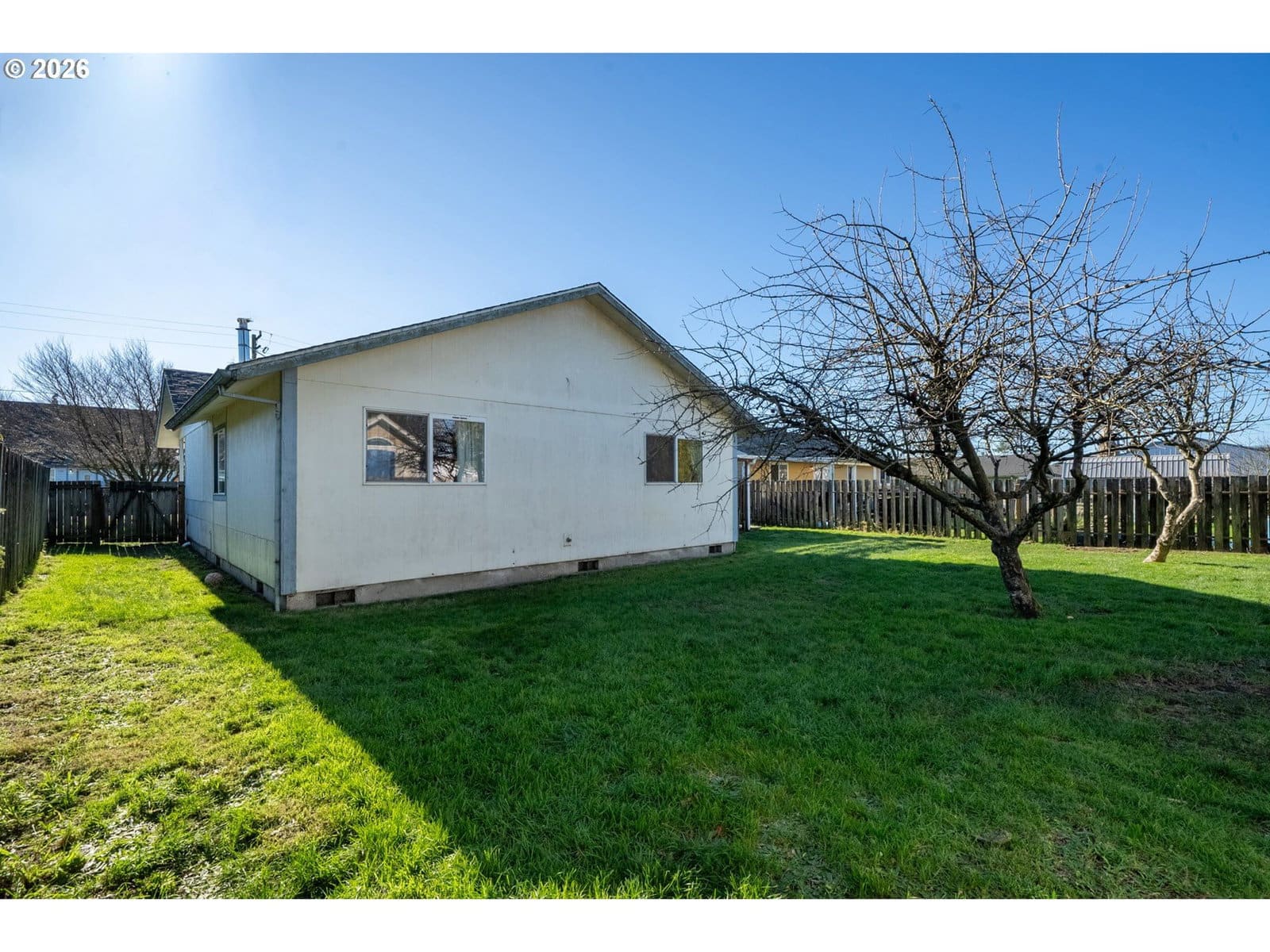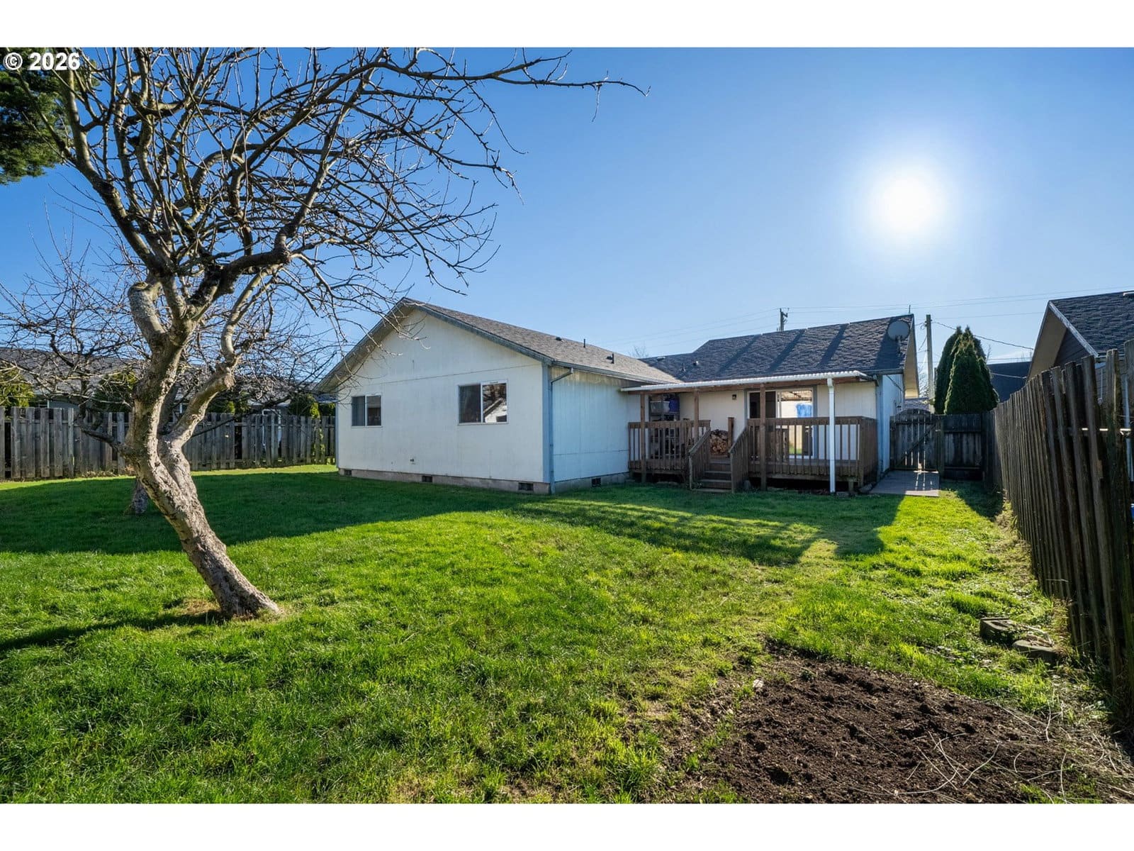Priced to sell & move-in ready! Perfect for a first time buyer or those looking to downsize, this one level low maintenance home offers unique flair beyond the cookie cutter norm. Clean, modern, and welcoming, it features a charming covered front porch that leads into a bright living room with high angled ceilings and a cozy wood stove. Down the hall are two spacious bedrooms & an updated full bath, plus a newly painted primary bedroom complete with it's own bath, walk-in shower and multiple closets. The over-sized kitchen boasts white cabinetry, a neutral color palette, stainless appliances and an adjoining dining area - ideal for everyday living & entertaining. Versatile family room provides flexibility as an office or potential fourth bedroom, with access to a covered deck & private fenced back yard. Outdoor features include raised garden beds, fruit trees, & storage shed perfect for gardening & relaxing. Tucked in a quiet neighborhood within city limits, the home is close to schools & amenities. Additional highlights include a two-car garage, attic storage, trailer or RV parking, and a professionally encapsulated crawl space (approximately $30k investment) can be used for extra storage. A truly beautiful home with thoughtful updates and plenty of room to grow!
