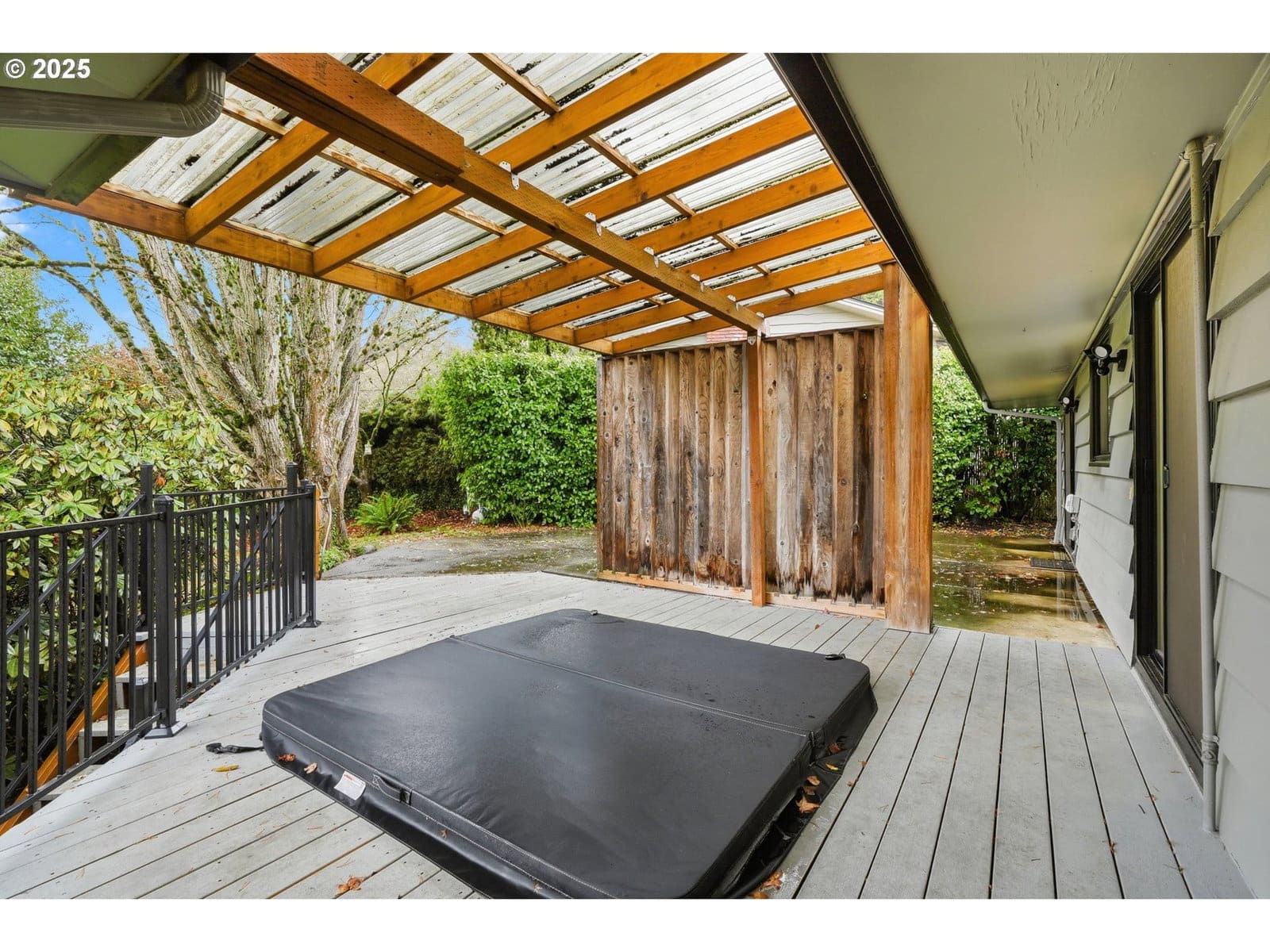 Timeless mid-century design, thoughtfully updated and move-in ready... this one checks every box. Upstairs, all three bedrooms sit on the same level - including a spacious primary suite with a sliding door that opens to a covered deck and built-in hot tub, perfect for unwinding under the stars. The main living area feels bright and inviting, with original wood floors adding warmth and charm, complemented by contemporary finishes. The kitchen and all three bathrooms have been remodeled in the last two years. Downstairs, a large flex room could be used as a home office, gym, media room, creative studio, or guest space. Additionally, enjoy the convenience of a 3rd full bathroom downstairs. Major systems give peace of mind, too: a newer furnace, AC, water heater, and electrical panel. Modern curb appeal and a practical floor plan make this home an easy fit for a variety of lifestyles, from remote-work living to multigenerational needs. A rare mix of versatility, comfort, and style... come see how well this home can work for you.