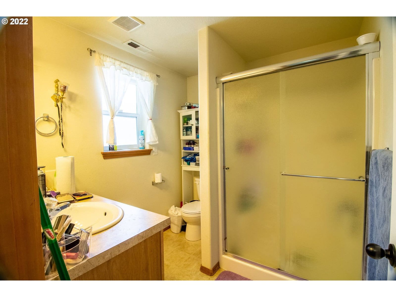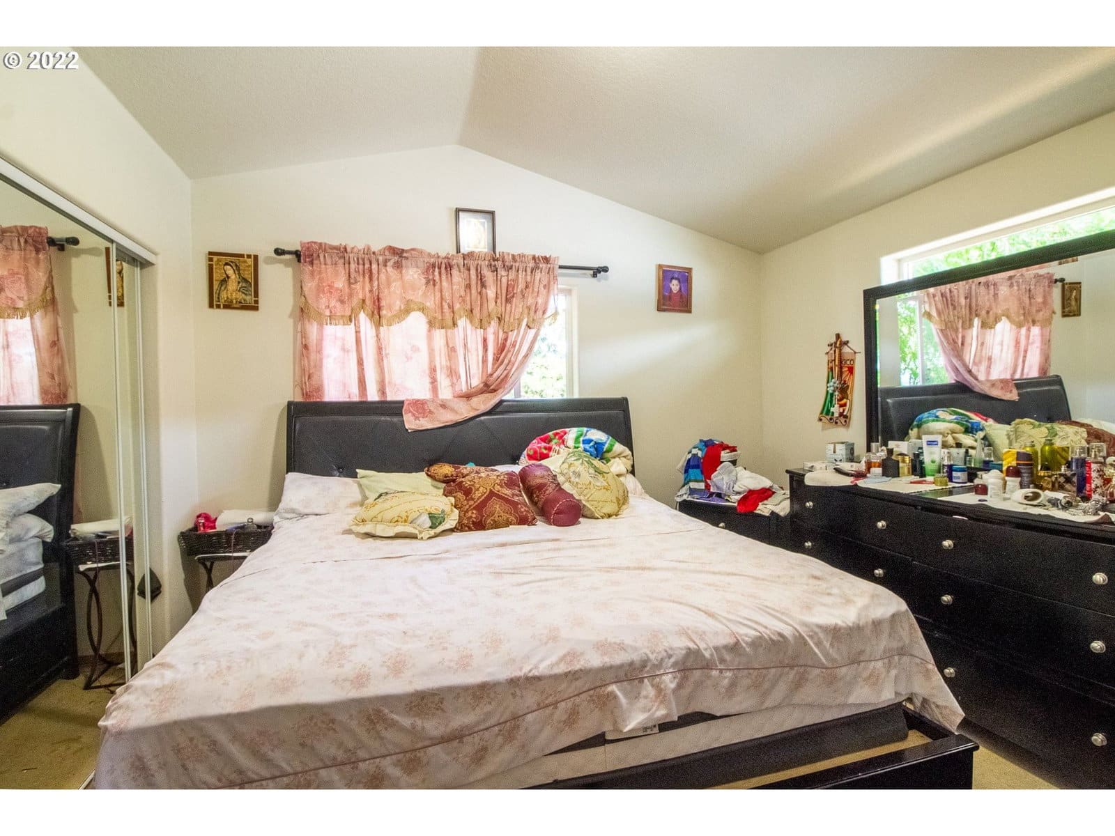 Great 3 bedroom, 2.5 bathroom home in need of some cosmetic TLC. Interior features open floor plan with laminate flooring in living room, fireplace & slider to patio. Kitchen features SS appliances with included range, fridge, dishwasher, disposal, and lots of kitchen storage/cabinets. Primary suite with vaulted ceilings, large closet and bathroom. Laundry room upstairs with shelf for storage. Fenced exterior with patio. A great starter home or investment opportunity! [Home Energy Score = 7. HES Report at https://rpt.greenbuildingregistry.com/hes/OR10204344]
