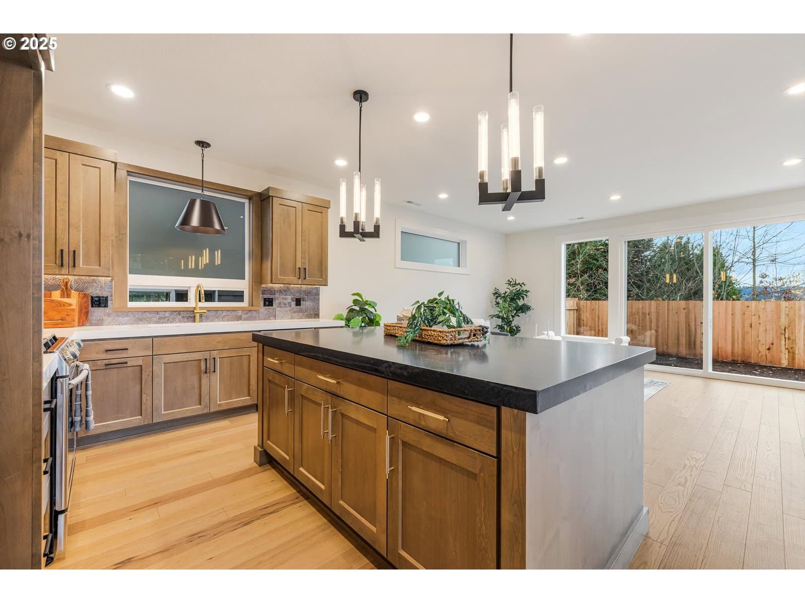 Experience elevated modern living in this custom new-construction home Exceptional Homes by Andre, designed with luxurious finishes & thoughtful details throughout. The open-concept layout features 9' ceilings, engineered hardwoods, abundant natural light & custom accent lighting. A stylish living area showcases accent paneling, built-ins, & designer fireplace tile, while the innovative built-in entry desk maximizes function & adds a refined touch. The gourmet kitchen offers custom cabinetry, high-end tile selections, a spacious island, an oversized undermount sink with a statement gold-tone faucet, & a pantry with built-in shelving. Floor-to-ceiling windows frame the dining area for a bright, inviting space.The vaulted primary suite includes a large walk-in closet with premium built-ins & a luxurious bath with dual sinks, a fully tiled walk-in shower with bench & dual shower heads. Upstairs, all bedrooms feature vaulted ceilings, complemented by a beautifully finished secondary bath with granite counters, tile flooring, & a modern tub/shower. Additional amenities include a laundry room with built-in shelving & privacy windows throughout.Prime location just minutes to Downtown Milwaukie, Sellwood, New Seasons, local dining, the Milwaukie Farmers Market, parks, trails, recreation, & Providence Milwaukie Hospital—offering the perfect blend of convenience & exceptional design, and the freedom of living without HOA limitations.