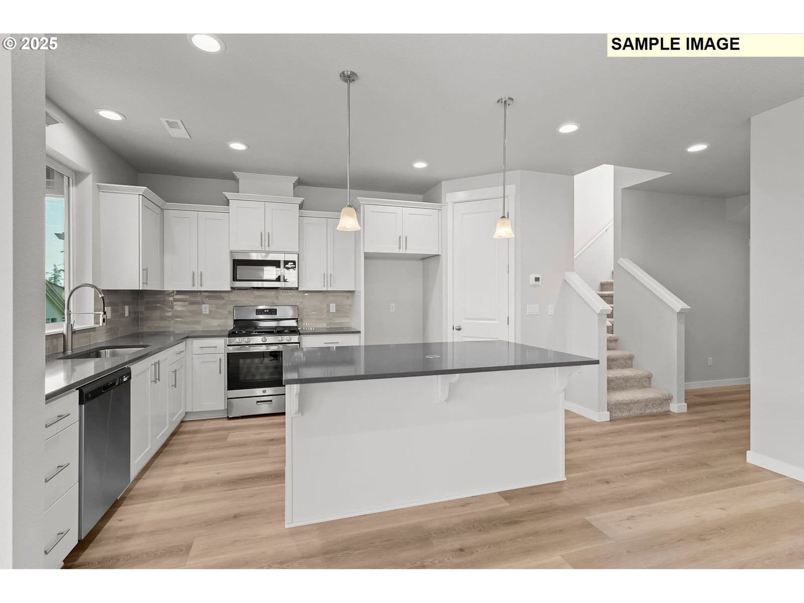 Move In Ready! Discover modern elegance in Faraday Hills, Estacada! This new 2,038 sq. ft. Craftsman home offers 3 bedrooms, 2.5 baths, and a 2-car garage. The open great room features an electric fireplace, 9 ft ceilings, and laminate flooring, flowing into a kitchen with quartz countertops, a large island, and stainless steel appliances. The primary suite boasts a walk-in closet and double sinks. Enjoy a fully fenced lot, front yard irrigation. Energy-efficient heat pump and A/C included. Sample photos, finished with vary. Come visit us at our sales office at 3675 NE Claire Rd. Open Daily 10am to 5pm.