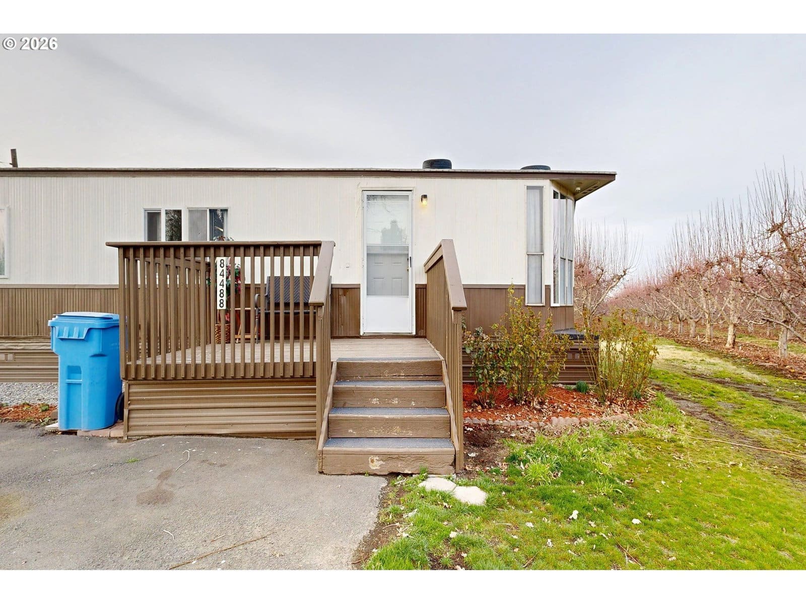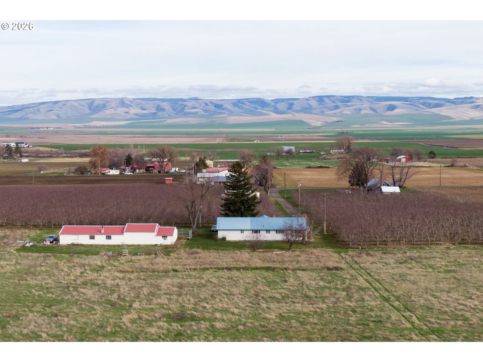 Peaceful country living on 14.77 acres just outside Milton-Freewater. This ranch-style home offers 3 bedrooms and 2 bathrooms with a functional, single-level layout. The property also includes a separate 2 bedroom, 2 bathroom manufactured home—ideal for multi-generational living, guest quarters, or rental potential. Multiple outbuildings provide ample space for equipment, livestock, storage, or hobbies. Enjoy wide open views, room to roam, and endless possibilities for rural living while still being conveniently located. Walla Walla River Irrigation District, cost is $1,250/ year. Current orchardist has three year lease and is paying half. Pump for orchard is on neighbors property.