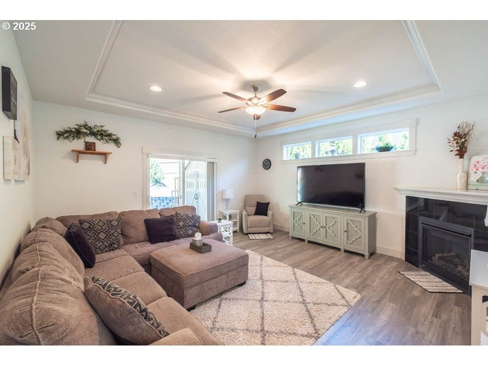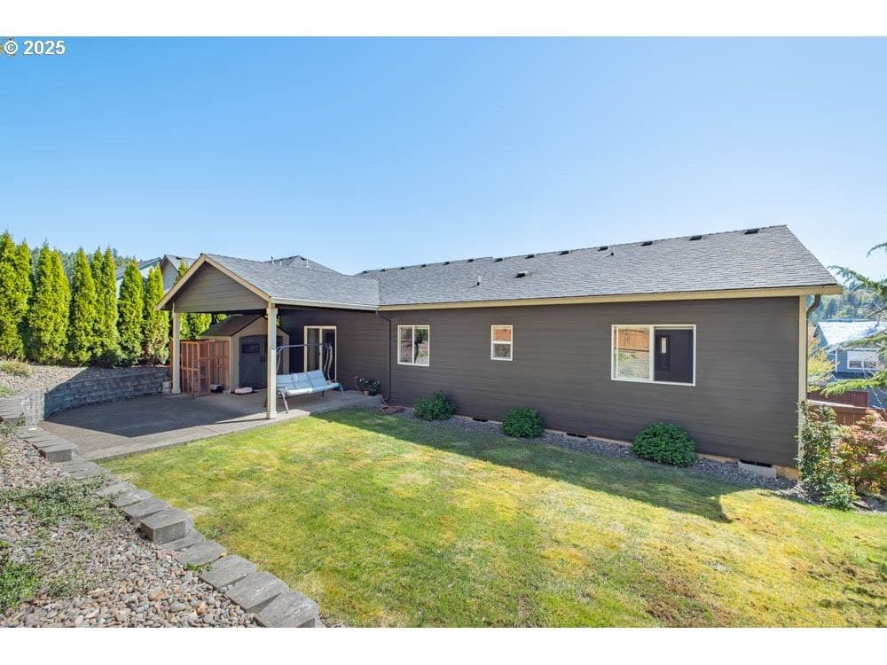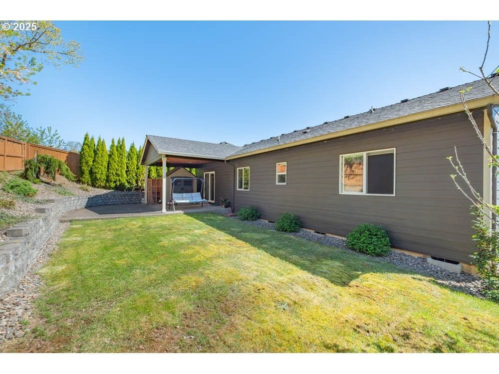 Custom built home in beautiful Silverton, Oregon. A beautiful home in prime location of Silverton, Timber Park community. Silverton is located between Portland and Salem, with a perfect blend of location, conveniences, and community. This home is a must see and will not be disappointed with its many custom features and amenities. Pride of ownership greets you from the moment you walk through the door. Walking in you will immediately notice the abundance of natural lighting, beautiful laminate floors and high ceilings. The large kitchen is a cook’s delight. Gourmet kitchen with large quartz breakfast bar, glass tile backsplash, undermount farm kitchen sink, crown molding cabinets, pendent lighting, and stainless-steel appliances. Appliances include: built in dishwasher, built in microwave, free standing range, and disposal. Living room features a coffered ceiling with fan, gas fireplace with mantle and access to lush backyard with oversized covered patio. Primary suite is spectacular, has walk in closet, spacious private bathroom, double vanities, and walk in shower. In addition to the Owner’s suite, there are 3 other large bedrooms with wall to wall carpeting and spacious closet storage. Lush established landscaping front and back. Low maintenance fenced backyard included sprinkles, apple trees and gardening space. Front of home has a large sitting deck, great for that morning cup of coffee and talk with neighbors as they walk by. Oversized 2 car garage with storage, and RV parking. Close to neighborhood park, walking trails and close drive Silver Falls and Silverton Reservoir.