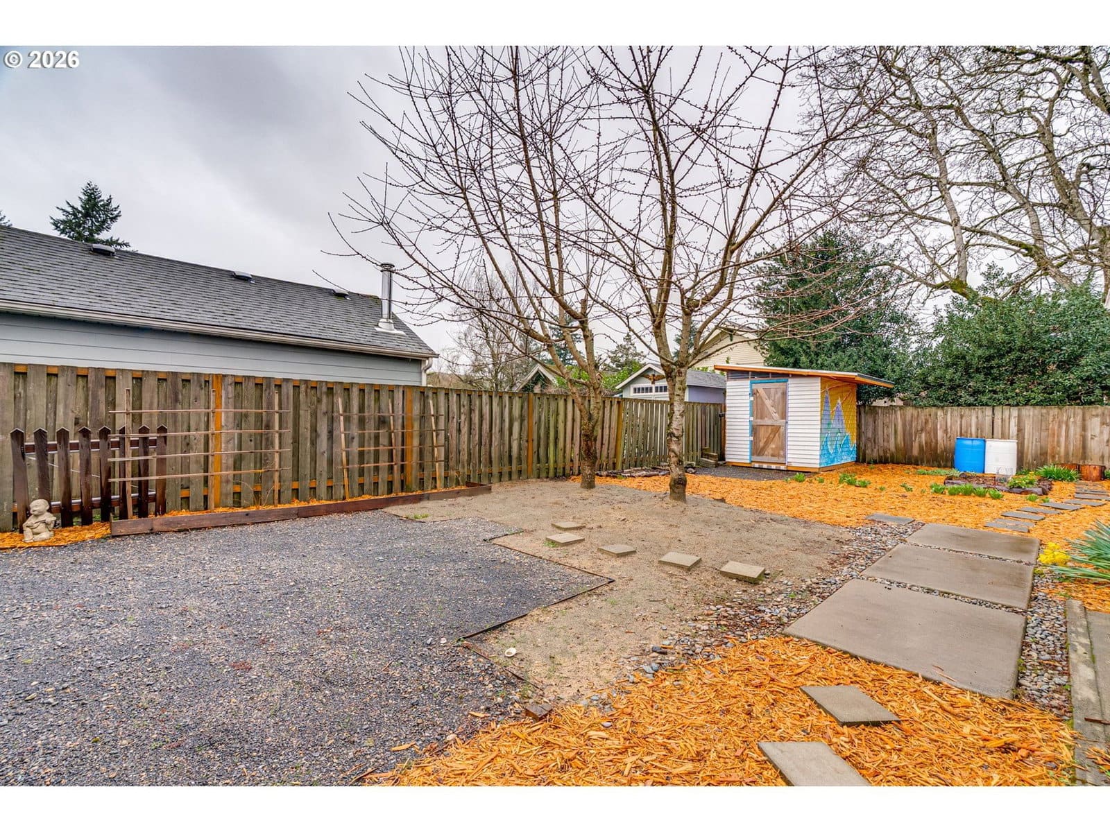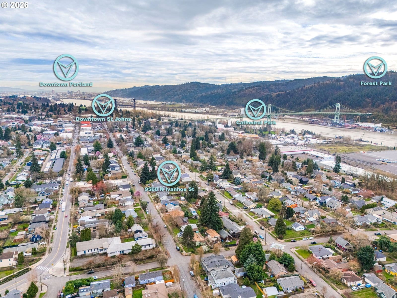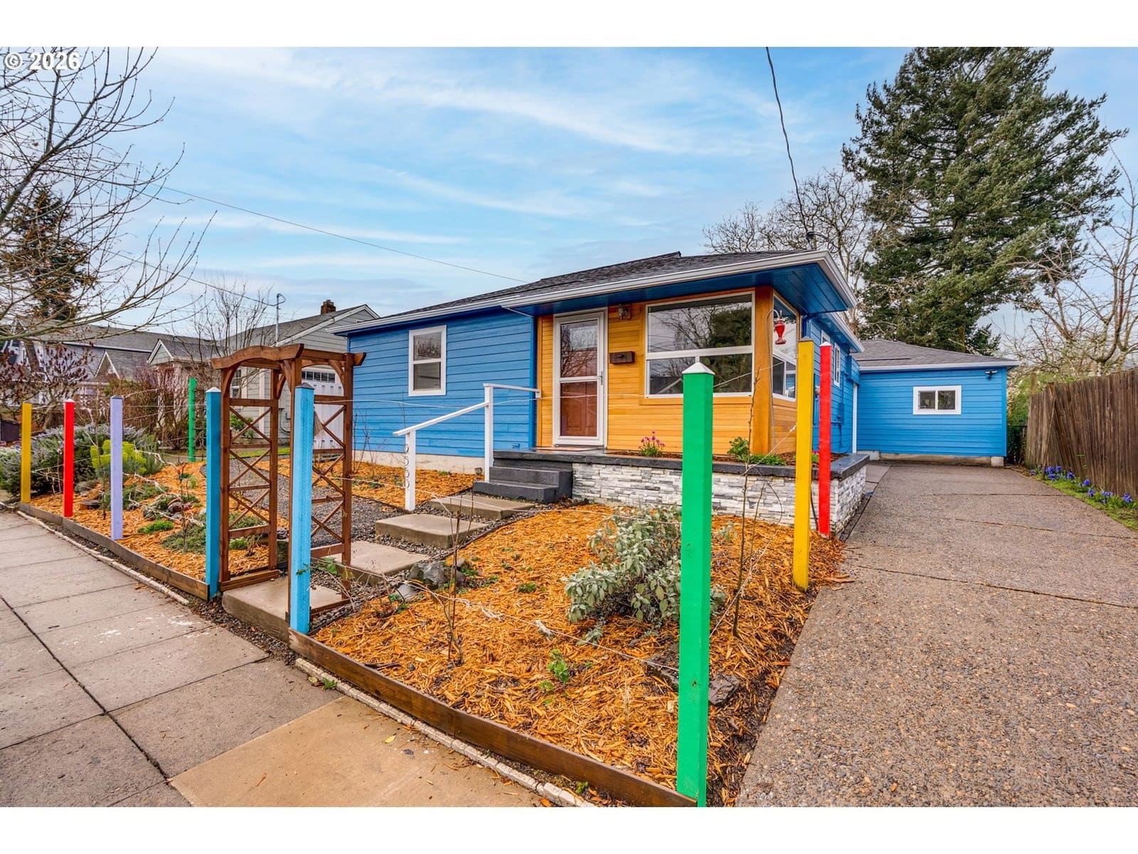 St. Johns green gem — thoughtfully updated, Permaculture-designed, and full of possibility. This well-maintained home sits on a quiet street, offering the sought-after balance of vibrant urban energy and quiet, grounded home life. Just blocks from the thriving St. Johns village — beloved shops, cafés, and community spirit — yet surrounded by gardens and nature. The flexible floor plan and oversized lot give you room to grow. The rear of the home is a standout: a spacious suite with a separate entrance that works beautifully as a primary bedroom, home office, yoga studio, or guest space — and with slight modification, it could become a full ADU. Rental income, multi-gen living, or a private retreat: the possibilities are real. The land itself is something special. Designed with Permaculture principles: espaliered fruit trees, native and edible plantings, permeable pathways, and inviting outdoor zones. A live-edge cedar slab dining nook anchors the main living space; a passively-lit outbuilding of reclaimed materials adds charm and function. Fully fenced backyard. FIVE parks within easy reach: Pier Park — pool, disc golf, skate park, trails, off-leash dog area. St. Johns Park and Community Center offer a wide range of Portland Parks and Recreation resources and activities. Baltimore Woods has a community-led vision for a nature corridor connecting Kelly Point all the way to Downtown PDX. Cathedral Park, under the iconic St. Johns Bridge, is one of the most photogenic places in the city, and hosts recreation and cultural events on the waterfront. And last but not least, Forest Park's 5,200 acres and 80+ miles of trail can be accessed just 1.3 miles from your front door. If sustainability, flexibility, and a thriving neighborhood are on your list — this is your home. Walk Score 77 · Bike Score 94 · Home Energy Score: 8 [Home Energy Score = 8. HES Report at https://rpt.greenbuildingregistry.com/hes/OR10202113]
