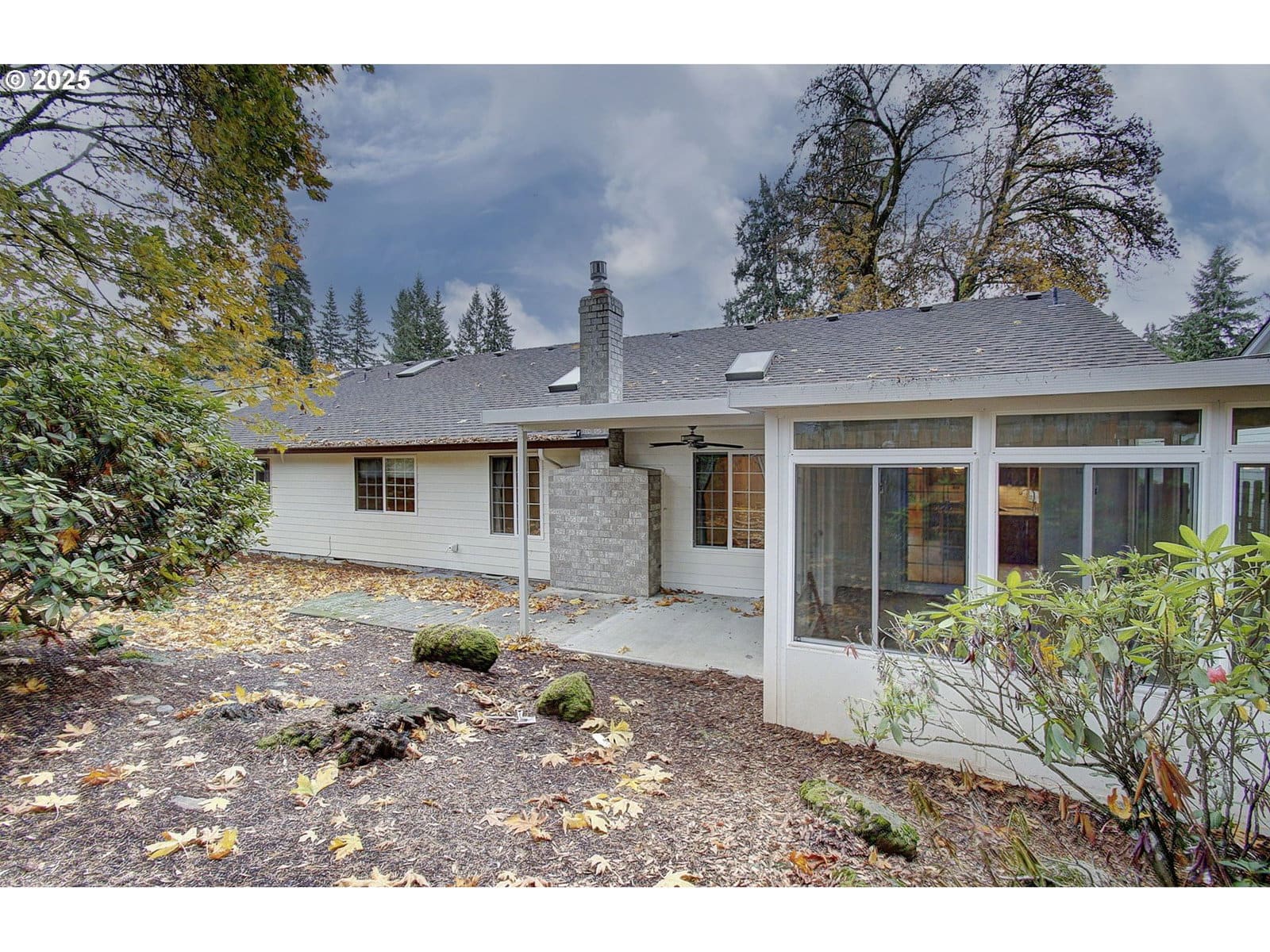 Welcome to this beautifully maintained 3 bedroom, 2 bath single-level home offering comfort, style, and functionality throughout. Featuring a spacious three-car garage and a permitted sunroom, this home has room for everything you need. Inside, enjoy a large living room with a stunning gas stone fireplace, a separate family room for added living space, and a formal dining area perfect for gatherings. The open kitchen is complete with a gas range, stainless steel appliances, granite countertops, and tile floors that flow into an eating nook. The primary suite includes an ensuite bathroom with a walk-in shower, double sinks, and a generous walk-in closet. A dedicated utility room with built-in cabinets provides extra convenience. Outside, the large front yard offers great curb appeal, while the low-maintenance backyard features a covered patio with a ceiling fan—ideal for relaxing or entertaining year-round. This home truly combines thoughtful design and quality living in one perfect package.
