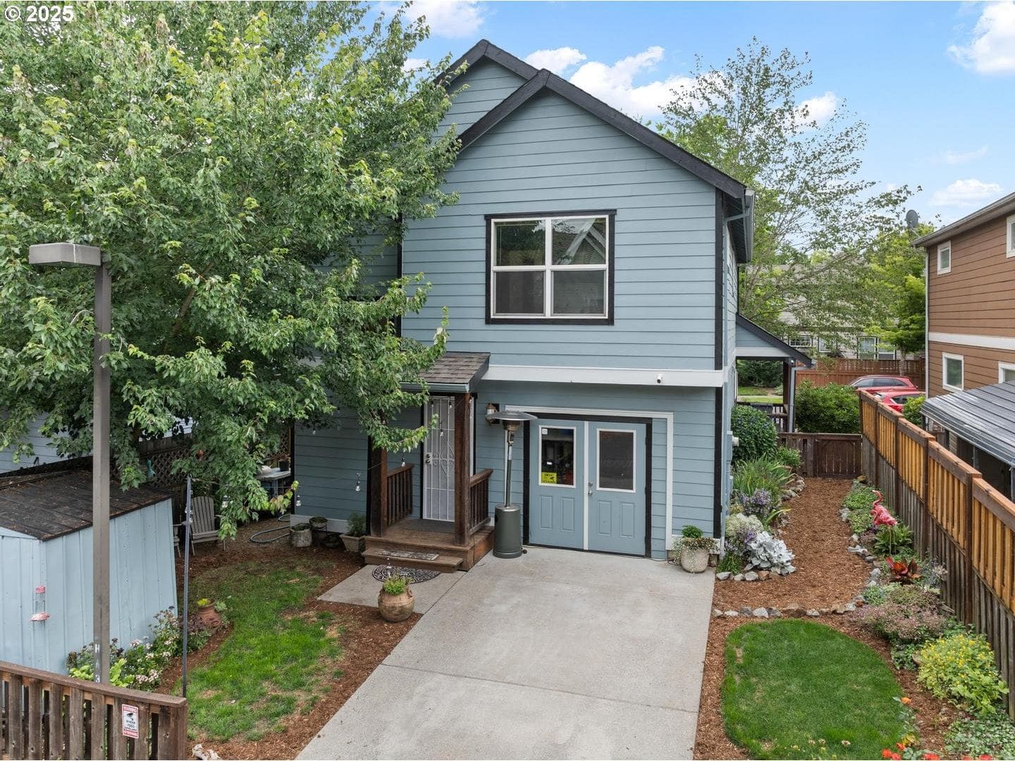 Move-in ready with great layout in Portsmouth’s New Columbia. Updated kitchen with slab granite counters, tile backsplash, pantry and stainless steel appliances. New (October 2024) carpet in spacious living and dining rooms. Updated bathrooms, including tile counters, light fixtures, and dual porcelain vessel sinks and modern tile-like vinyl floor in full bath. Three bedrooms upstairs, including roomy primary bedroom, plus loft big enough for a desk, perfect for working from home. Covered, wrap-around front and side porch welcomes your friends and family. Backyard features updated landscaping and tool shed. One block to McCoy Park plus many smaller parks nearby within New Columbia. Front yard maintained by association. [Home Energy Score = 5. HES Report at https://rpt.greenbuildingregistry.com/hes/OR10153996]