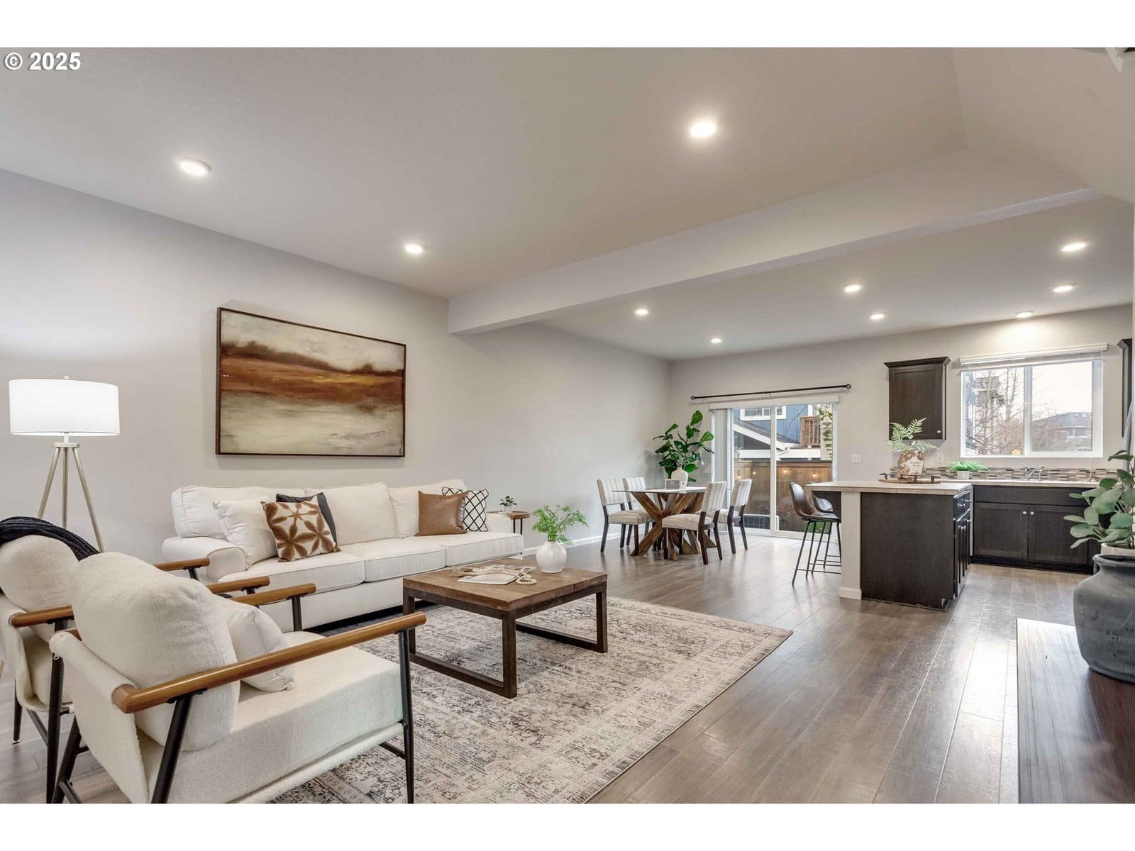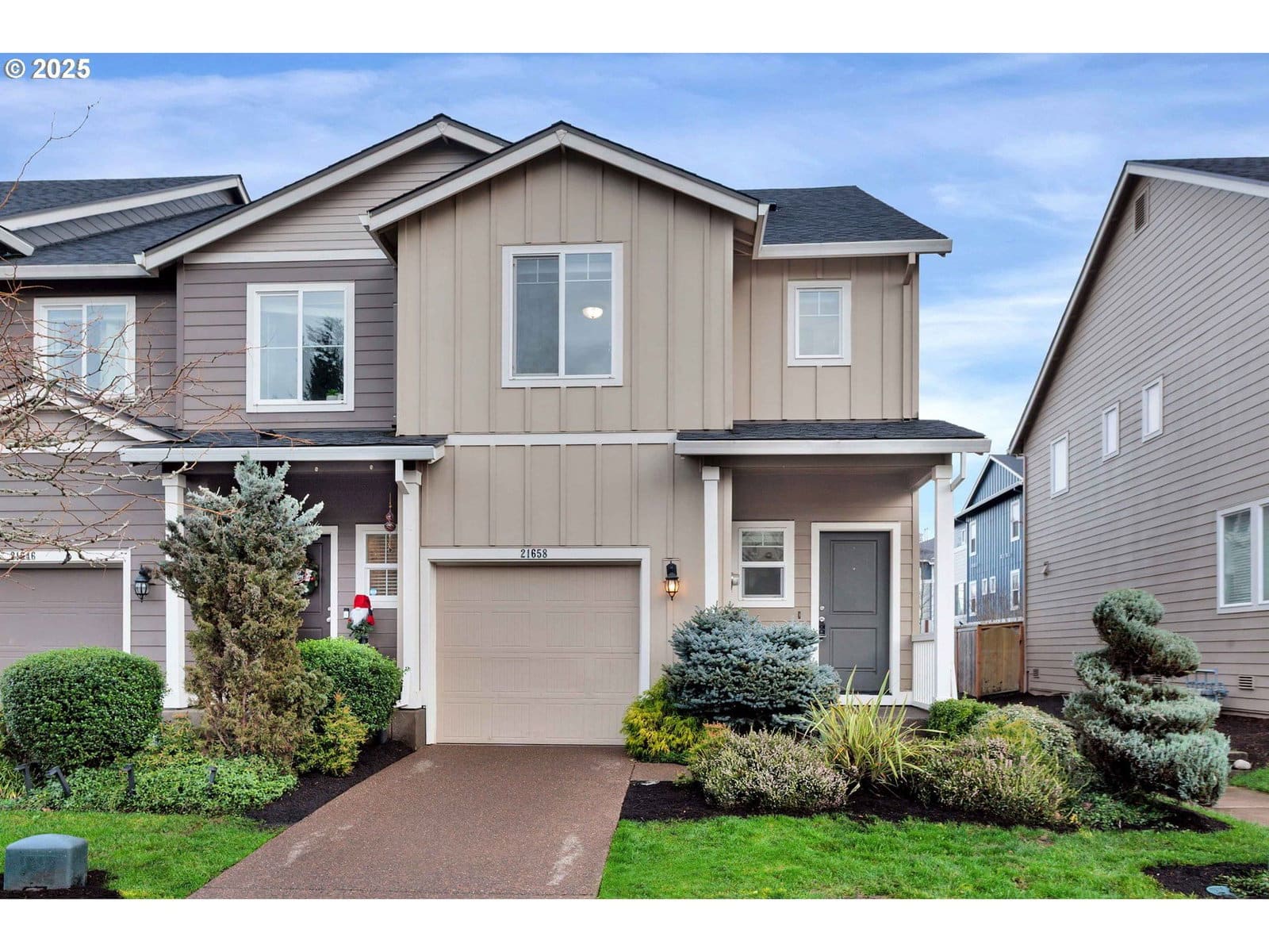 Light-filled end-unit townhome offering an open floor plan and laminate flooring throughout the main and upper levels for a clean, modern look and easy maintenance. The spacious kitchen is designed for both everyday living and entertaining, featuring stainless steel appliances, a gas range, ample cabinet space, and a pantry. All appliances are included, along with a washer and dryer conveniently located on the second floor.The upper level also features a versatile loft space, ideal for a home office, study area, or flex living space. Comfortable carpeted bedrooms provide a cozy retreat, while large windows throughout the home fill the space with natural light. Step outside to a private fenced patio with a gate, perfect for relaxing, pets, or outdoor dining. The single-car garage includes additional storage space for added functionality.Enjoy a convenient location near parks, trails, a dog park, playground, schools, and shopping. This well-maintained end unit offers low-maintenance living and strong appeal for both first-time buyers and investors.
