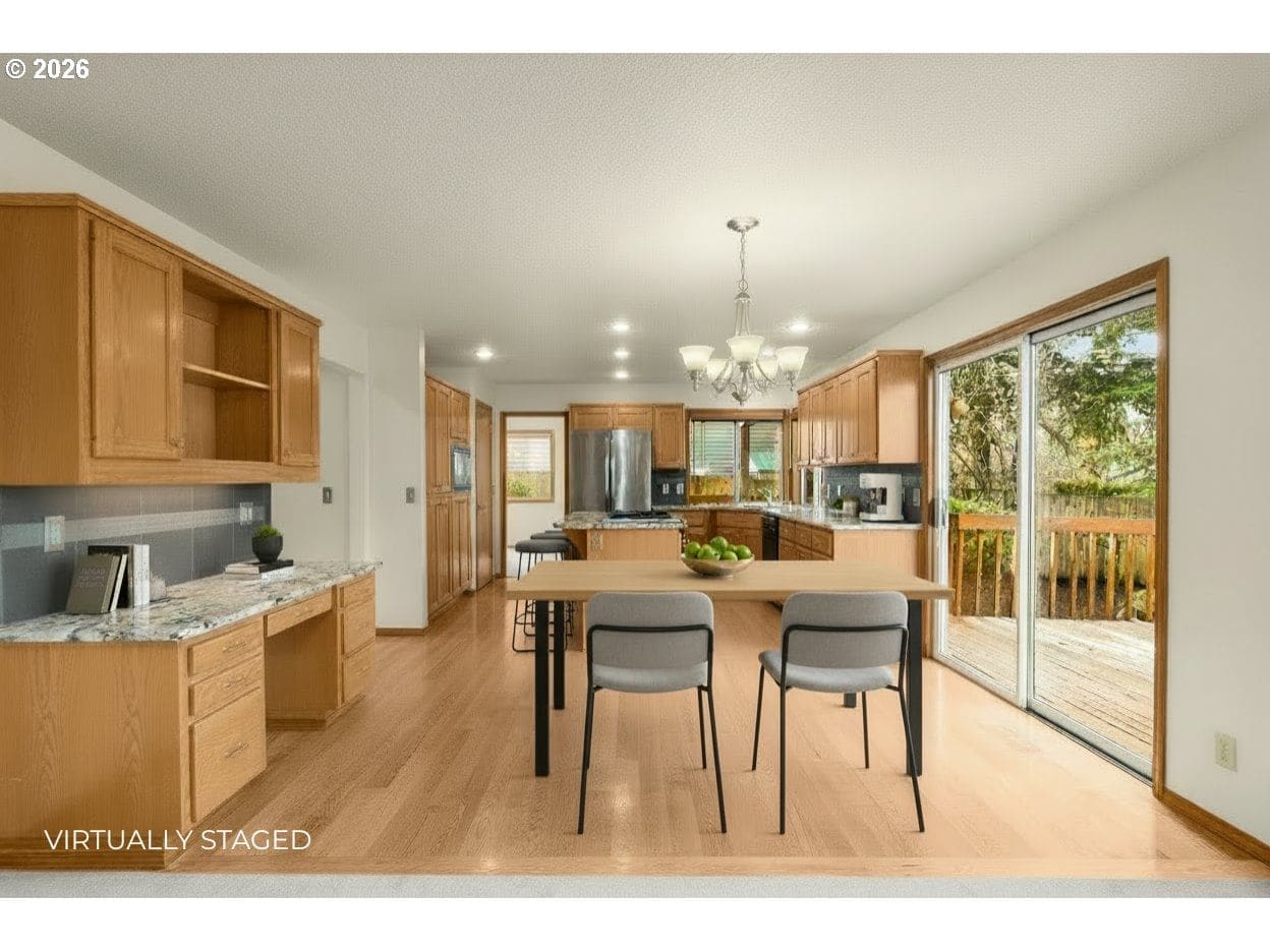 Coveted Allenbach Acres location! This beautifully laid-out home offers an open floor plan designed for both everyday living and entertaining. The island kitchen features slab granite countertops, tile backsplash, pantry, eating bar, gas range, stainless steel refrigerator, built-in microwave, and a spacious eating area. Adjacent family room includes a classic brick fireplace with custom built-ins.A two-story entry welcomes you into the home, opening to a vaulted living room with a bay window that fills the space with natural light. Formal dining room provides direct access to the covered deck—perfect for indoor-outdoor entertaining. The kitchen eating area also features a slider to the deck, overlooking a large, flat, fully fenced backyard with hardscaping, garden boxes, and plenty of grassy space.The spacious primary suite features dual vanities with granite countertops, tile walk-in shower, and a walk-in closet. Oversized bedrooms throughout. Additional highlights include a huge bonus room with skylights, a versatile loft, and a main-level bedroom.Recent updates include new carpet and fresh interior paint, complementing the hardwood floors that extend from the entry through the kitchen. A utility room with sink adds everyday convenience, and the three-car garage offers ample storage.Fantastic location close to schools, parks, restaurants, and shopping complete this must-see home.