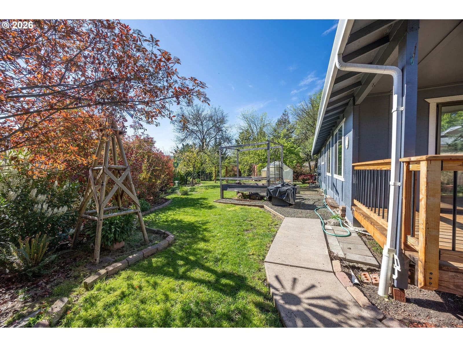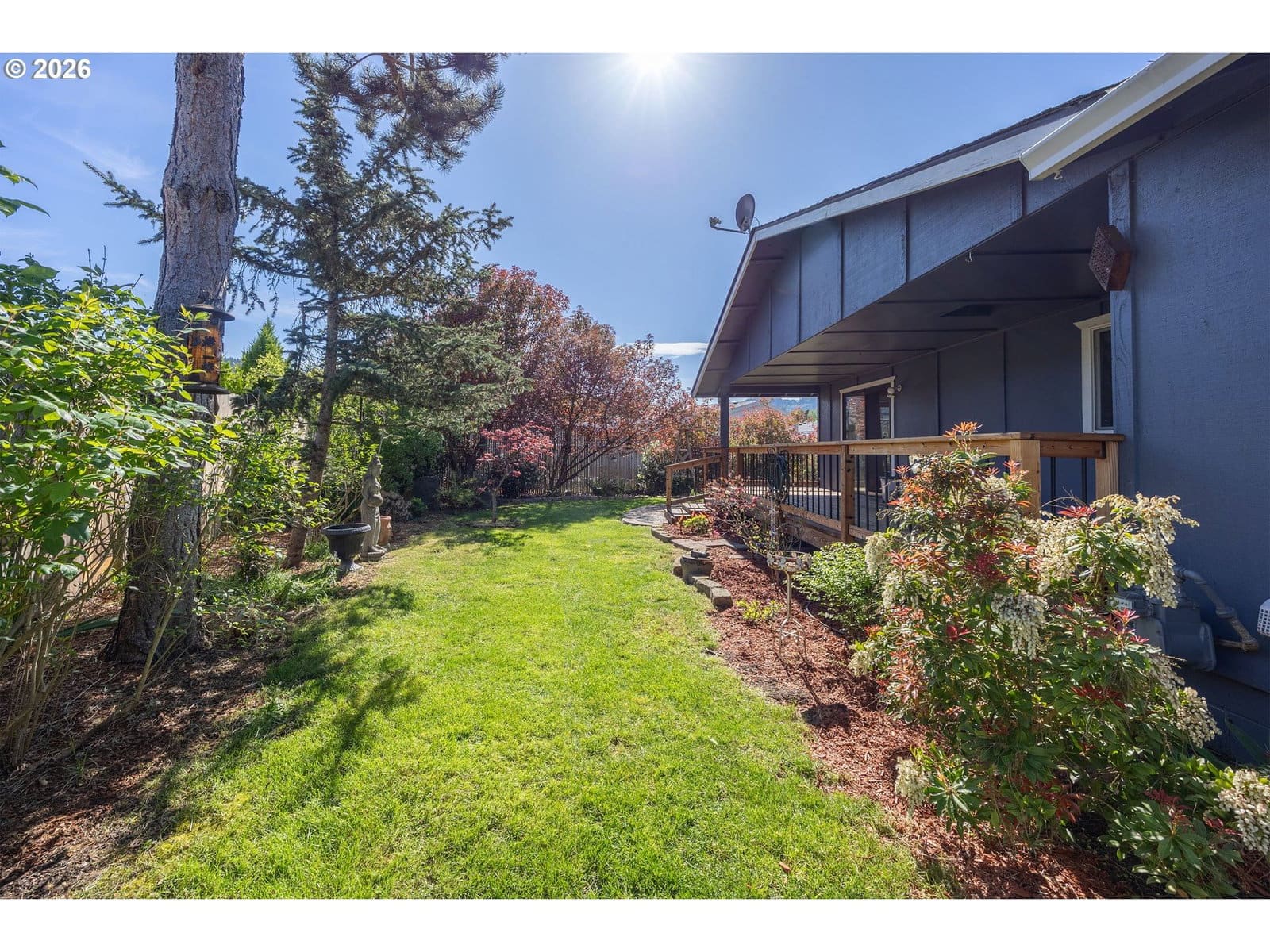 Tucked away in a quiet cul-de-sac on Roseburg’s desirable west side, this beautifully maintained 3-bedroom, 2-bath home offers a peaceful, park-like setting and a lifestyle that’s hard to find. Surrounded by mature landscaping, fruit trees—including peach, nectarine, multiple plum varieties, pear, cherry, and both Gravenstein and Gala apples—along with raised garden beds, a greenhouse, and a dedicated garden shed, this property is truly a gardener’s paradise. Adding to the appeal, the home features a fully paid-off solar system installed less than four years ago, providing outstanding energy efficiency and long-term savings. The current owner reports extremely low utility costs, with most months limited to only the basic connection fee. Inside, pride of ownership is evident throughout with fresh interior paint and updated flooring. The inviting living room features a cozy gas fireplace, perfect for relaxing evenings at home. The primary suite offers a recently remodeled bathroom complete with a jetted tub, creating a comfortable and private retreat. Kitchen appliances are included for added convenience. Step outside to a large covered deck to unwind, entertain, and enjoy the natural beauty that surrounds you. Combining comfort, sustainability, and a truly special outdoor environment, this westside home offers a rare opportunity to enjoy both modern efficiency and a peaceful, garden-inspired lifestyle. Call today for your private tour.