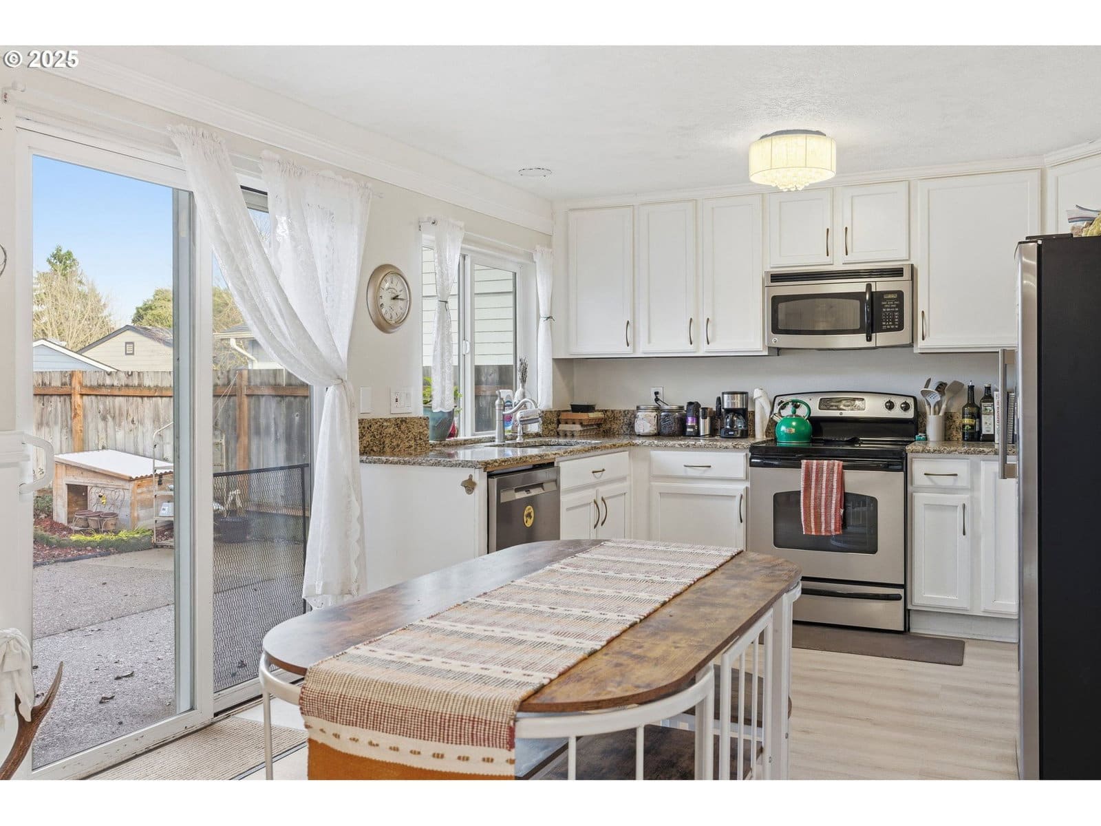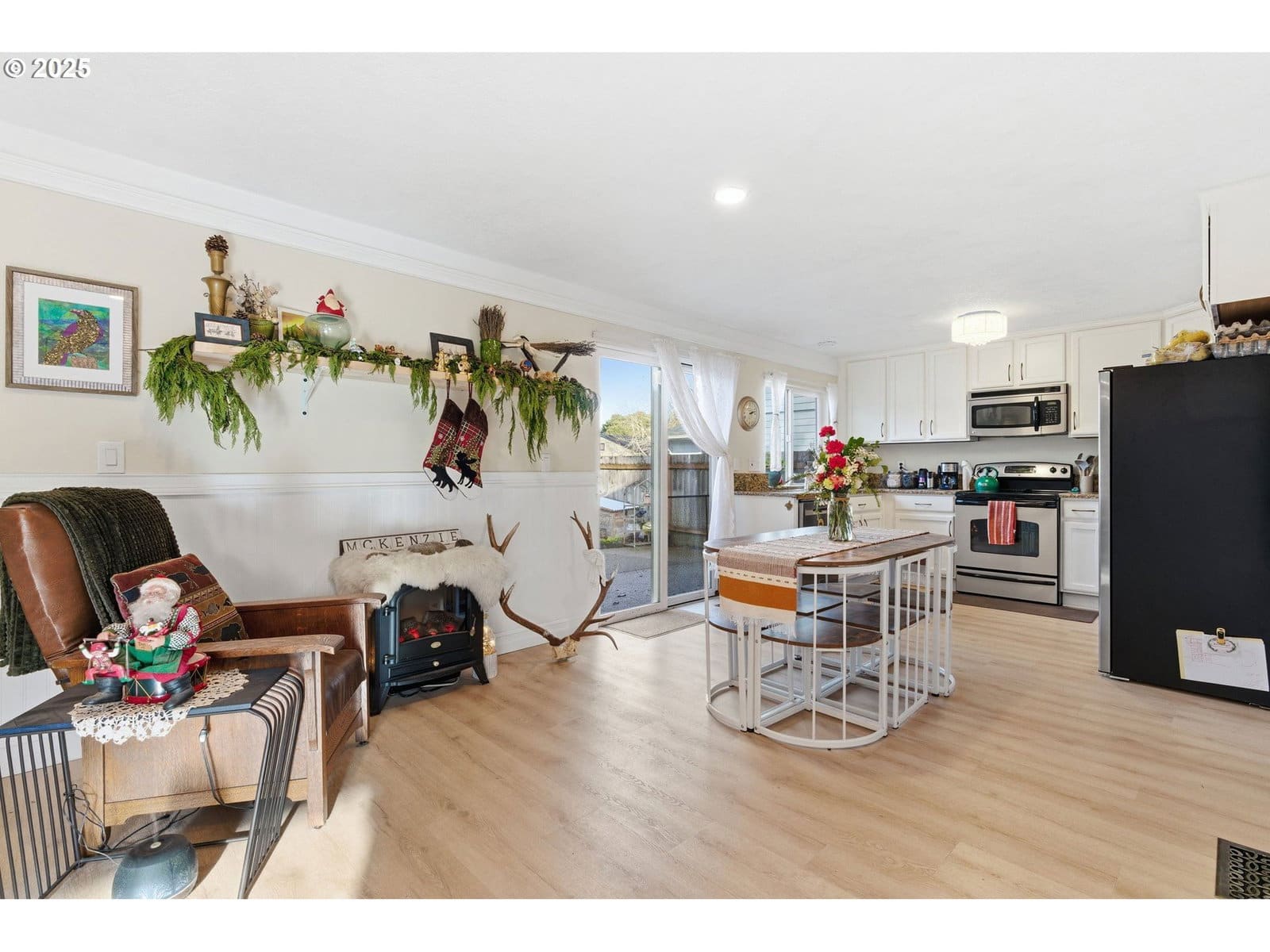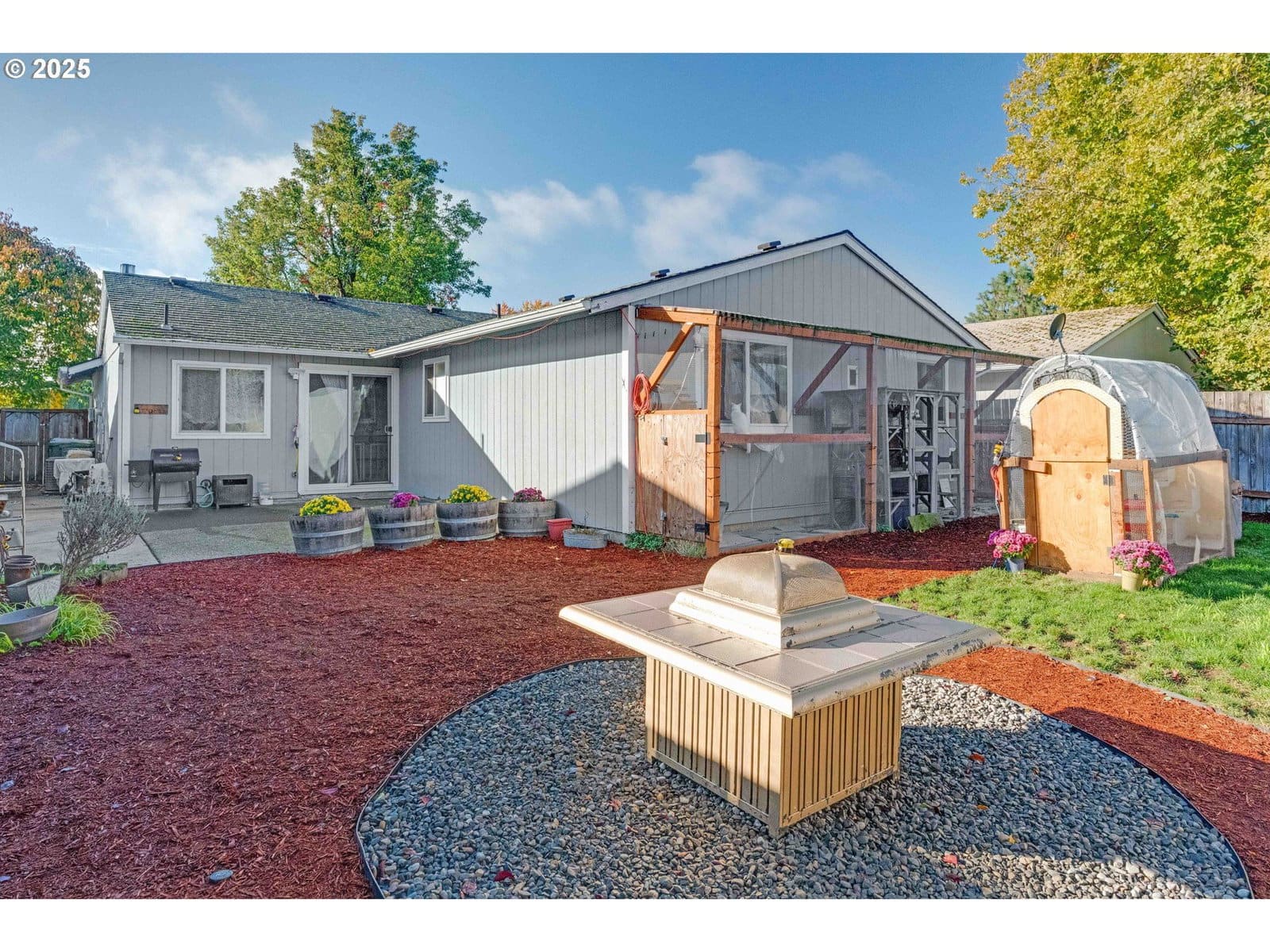 FREE 1 year Home Warranty + Freshly Painted! Welcome to this beautifully maintained single-level home in the heart of Newberg! Step inside to an inviting living room just off the entryway that flows into an open-concept kitchen and dining area featuring stainless steel appliances and elegant chair rail molding accents. The dining area opens through a sliding glass door to a lovely backyard patio, perfect for relaxing or entertaining. Enjoy the nicely landscaped, fully fenced yard complete with a dog run, chicken coop and a catio — a rare find for animal lovers! Down the hall, you’ll find a full bathroom and comfortable bedrooms, including a primary suite with an ensuite bath featuring a walk-in shower. With an attached two-car garage and great curb appeal, this move-in-ready home radiates pride of ownership and Newberg charm.