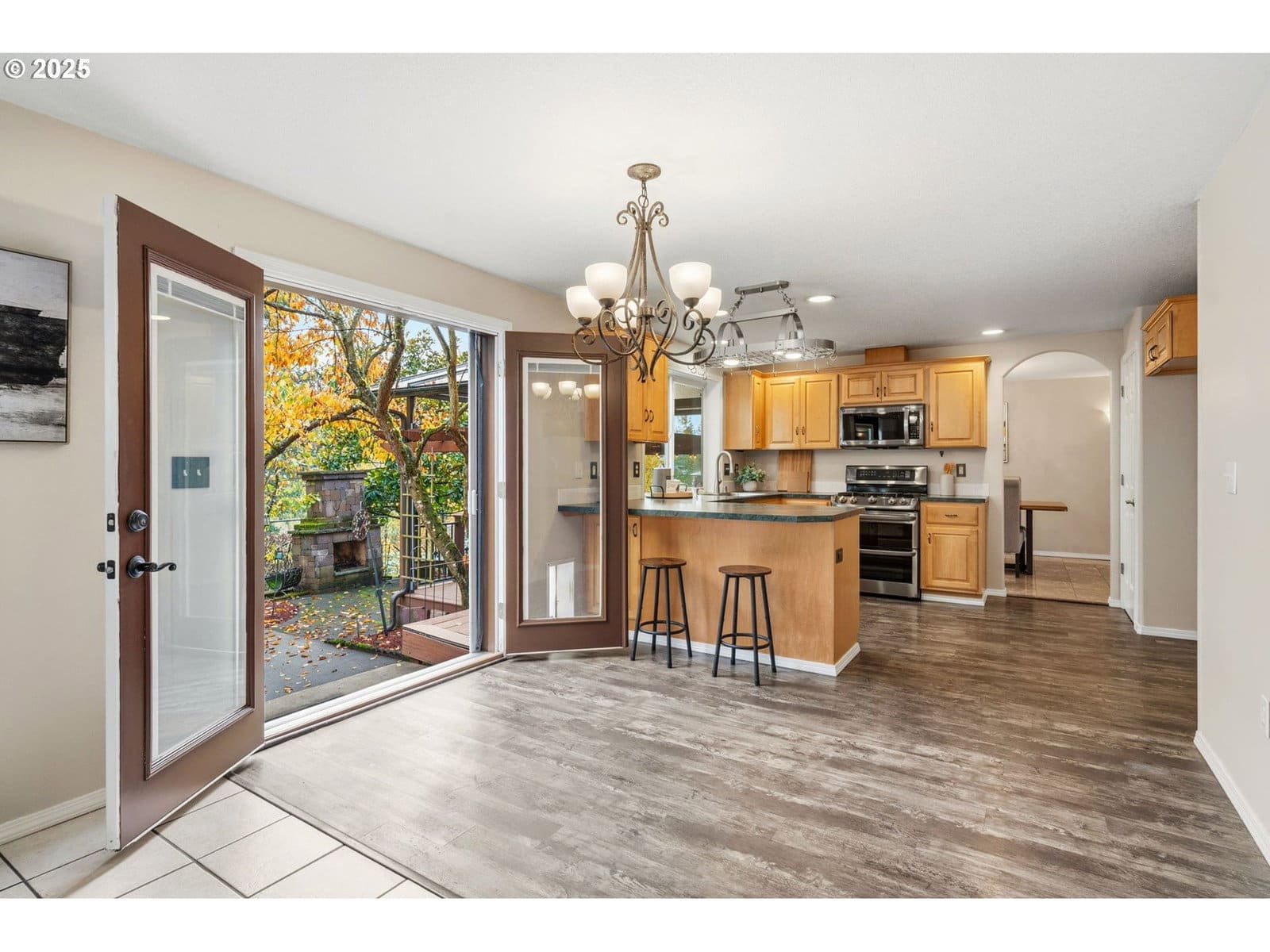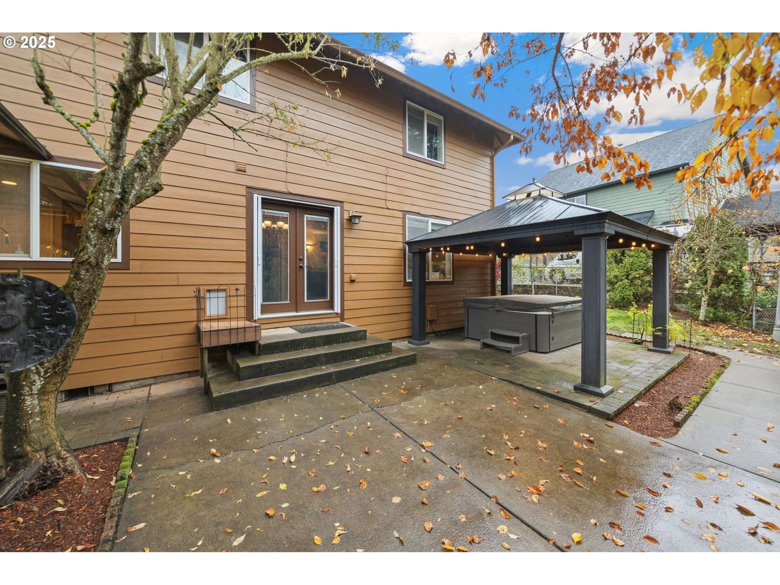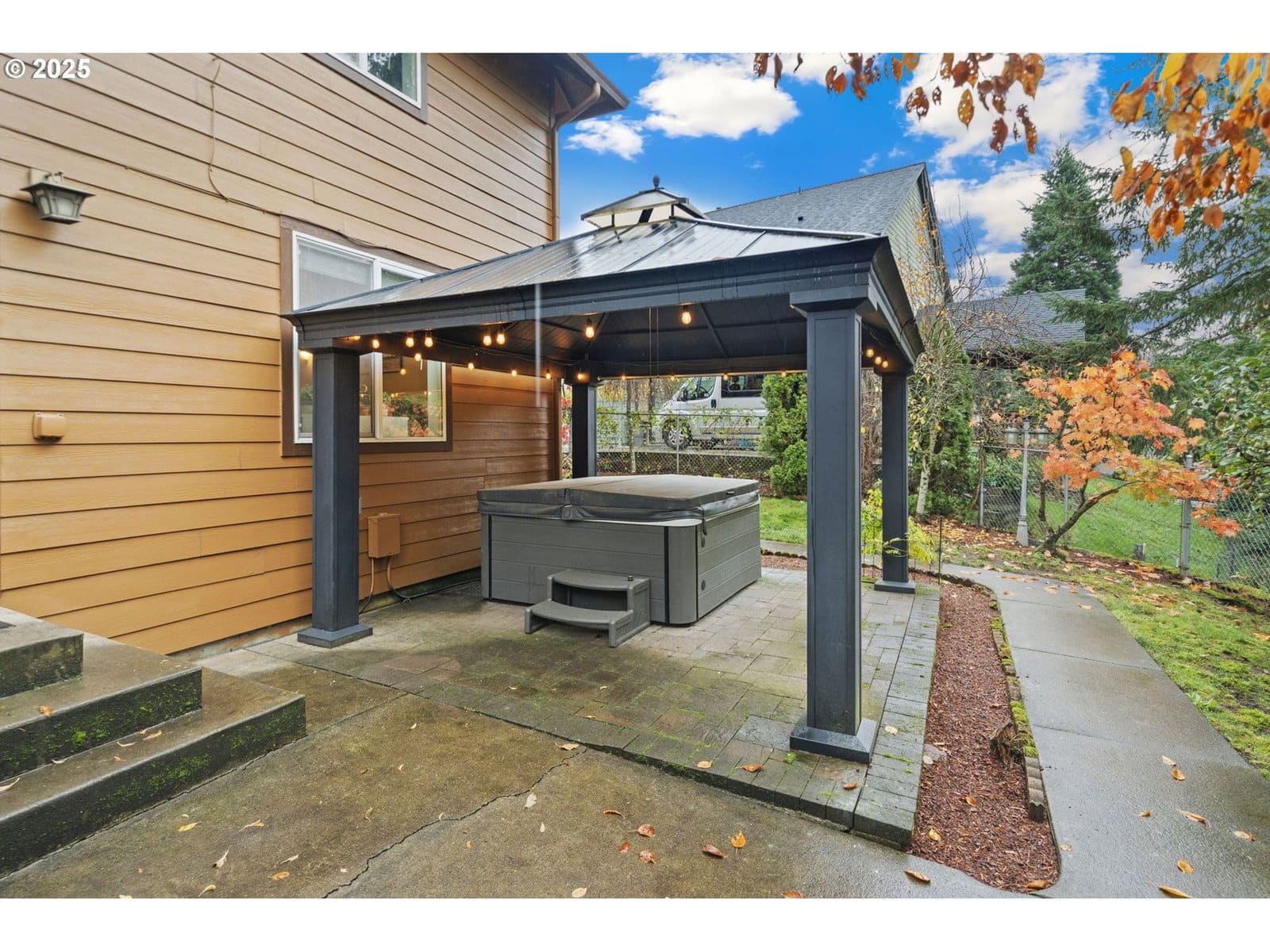 Updated Craftsman home backed to natural greenbelt with NO HOA, RV parking, hardwood and tile floors downstairs and new carpet with Lux pad upstairs, new fresh interior paint throughout, and a brand-new roof with transferable warranty. The kitchen features a five-burner gas range, built-in microwave, and an eat-in bar overlooking the tranquil, private greenery—a level of privacy few homes offer at this price point. The main level includes a gas fireplace, formal dining, a kitchen nook with double-door slider to the covered outdoor living area, and a second living room with a granite-tiled wet bar. The backyard offers year-round enjoyment with a covered gazebo, stacked-stone wood-burning fireplace, and covered hot tub newly serviced and ready for entertaining! Upstairs are four bedrooms, including a spacious primary suite with a large organized walk-in closet and oversized soaking tub, plus a large bonus room/fourth bedroom ideal for separate living or flexible use. Additional highlights include serviced HVAC, extra-wide streets and sidewalks, downstairs laundry, and a 3-car garage. Nestled between parks and even more green space and walking trails, with two living rooms, two fireplaces, updated systems, and greenbelt views—and no rent-back needed—this home is move-in ready! Great location between historic downtown and the new restaurants, pubs and groceries.