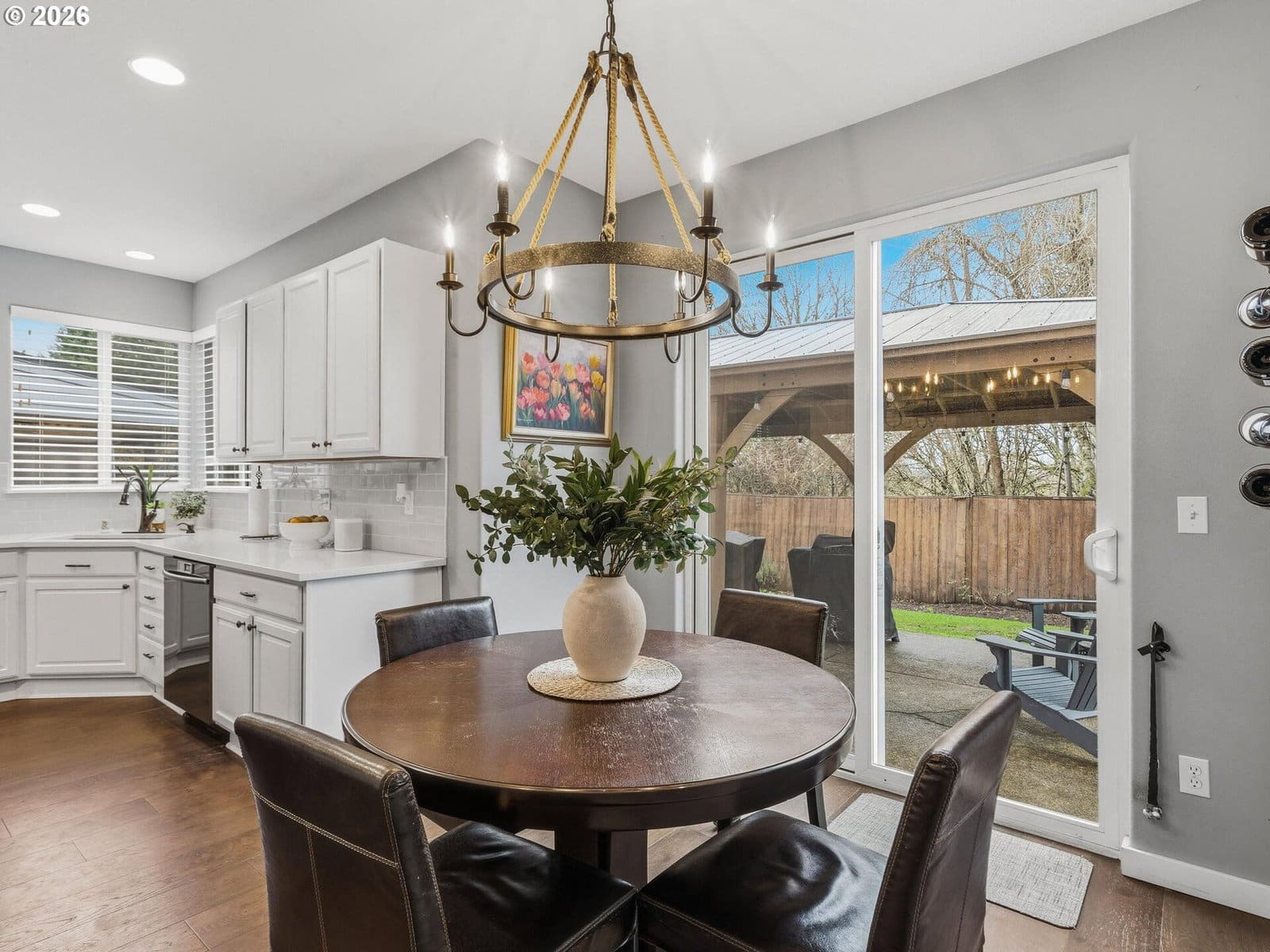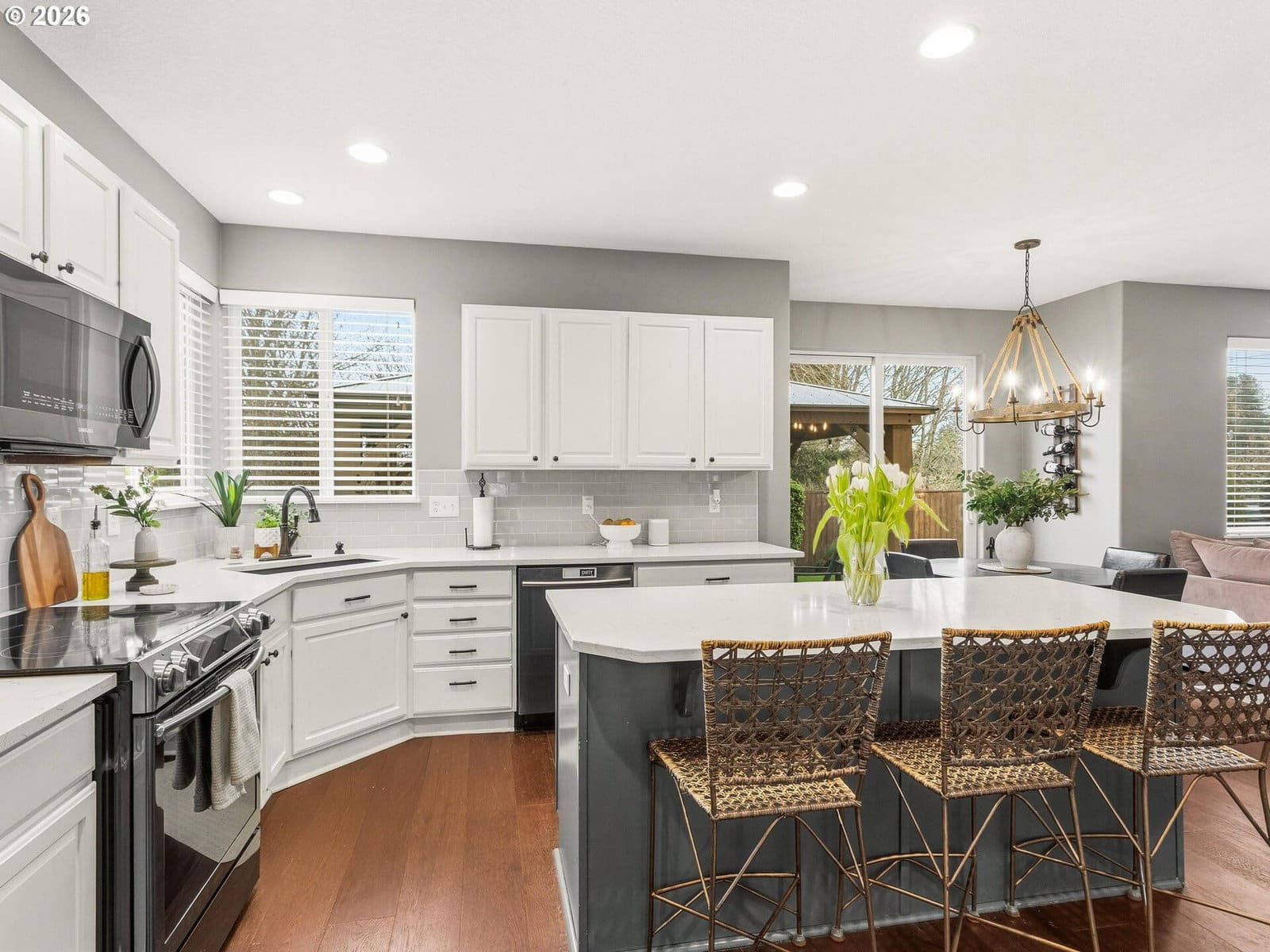 Interior Designer Remodeled Craftsman, Backing Peaceful Green Space, in Desirable Heron Ridge Estates! Feel like you are entering the pages of an interior design magazine, as you step into the grand entry, featuring the luxury engineered hardwood flooring & high ceilings of the family room with floor to ceiling stone fireplace with hand crafted wood mantle, and large windows, streaming natural light. Remodeled in 2016, with designs from a professional interior designer, this home boasts hand scraped engineered hardwood throughout the first level, custom designer paint colors, wood paneled ceiling in dining room, and luxury grade carpet. A chef and entertainers dream of a kitchen, complete with solid surface quartz countertops, pantry, abundant cabinet and counter space, large eat-in kitchen island, stainless steel appliances, electric range, and undermount farm sink, with windows overlooking the meticulously manicured backyard. Dining nook with sliders, leading to covered pergola patio. Full bath on the main with quartz countertops, tub, and shower, and full bedroom, perfect for dual living, guests, or a bonus room. Living room with engineered hardwood floors, ceiling fan, and large windows framing the back yard and secluded green space. Rought iron staircase, with upgraded carpet, newly stretched and professionally cleaned, leads to oversized halls with a walk in storage closet, and separate large linen closet for optimal storage. Sanctuary primary suite features views of the green space, oversized walk-in closet, and ensuite full bathroom, complete with large soaking tub, separate shower, and double sinks. Three additional bedrooms and utility room upstairs. Extra wide hallways overlook the grandeur of the large stone fireplace and soaring ceilings. Back yard with covered pergola patio, storage shed, immaculately landscaped grounds, and hot tub. New roof, exterior paint, and meticulous upkeep make this a completely move in ready stunner! Open Sat, 2/14, 11-1.