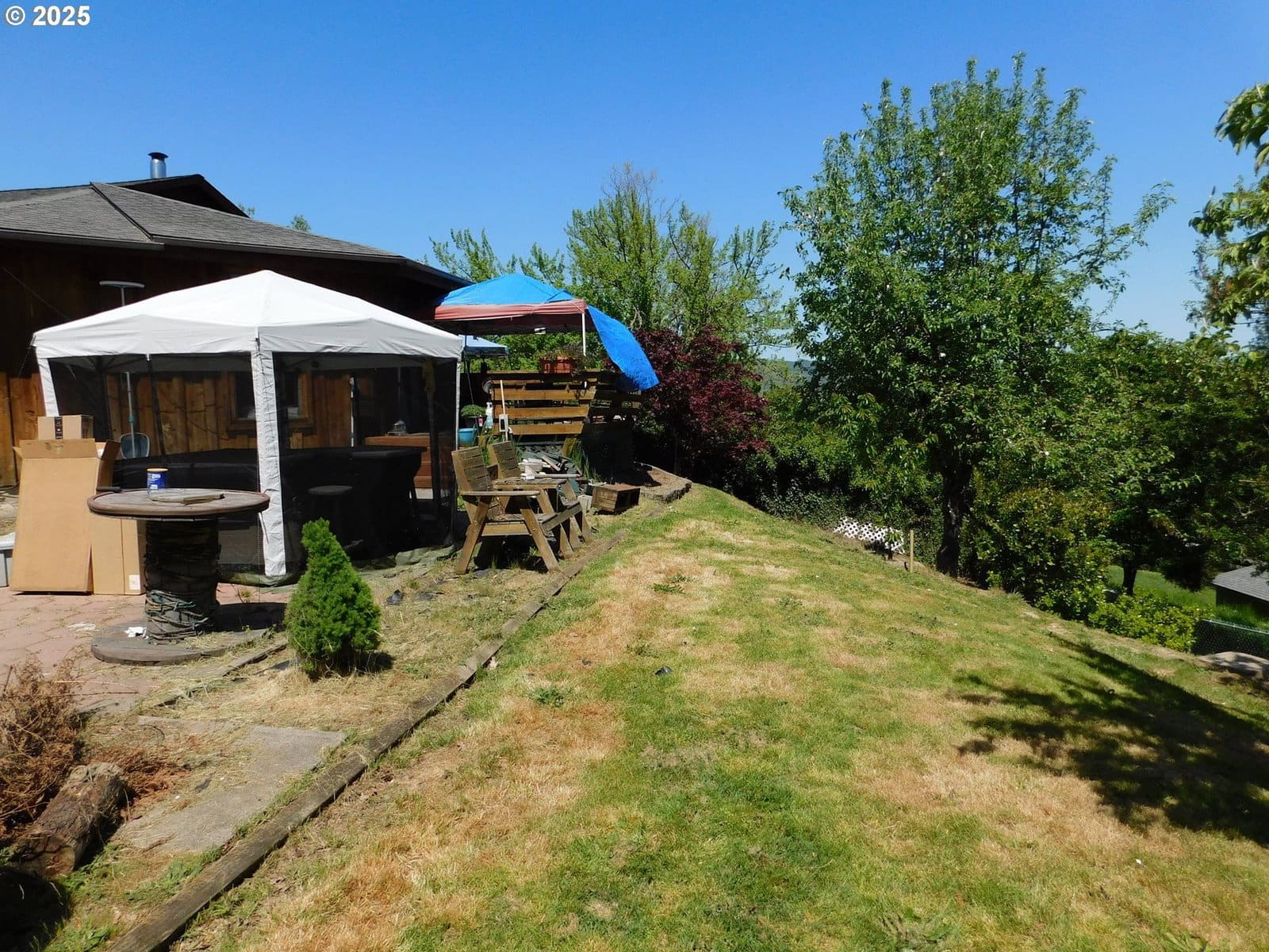 Great location with a custom built one level home located on .39 of an acre at the end of the road in Winston with City Services! Home built in 1981 with approximately 1,374 square feet, 3 bedrooms and 2 full bathrooms, primary bedroom and bathroom has a walk-in closet and slider door to deck, nice Kitchen with oodles of oak cabinets, lots of counter space, plus a pantry, Living room has beautiful vaulted wood ceilings, nice sized bedrooms, convenient laundry closet in hallway, Double attached garage, tool shed with electricity in it, property has room to park an RV, deck, brick patio with a hot tub and a firepit, fruit trees, Palm Tree, etc. A must see to appreciate.