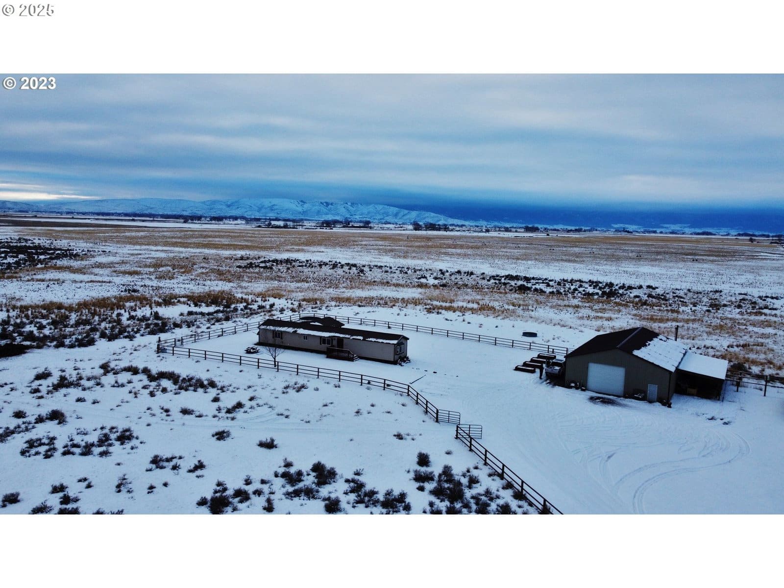 Situated on roughly forty acres, this property offers a balance of space, function and convenience, with the added benefit of being only a short distance from town. A well-appointed 30x40 shop serves as a versatile hub, featuring a complete one-bedroom, one-bath living quarters with a full kitchen and laundry, along with covered exterior parking and an area designed for animal shelter or handling. The main residence is a three-bed, two-bath manufactured home with updated flooring and paint completed prior to the current tenancy, and a covered back patio that extends the living space outdoors. The acreage is fully fenced and cross-fenced, capturing wide-open, unobstructed views of both the Elkhorn and Eagle Cap mountains, making the setting as functional as it is scenic. Priced with renovation in mind or replacing the current home with your dream home.