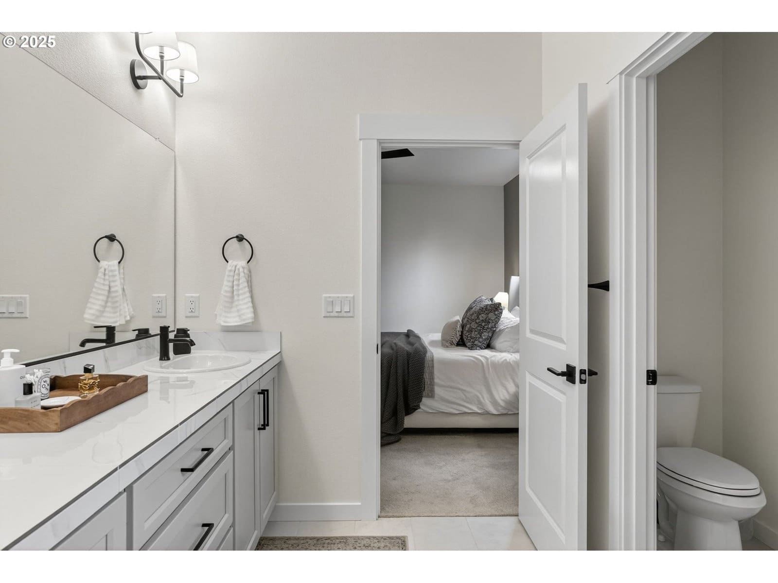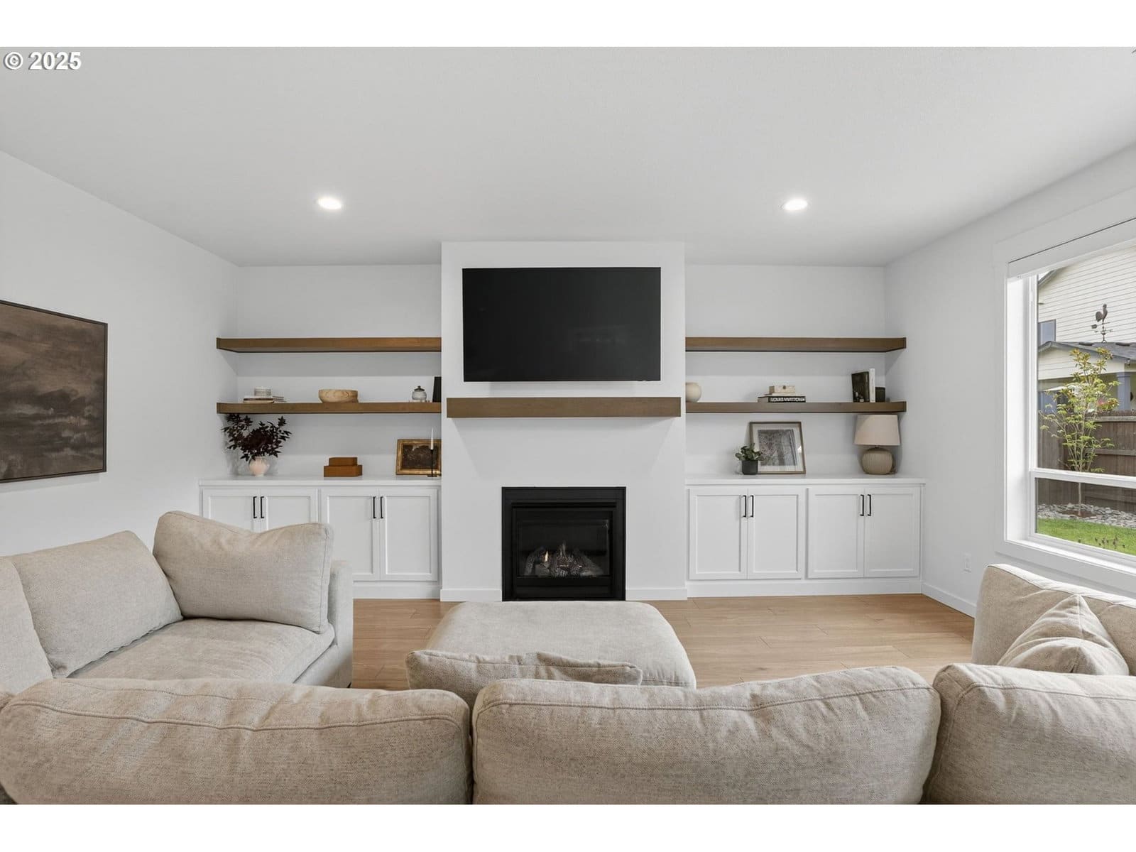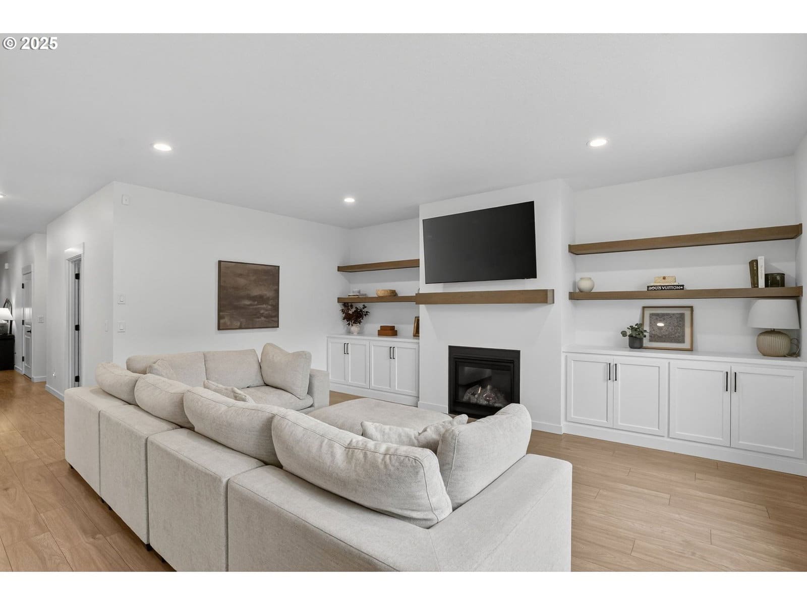 Multiple offers received. This house is pure perfection! Don't miss it! The pictures are great but it's even better in person! Custom built by award-winning Generations NW, it's a one level beauty loaded with upgrades. All you have to do is unpack and enjoy! The heart of the home is the great room, and this one delivers: the kitchen has a huge island with eating bar, quartz counters, stainless steel appliances, pantry big enough to stock up, plus pendant and under-cabinet lighting. The living room is modern, with a custom plaster fireplace, built-in cabinets, and floating shelves that look straight out of a designer magazine. Wide-plank floors flow, tying it all together with style. The primary suite is set apart from the other bedrooms for privacy, and comes with a motorized blackout shade for ultimate comfort and convenience. Step outside to your oversized covered patio and private backyard oasis, designed for maximum peace and quiet. Added Bonus: miles of walking trails just outside your door!