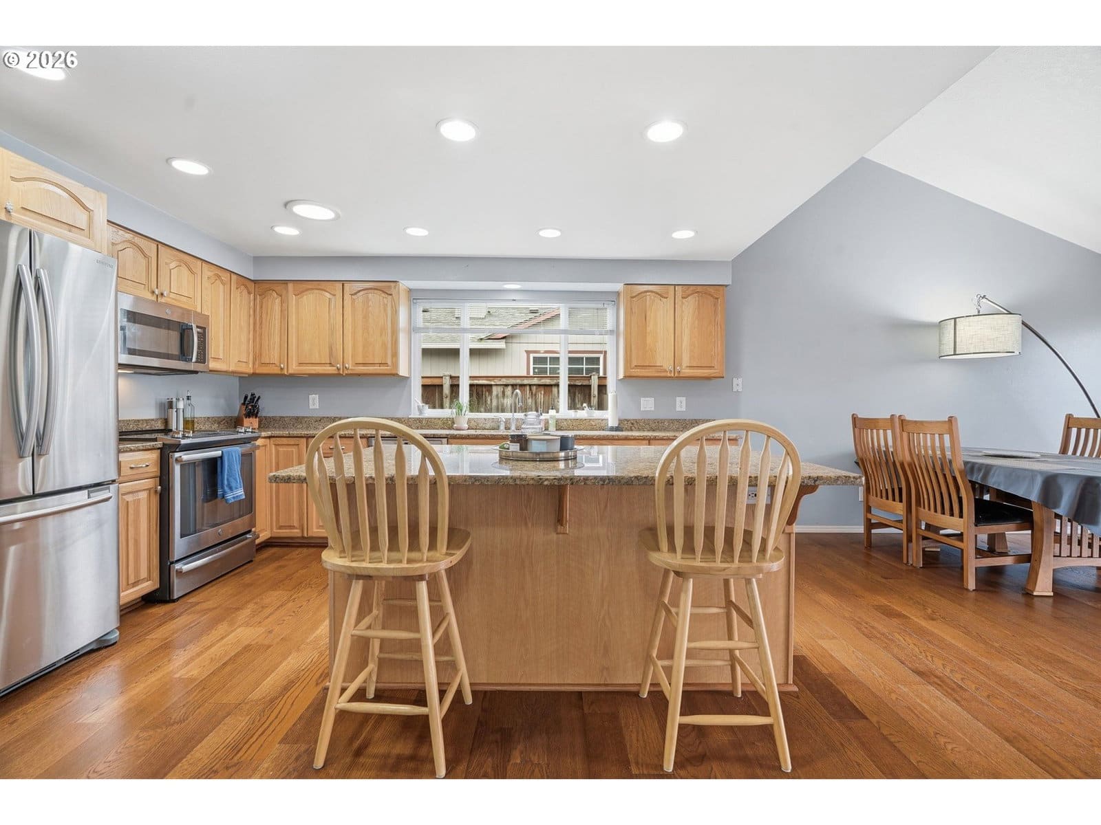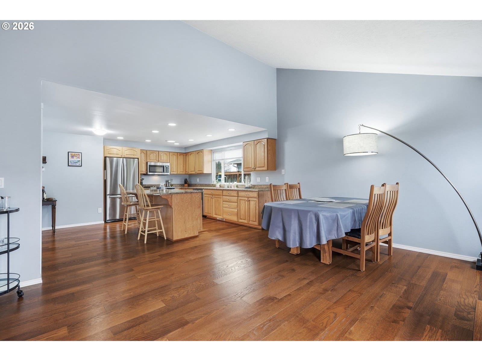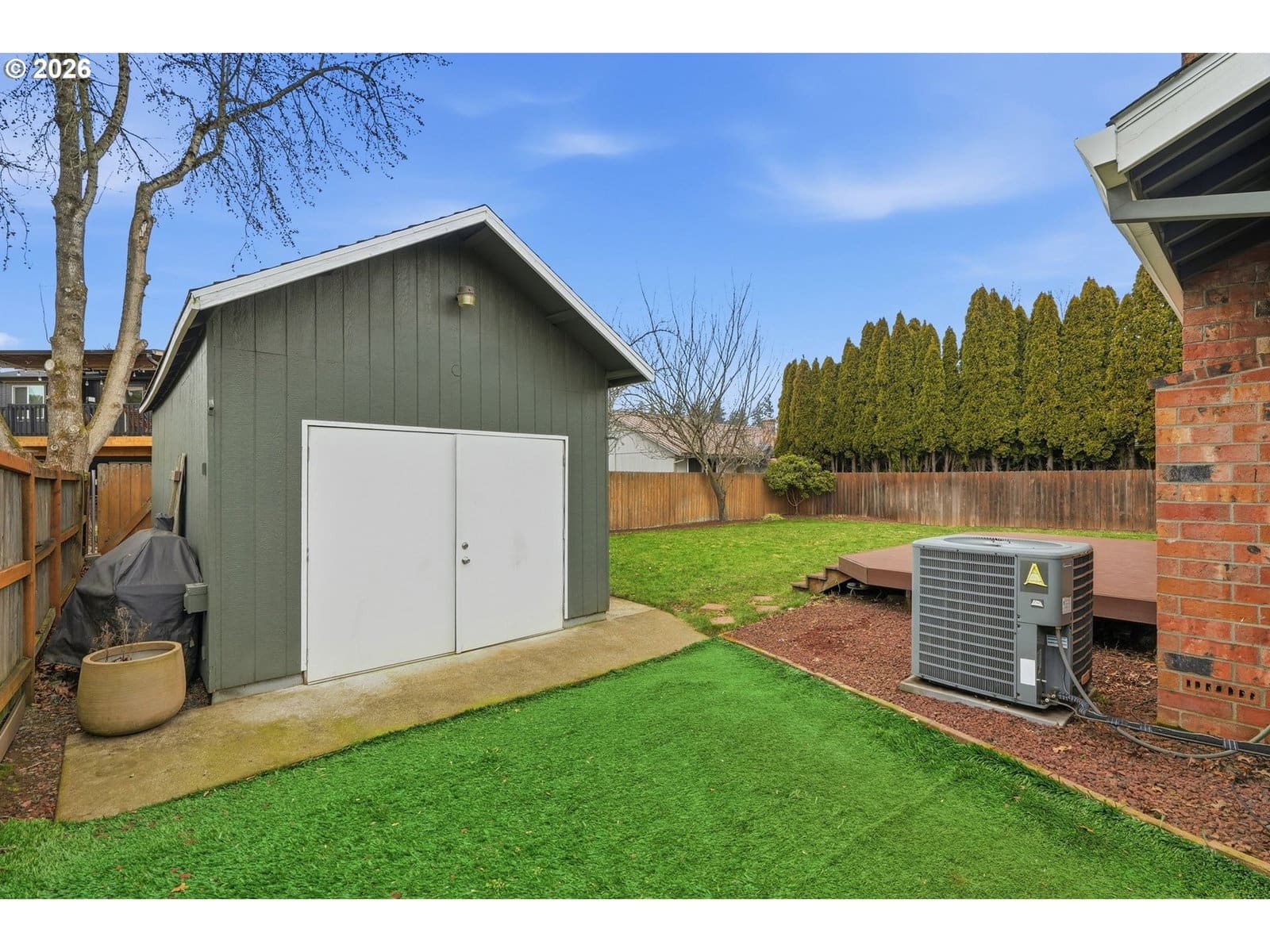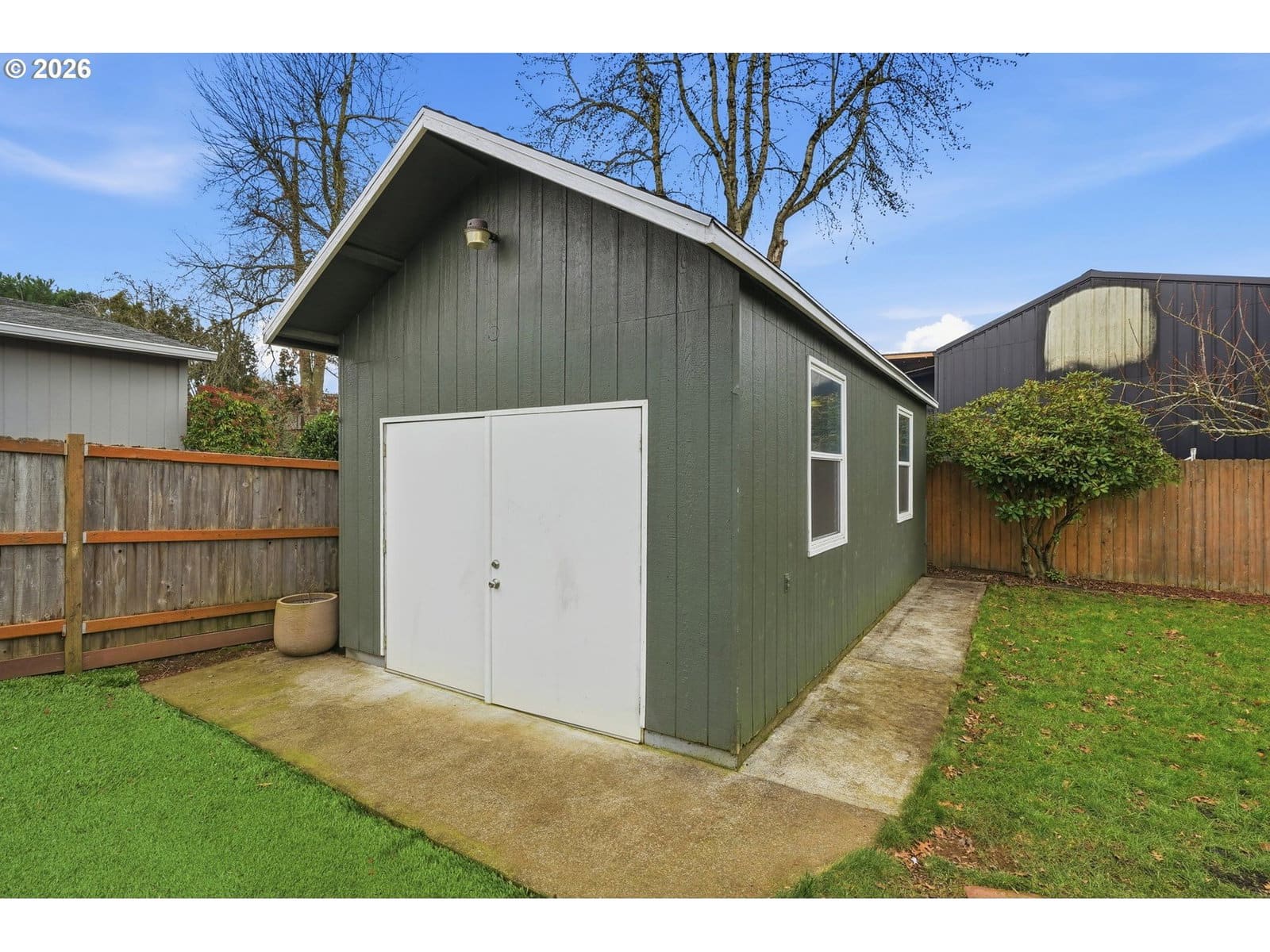 Inviting and meticulously-maintained, this desirable one-level home offers comfortable living with thoughtful updates and outstanding flexibility. A rare detached shop with electricity provides a true flex space—ideal for a home office, creative studio, workout room, workshop, or additional storage. Inside, the spacious kitchen features high ceilings, granite countertops, stainless steel appliances, hardwood floors, and abundant cabinetry, creating a bright and open space with excellent storage. A sunken living room adds to the home's charm, while the dining area is centered around a cozy fireplace and opens directly to the 12’ x 18’ Trex deck, allowing for seamless indoor-outdoor living.Enjoy spacious bedrooms, including a primary suite with its own ensuite bathroom, offering privacy. The completely flat, fully fenced, and highly usable backyard is perfect for entertaining, play, or relaxing, with the deck overlooking the well-manicured yard. RV parking with hookups, a two-car garage, and generous additional parking provide space for multiple vehicles and guests. Ideally located with easy access to Hwy 99E, schools, parks, shopping, and dining, this home combines one-level living, versatile flex space, and exceptional functionality in a sought-after Canby location. Come see it for yourself!